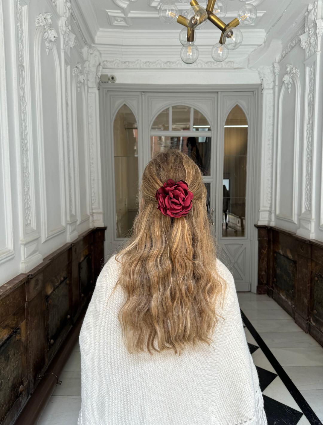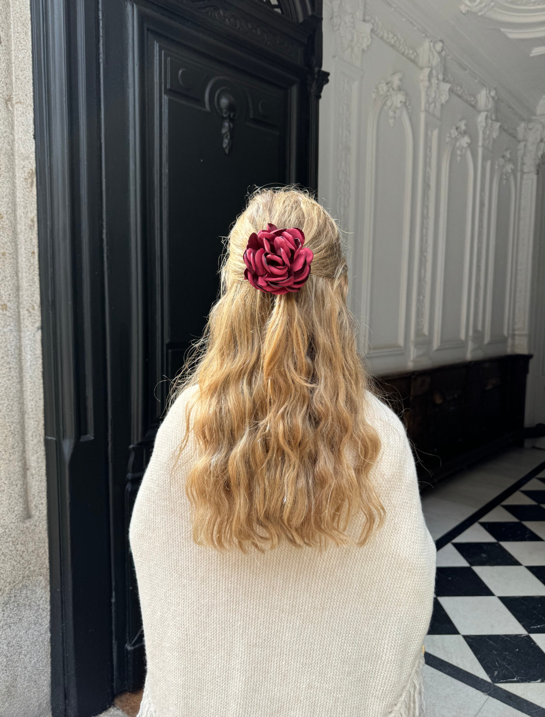 The perfect accessory for hair, clothes or neck. On the back it has a clip and a safety pin.