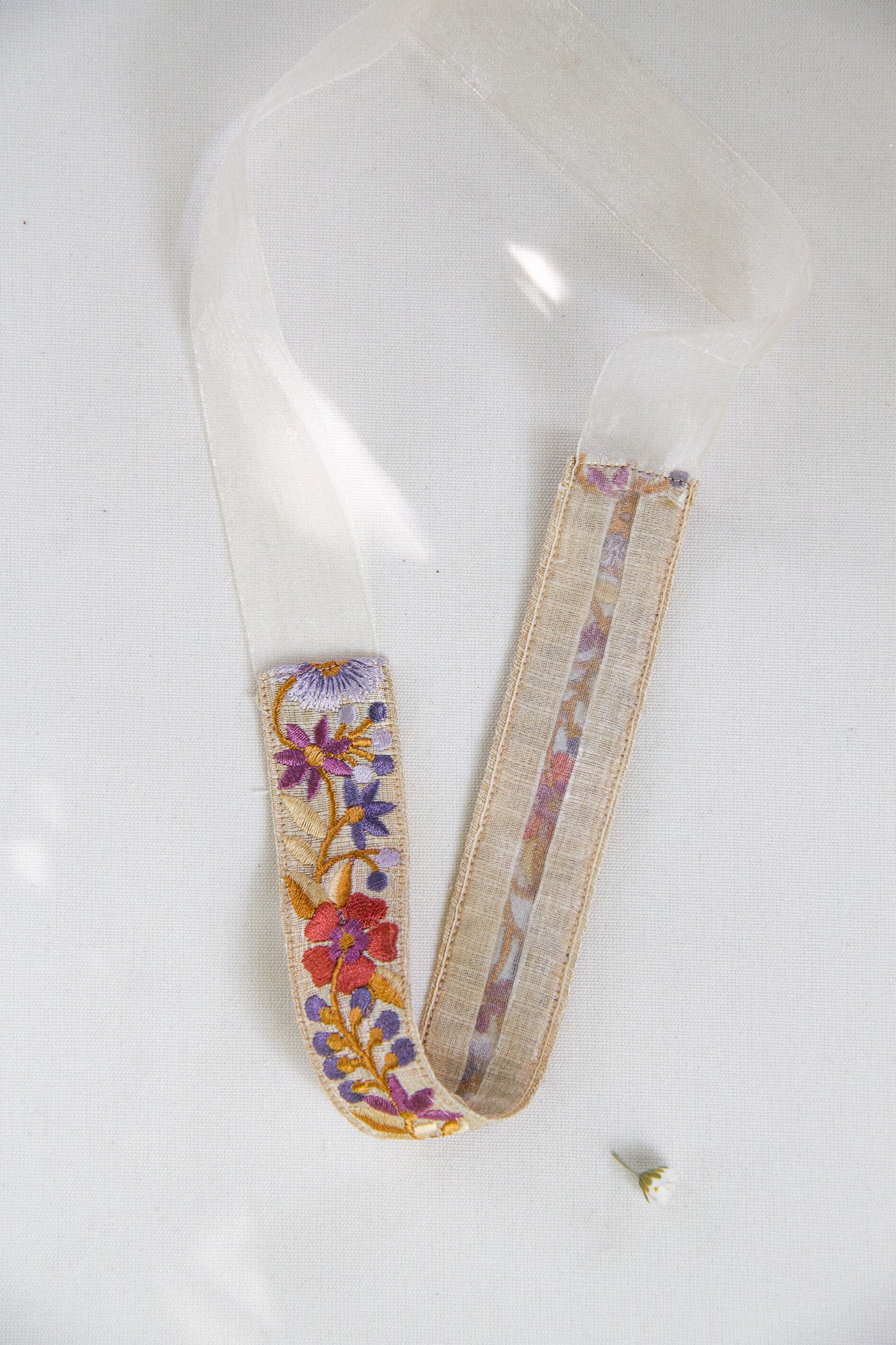 Choker en tono blanco crudo con flores bordadasen tonos azules, rosas y lilas y cierre con cinta de organza. El toque perfecto para llevar tus looks de invitada, fiesta y evento a otro nivel, o para elevar cualquier look casual.