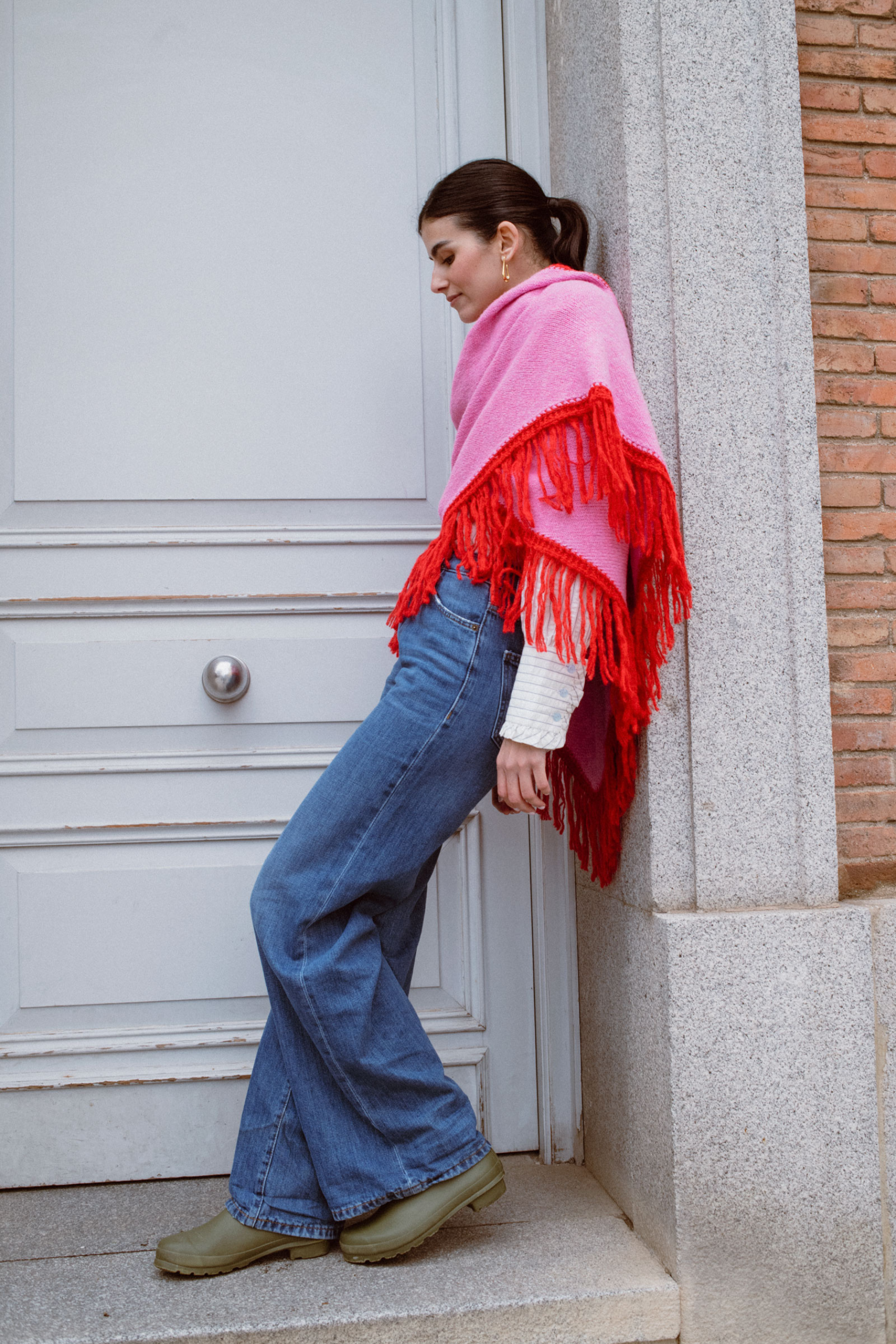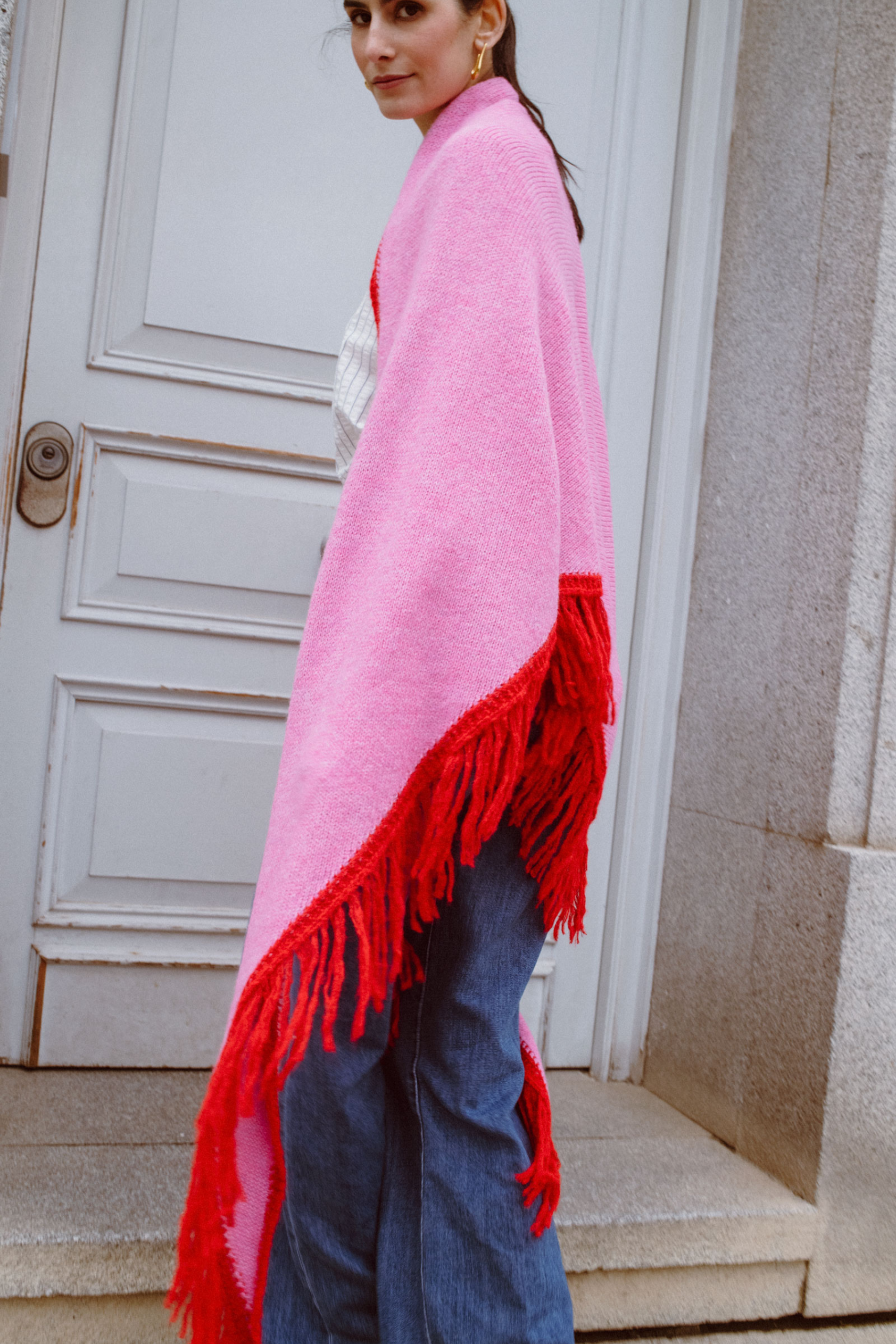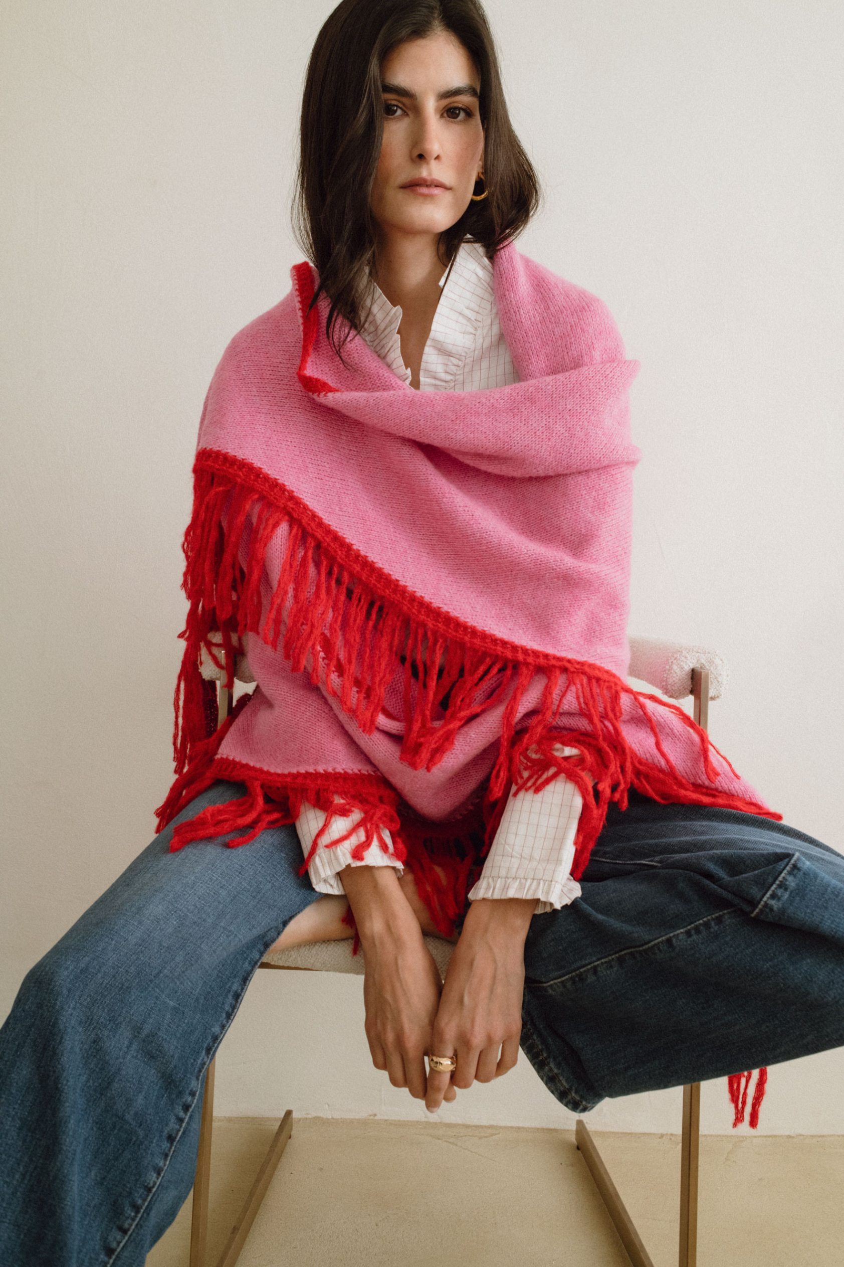 Soft, romantic, and full of charm. The Alcott Poncho – Pink blends comfort and elegance in a flowing silhouette that drapes beautifully over the shoulders. Its delicate blush tone brings a feminine touch to any outfit—perfect for layering on cool summer evenings or adding warmth and style to your everyday looks.