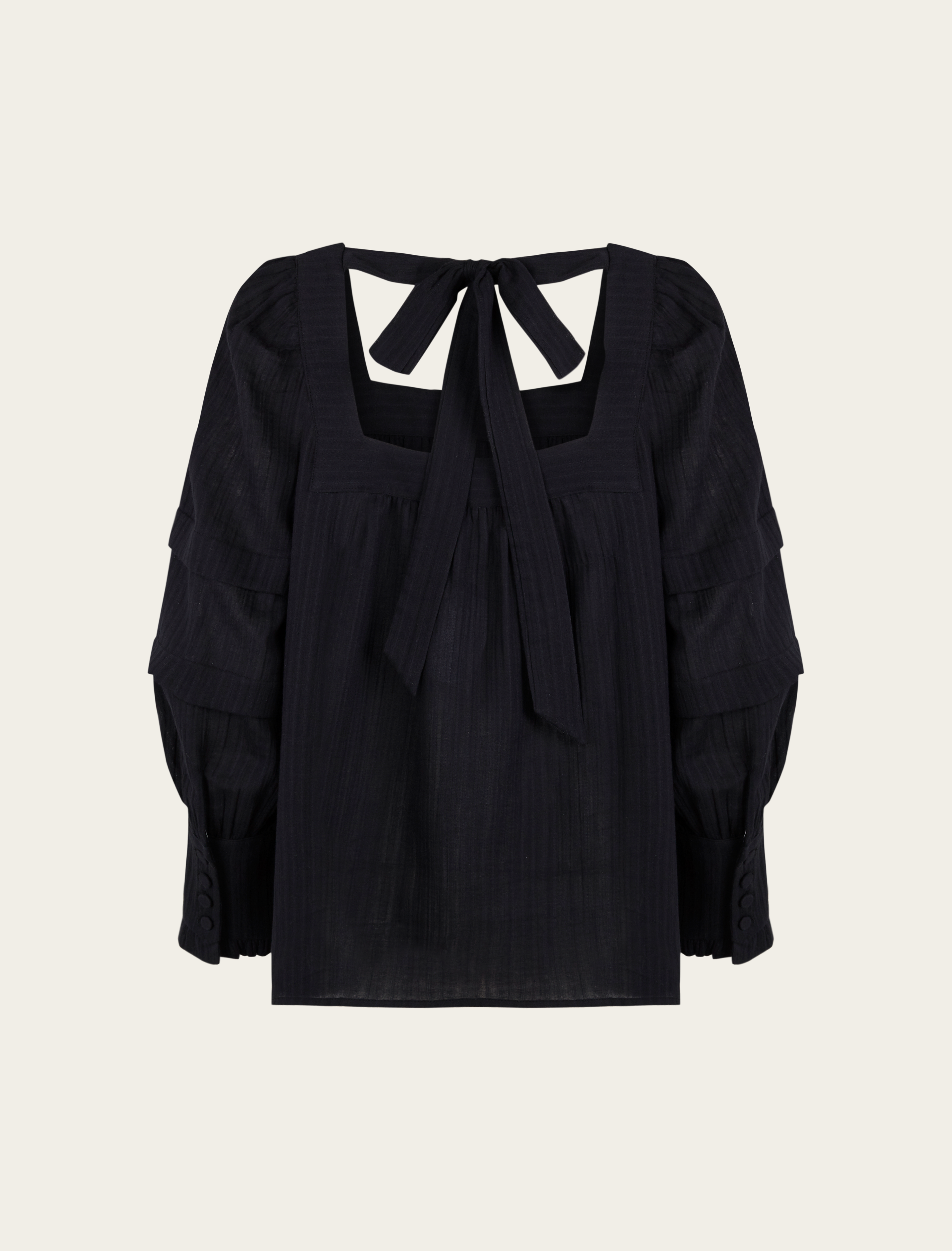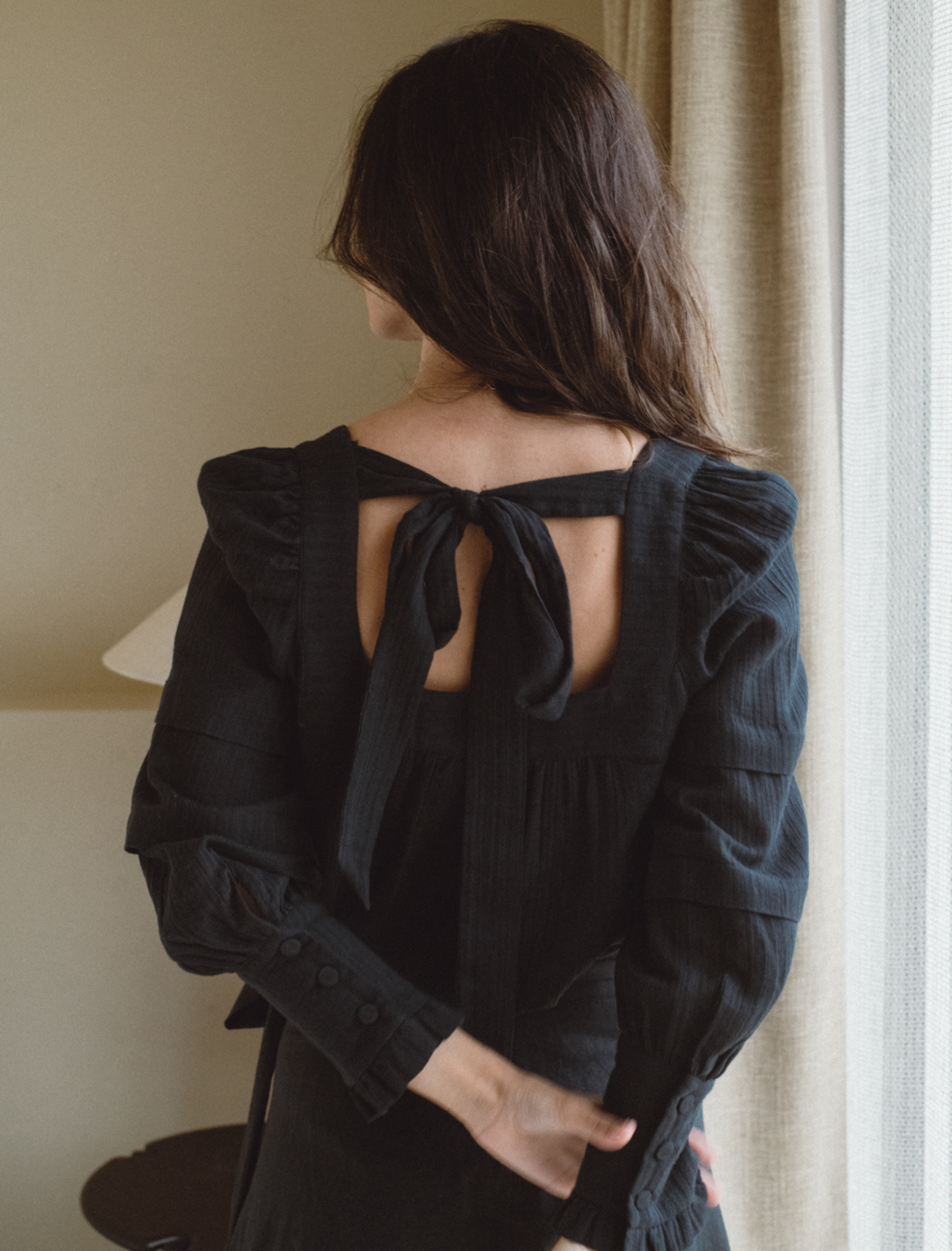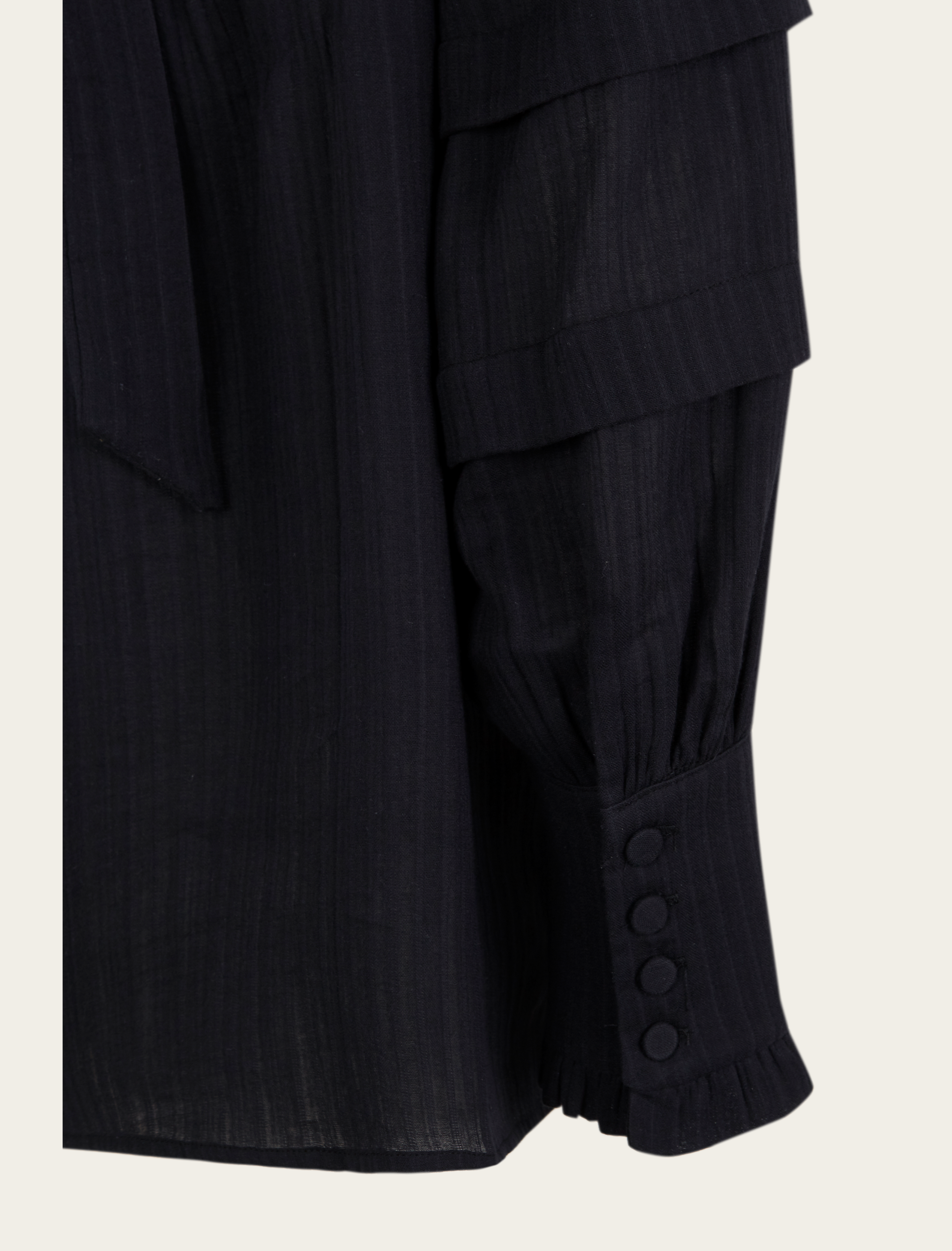 Presenta 4 botones forrados a mano de forma artesanal en sus puños con un pequeño volante en el extremo. Su lazada en la espalda hará que quieras lucir esta prenda todo el verano.