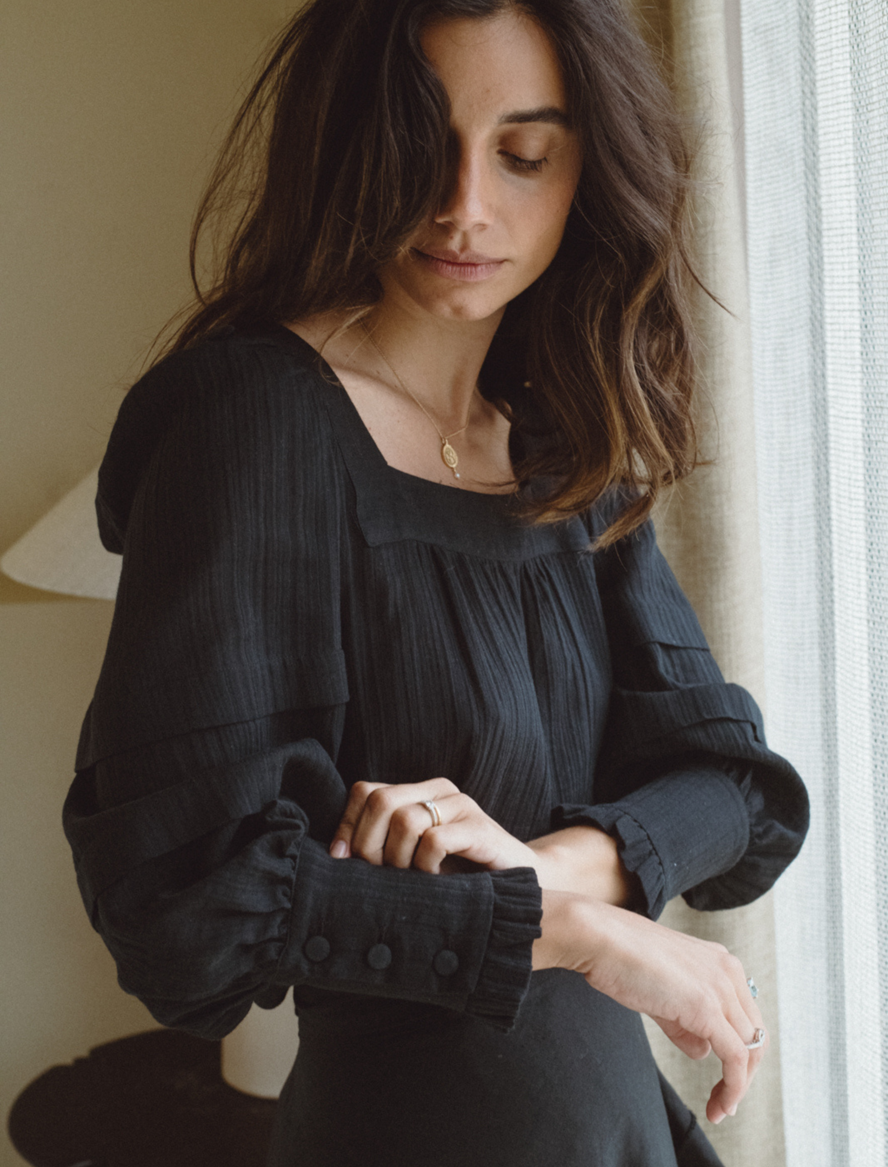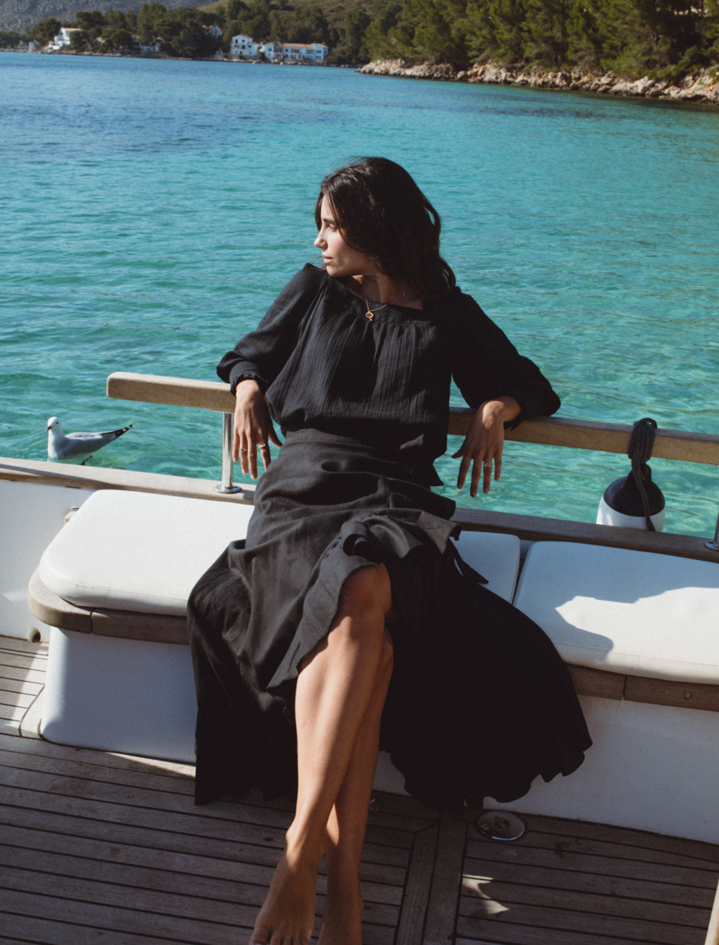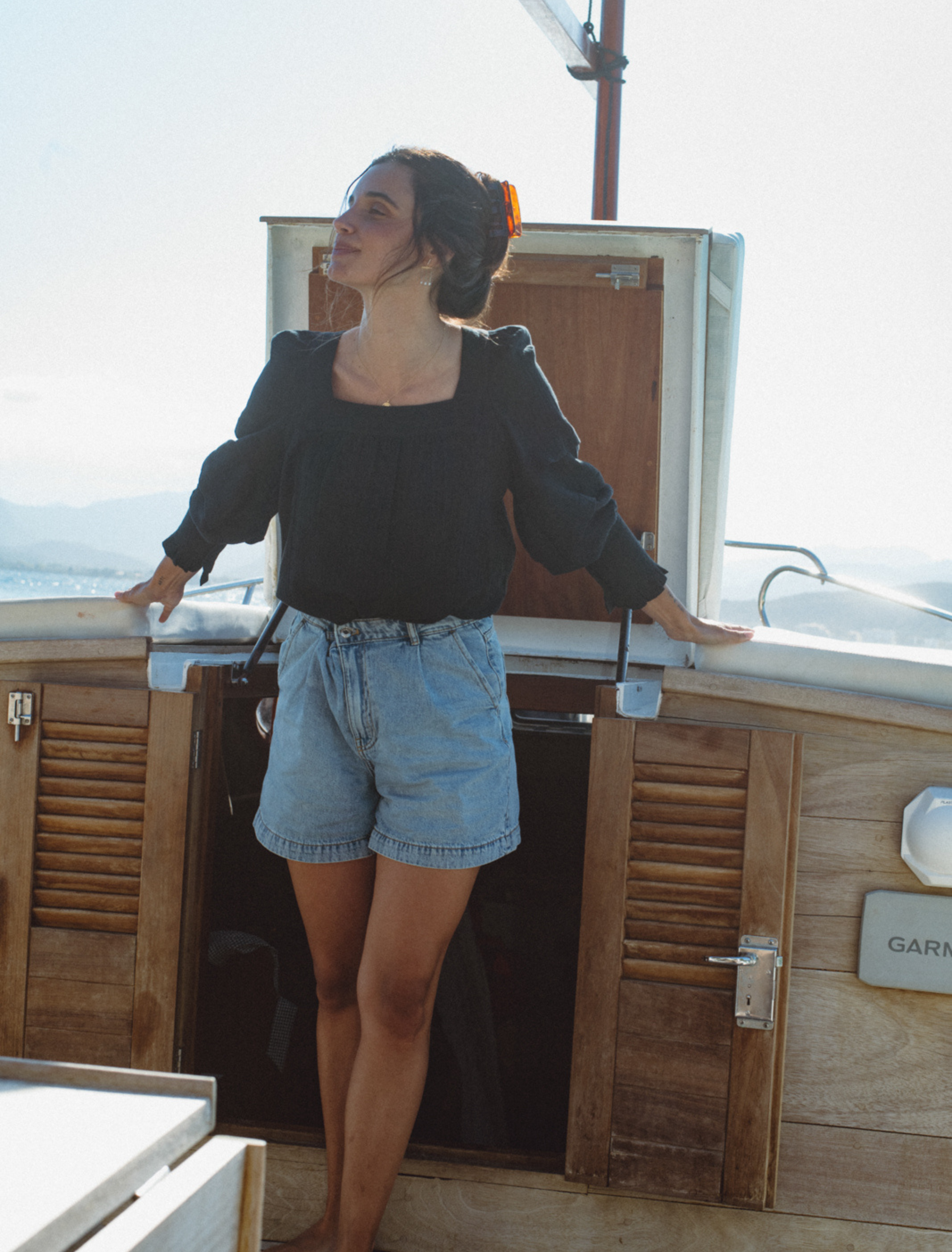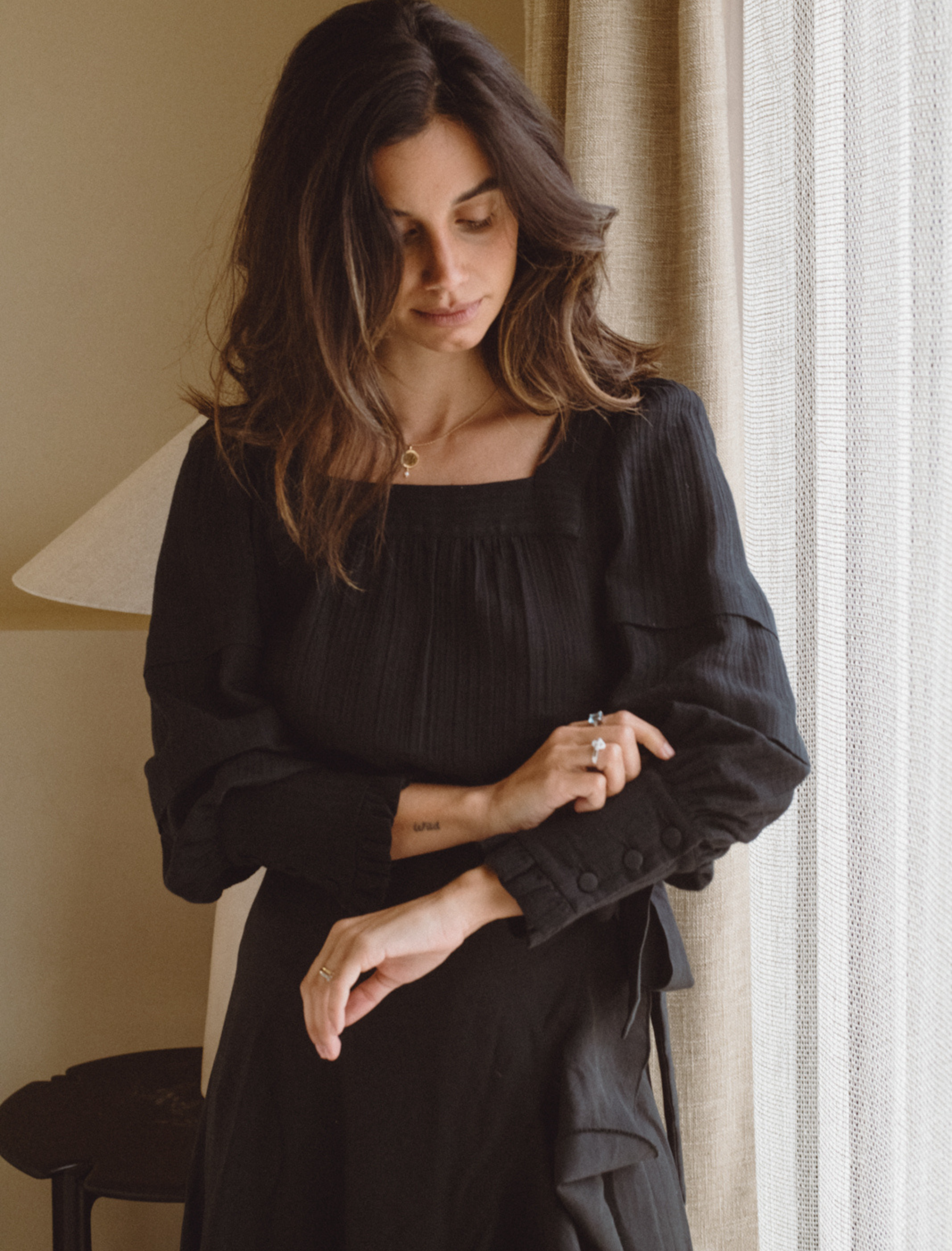 La Blusa Myra Negra reúne todas las cualidades para sumergirte en en el romance del verano, diseñada para el día y la noche, se convierte en un básico atemporal. Con detalles delicados y un toque de sofisticación. Gracias a tu composición 100% algodón, te envolverá en un aura de elegancia en cualquier ocasión.