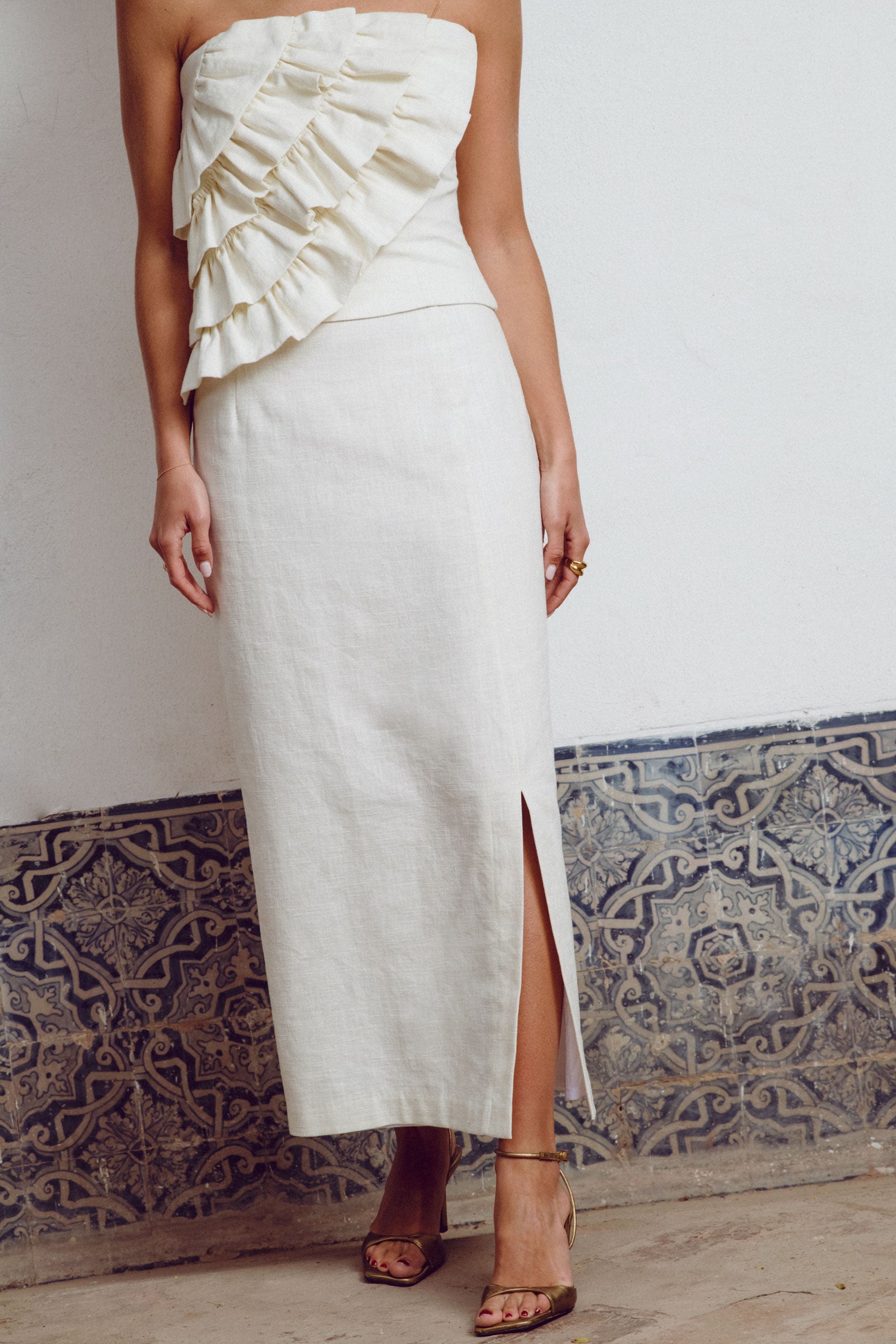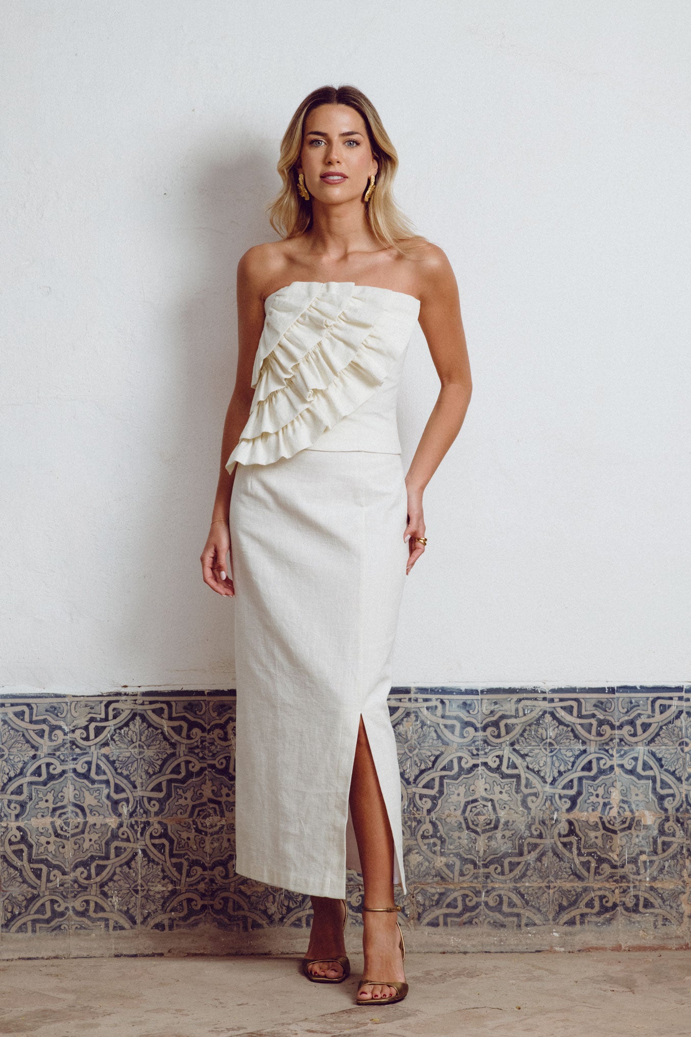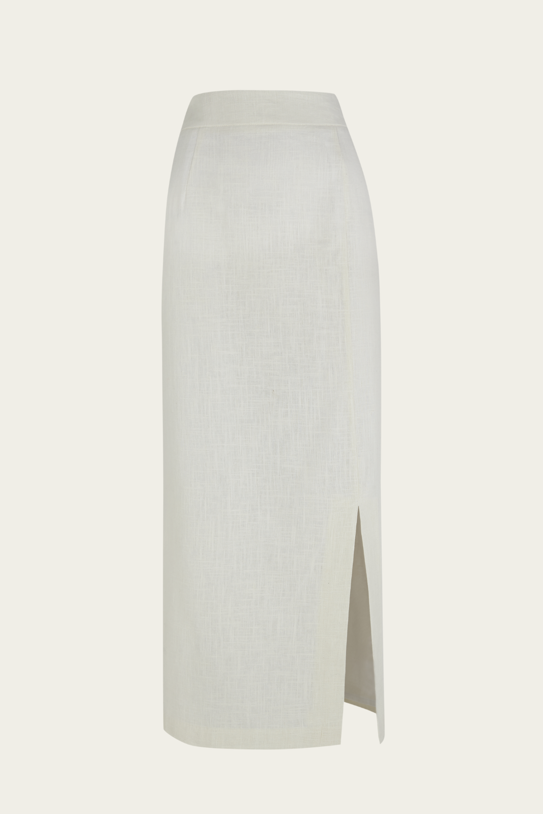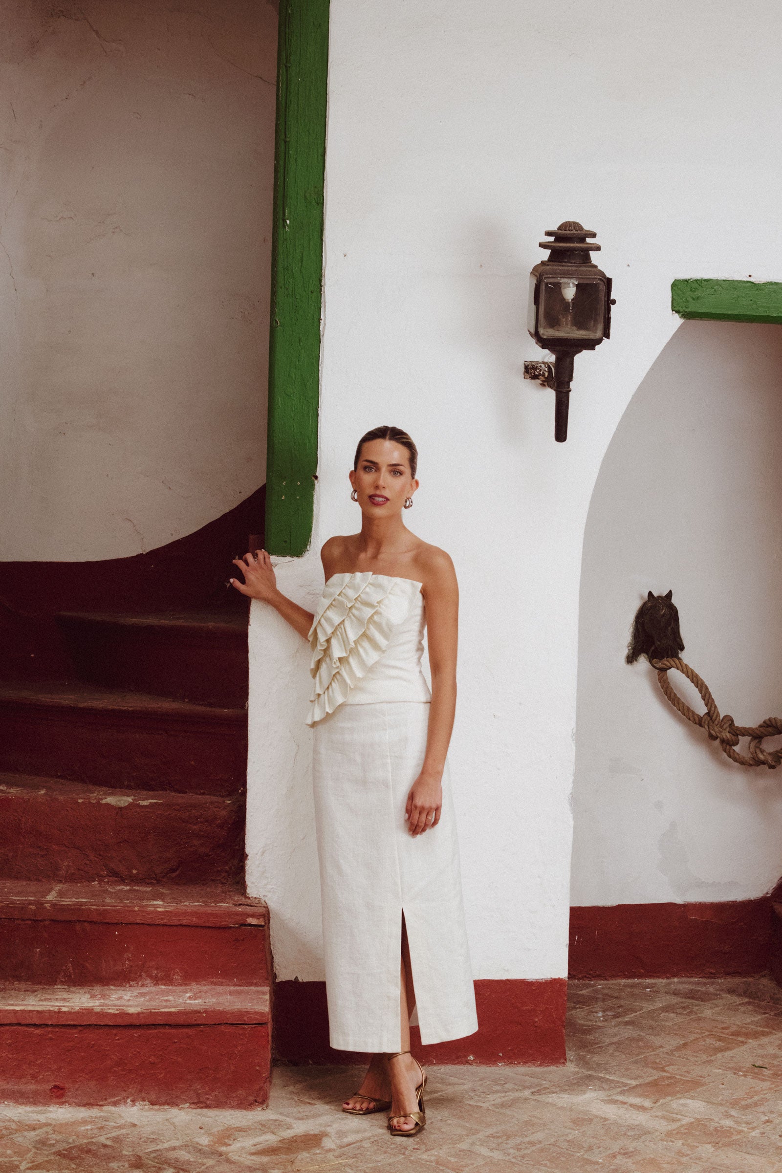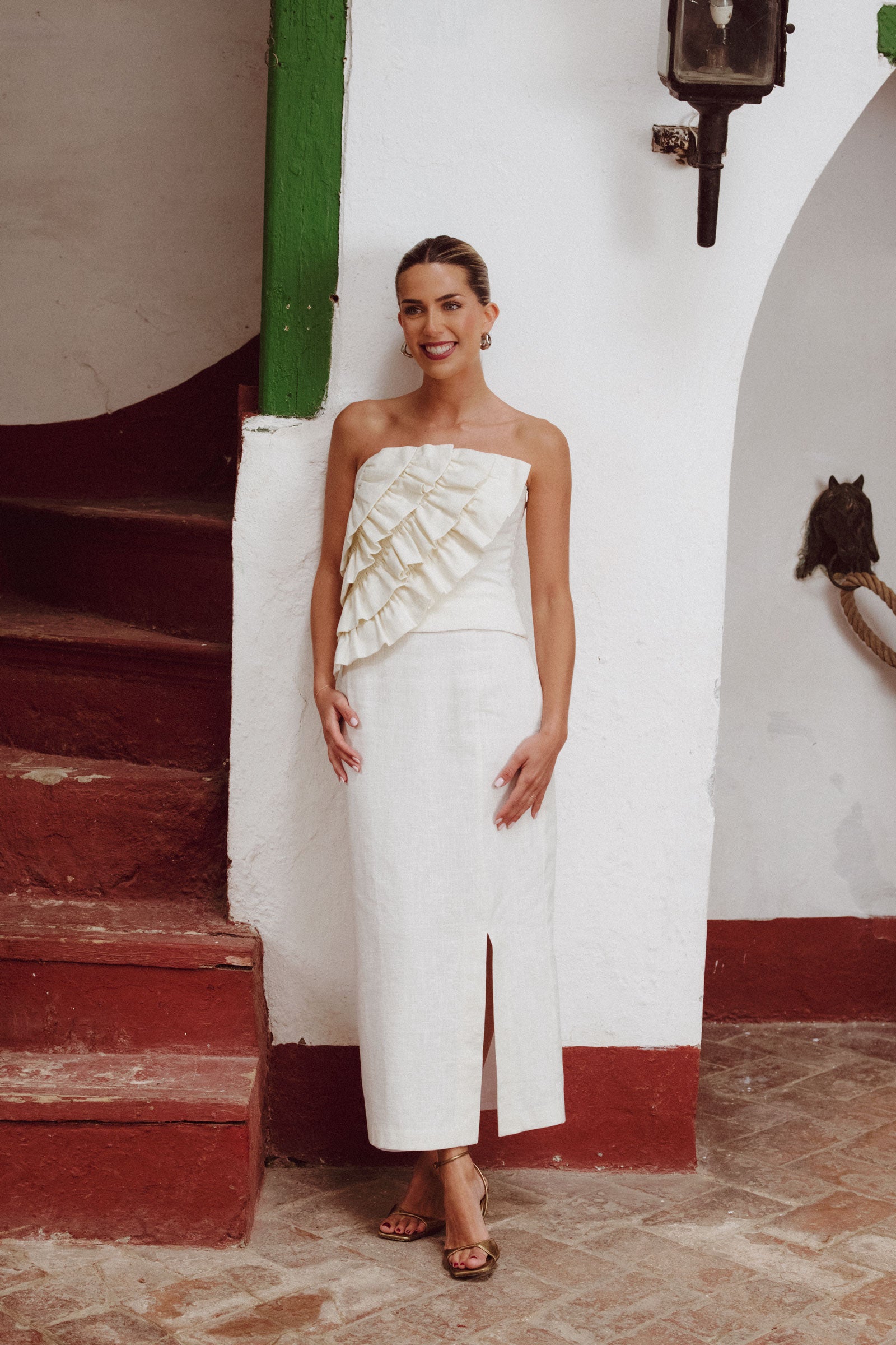Refinada y minimalista, esta falda de tubo es perfecta para madres de bautizo, pedidas, prebodas, o cualquier evento que tengas. Su diseño favorece todas las siluetas y se adapta con facilidad a distintos estilos. Cremallera lateral