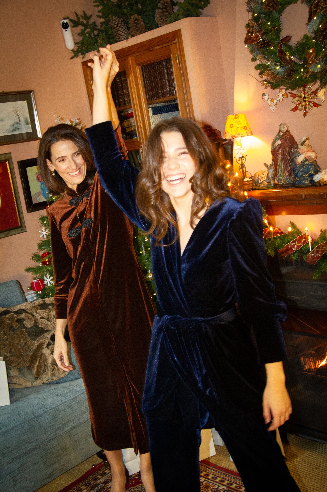 Chaqueta en terciopelo de manga abullonada y puños largos. Cierre cruzado con fajín, se puede llevar tanto cerrada con escote en pico como abierta. Versátil y elegante, será la aliada perfecta para estas Navidades y cualquier evento que se te presente. La prenda perfecta para las invitadas de invierno.