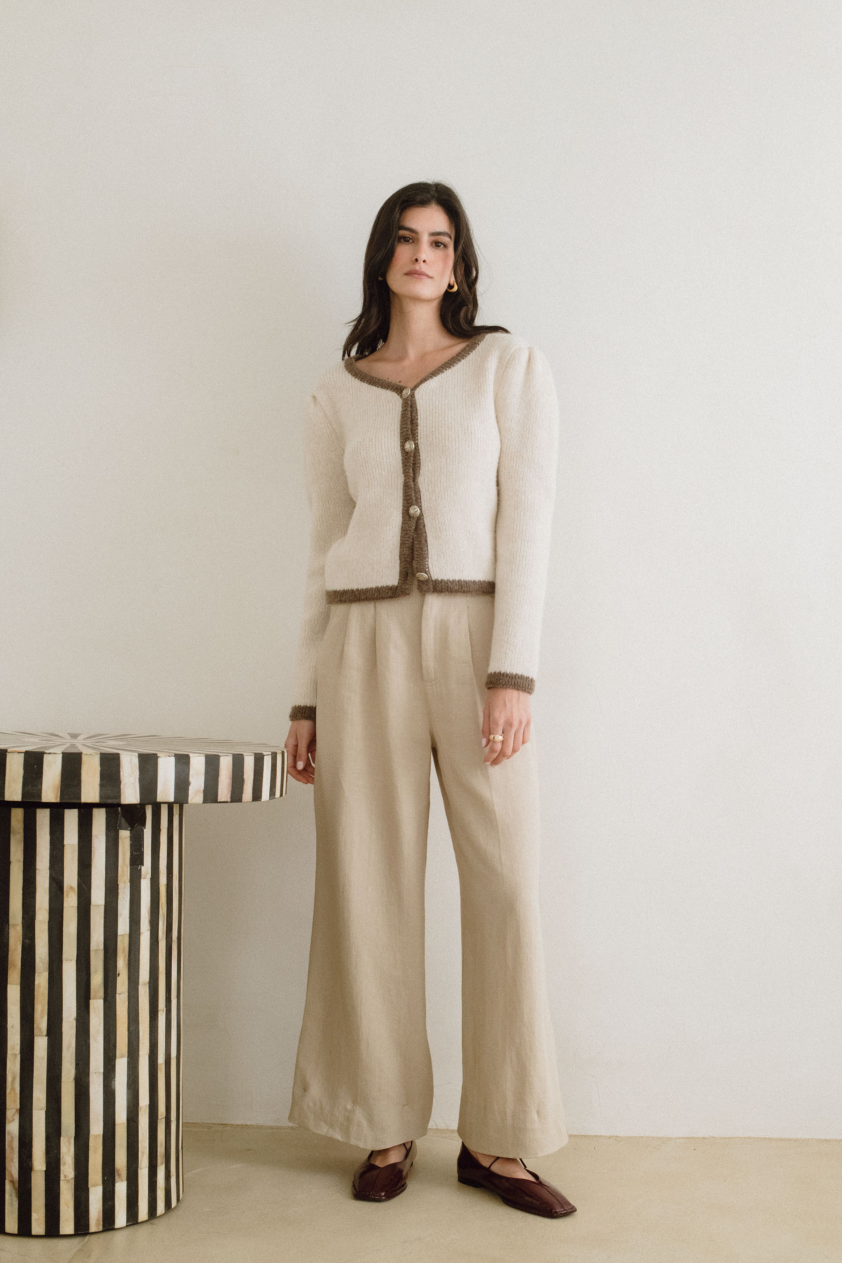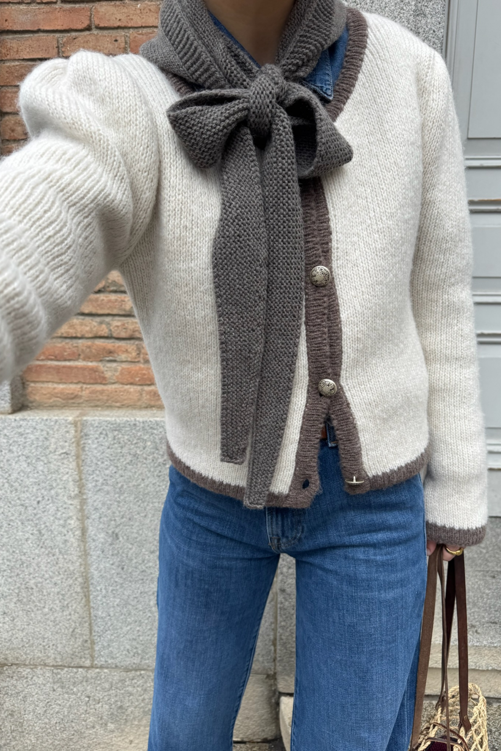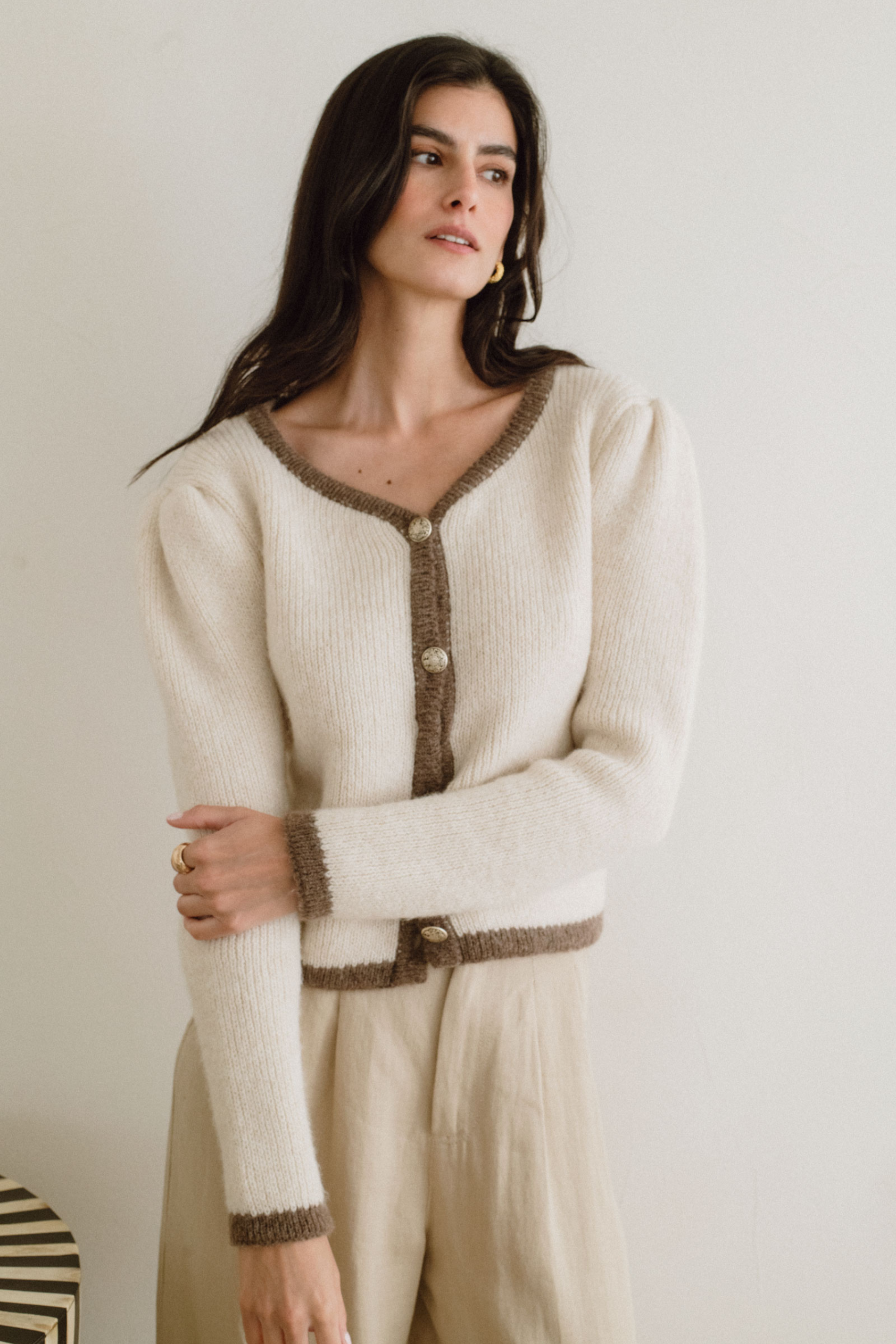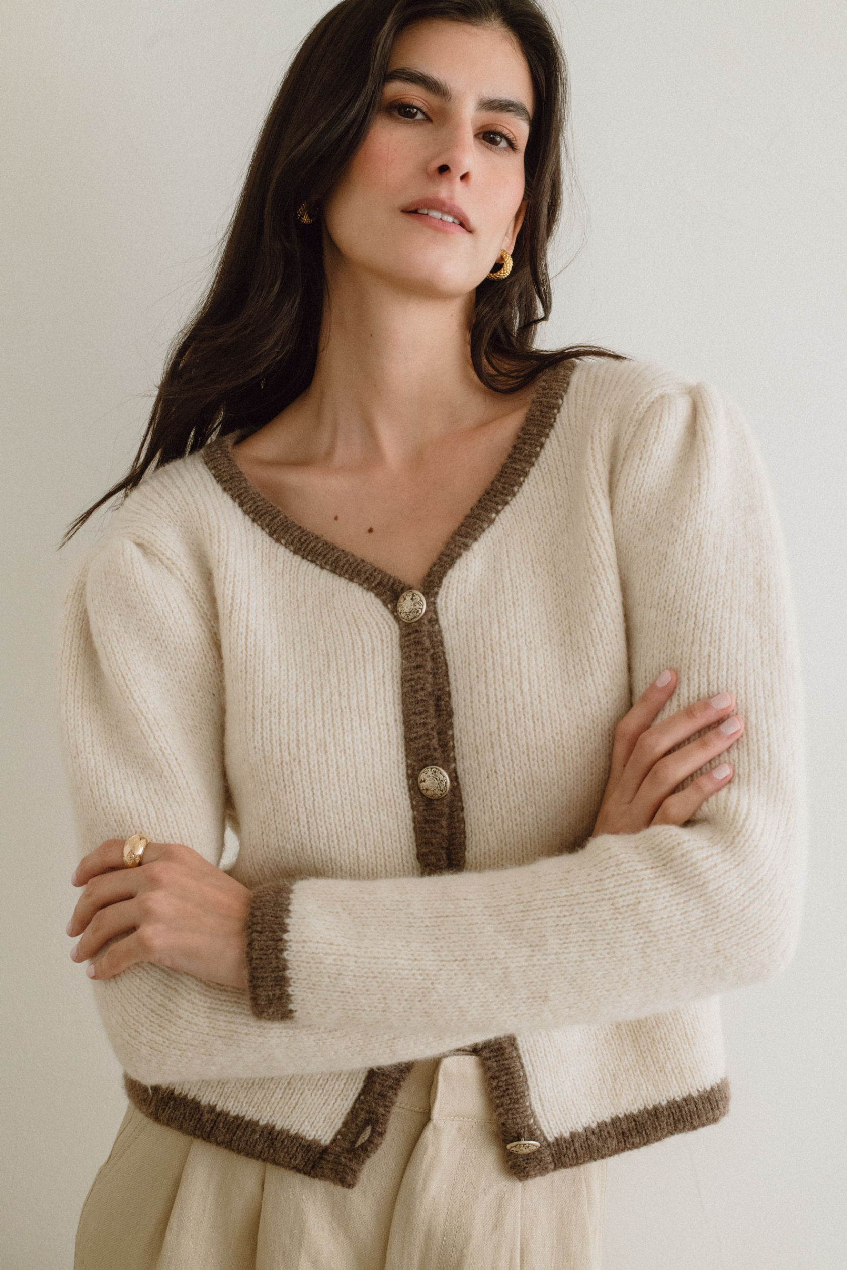 Minimalista, delicada y con una fuerza serena, la chaqueta de punto tipo austriaca Margot- Off white es la definición de un básico con alma.