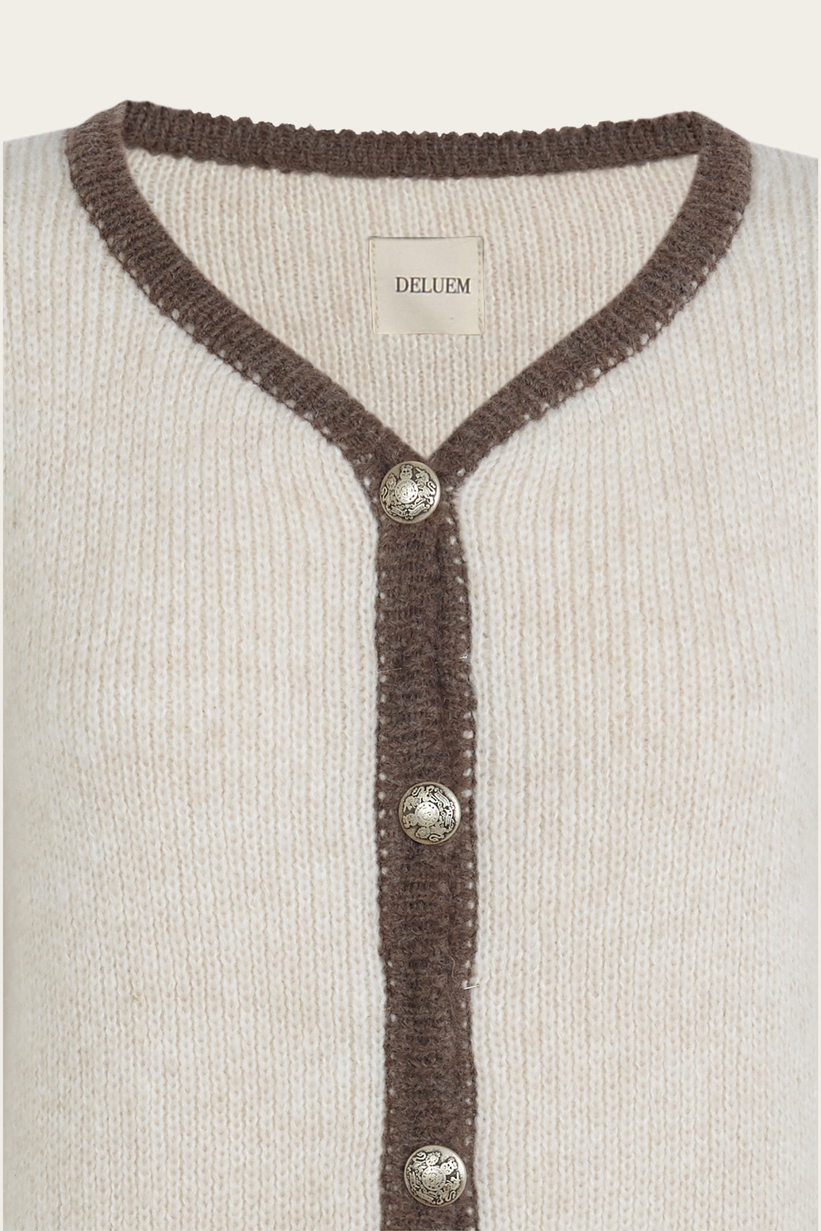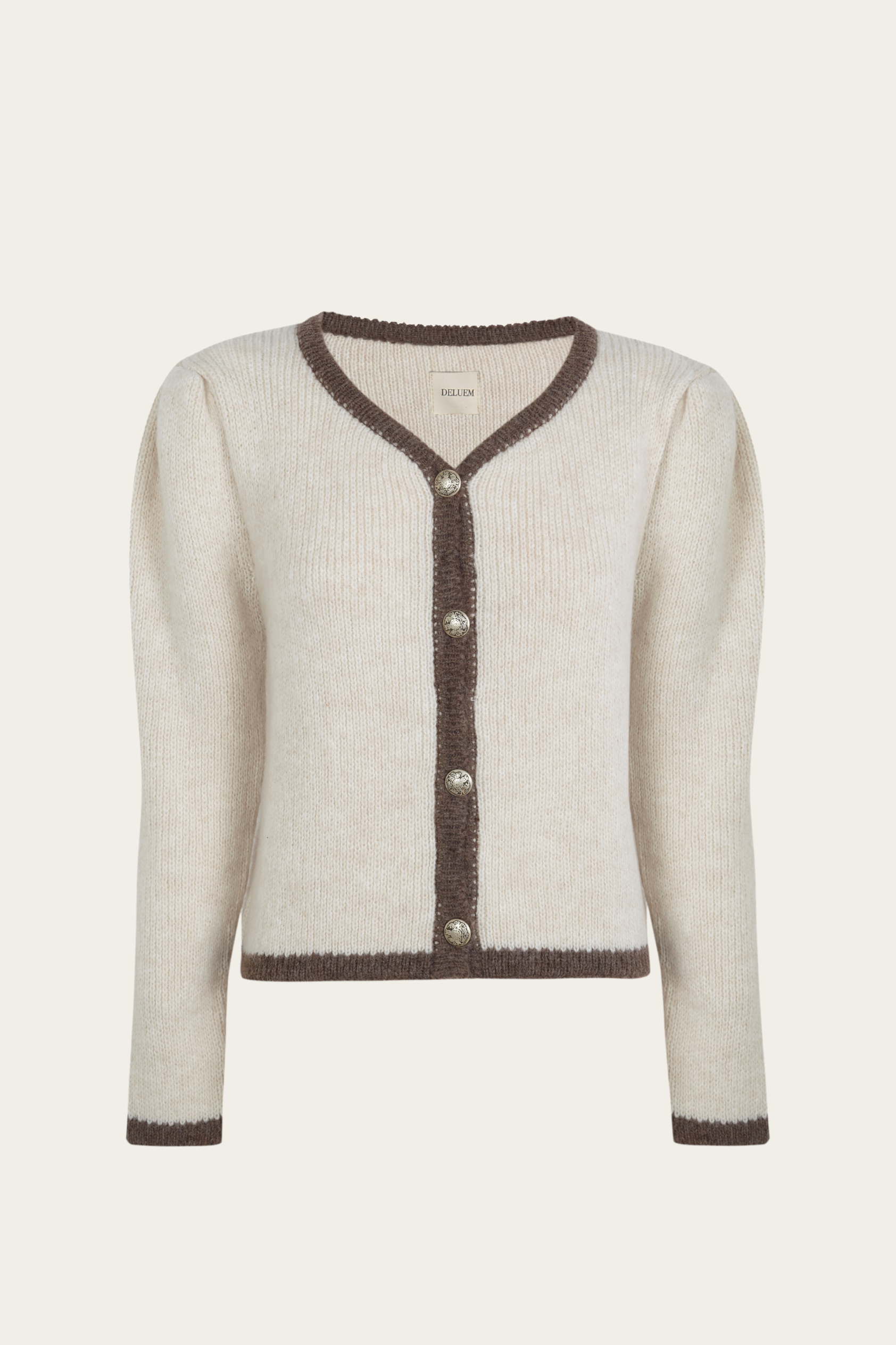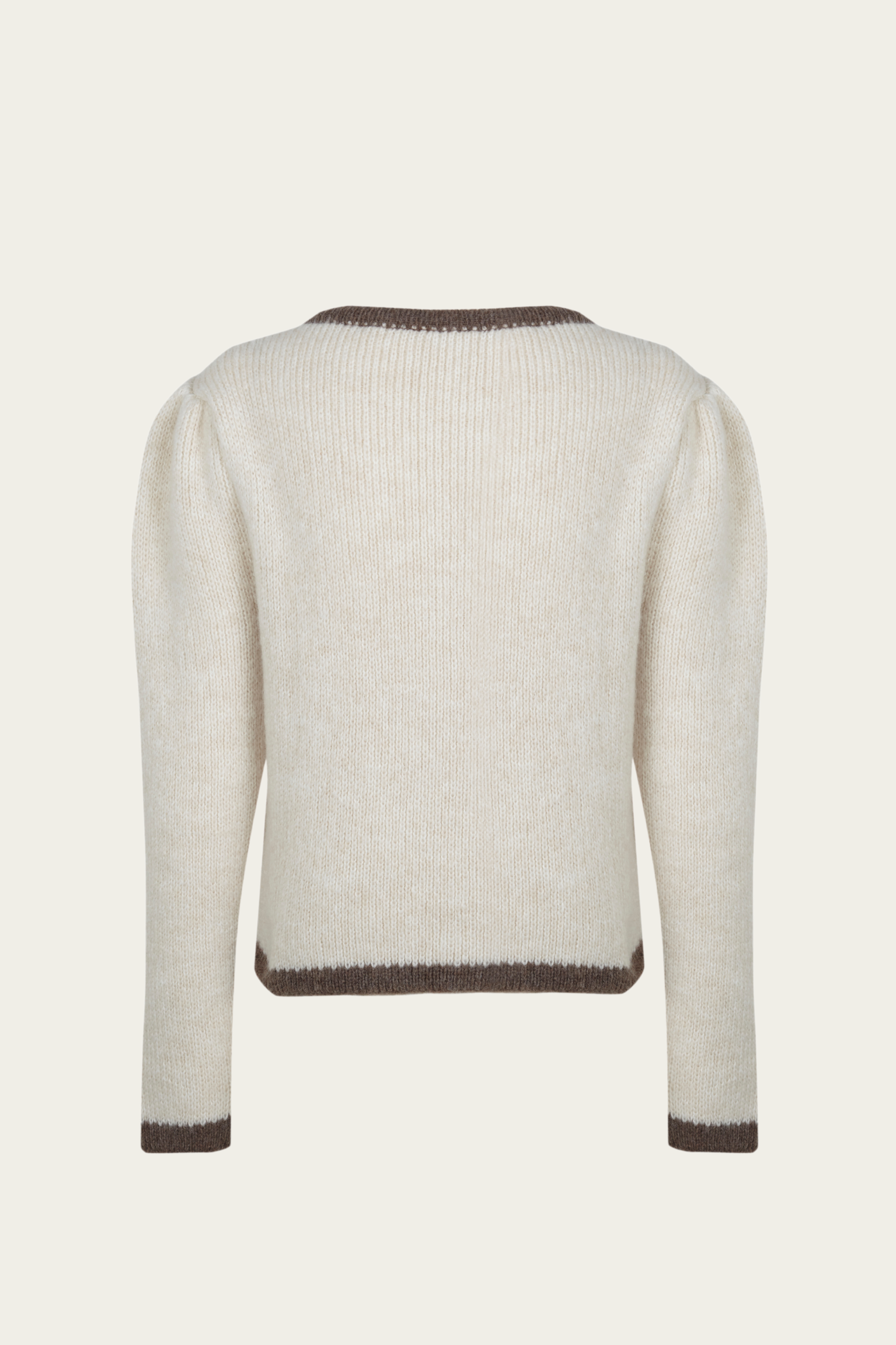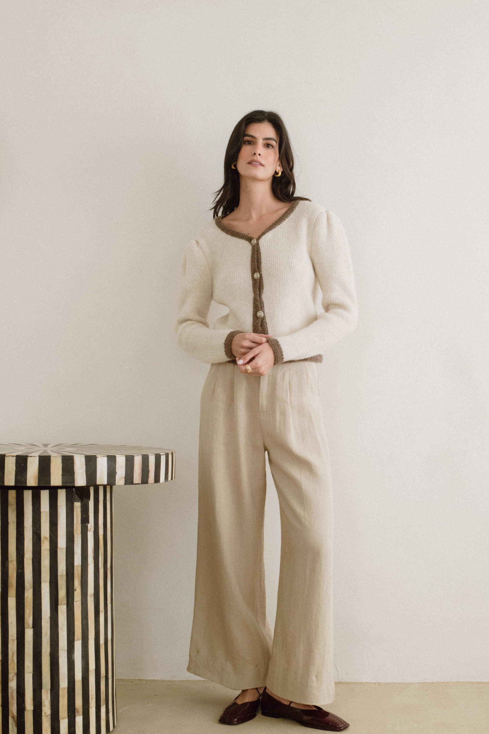 Minimalista, delicada y con una fuerza serena, la chaqueta de punto tipo austriaca Margot- Off white es la definición de un básico con alma.