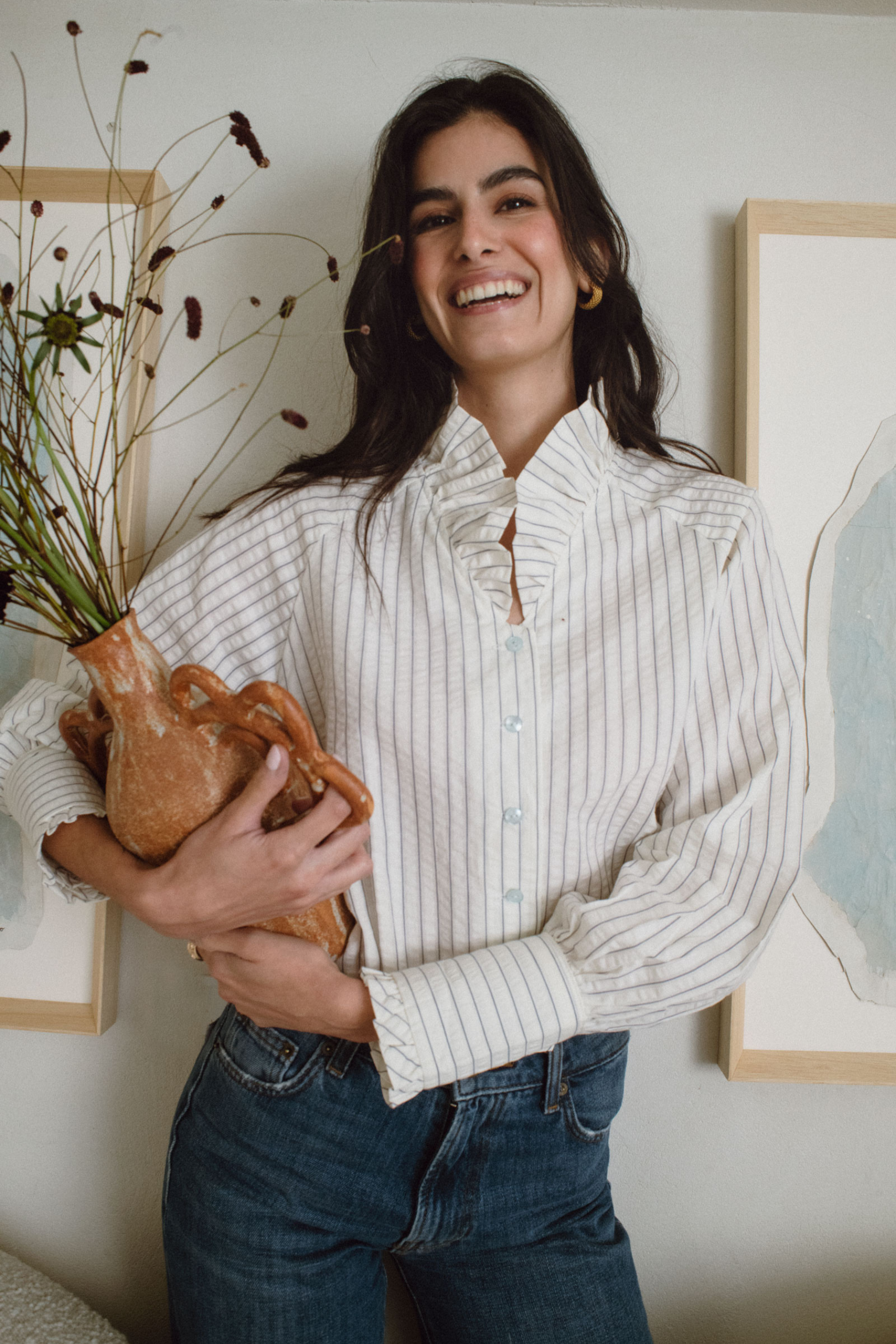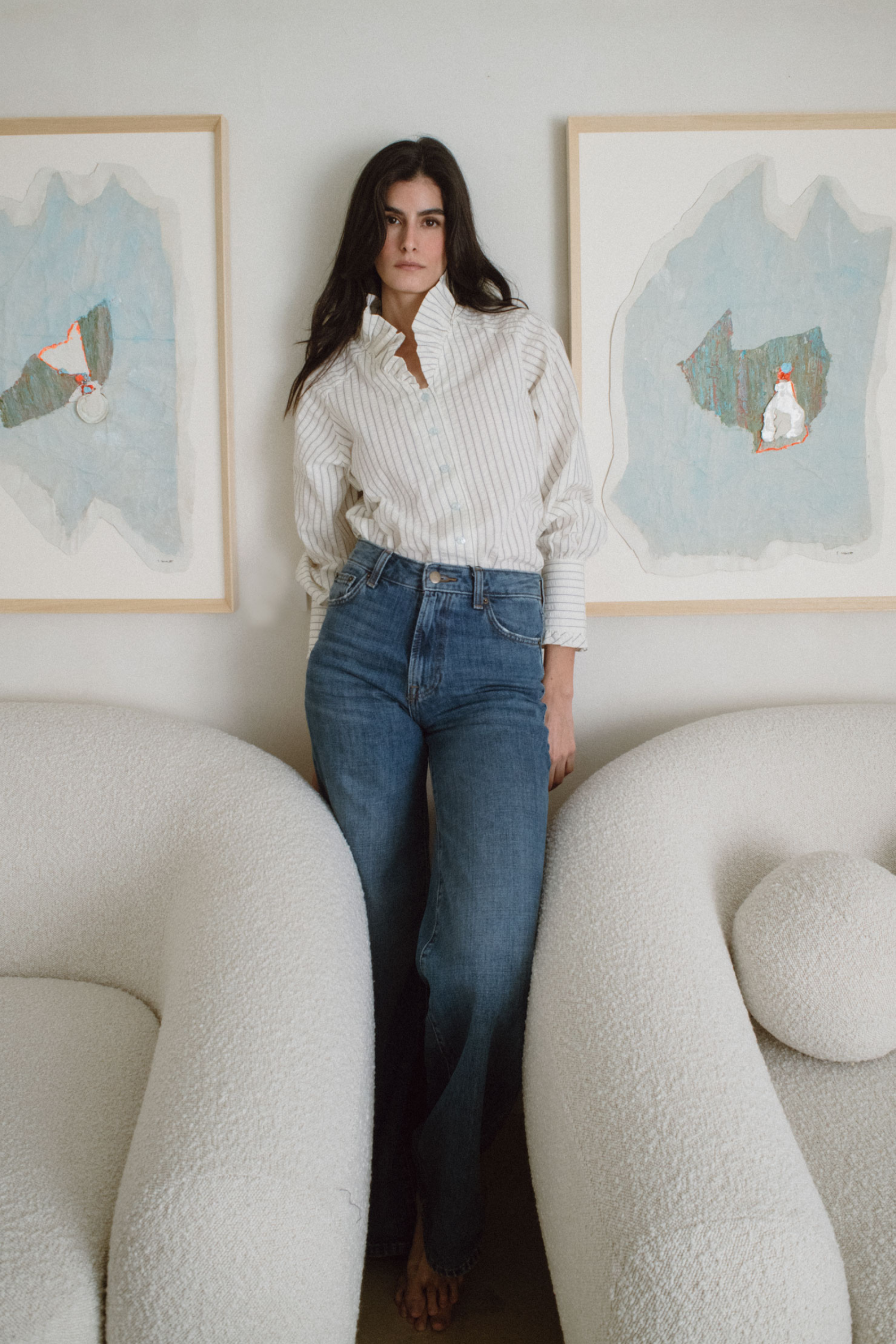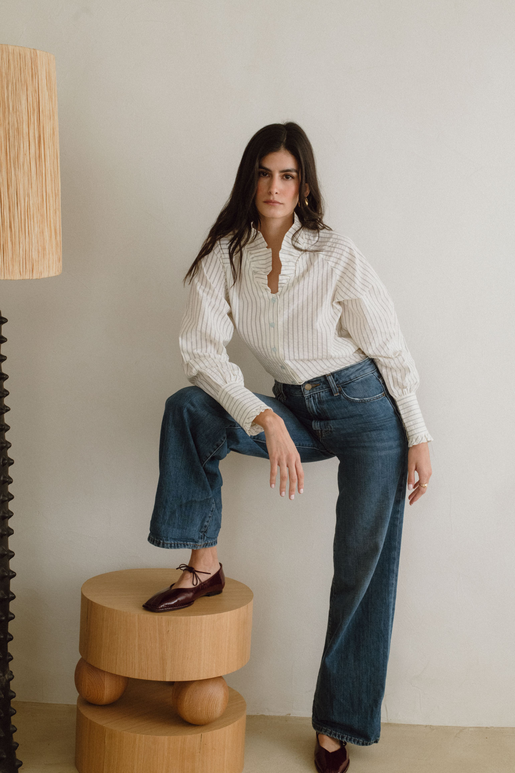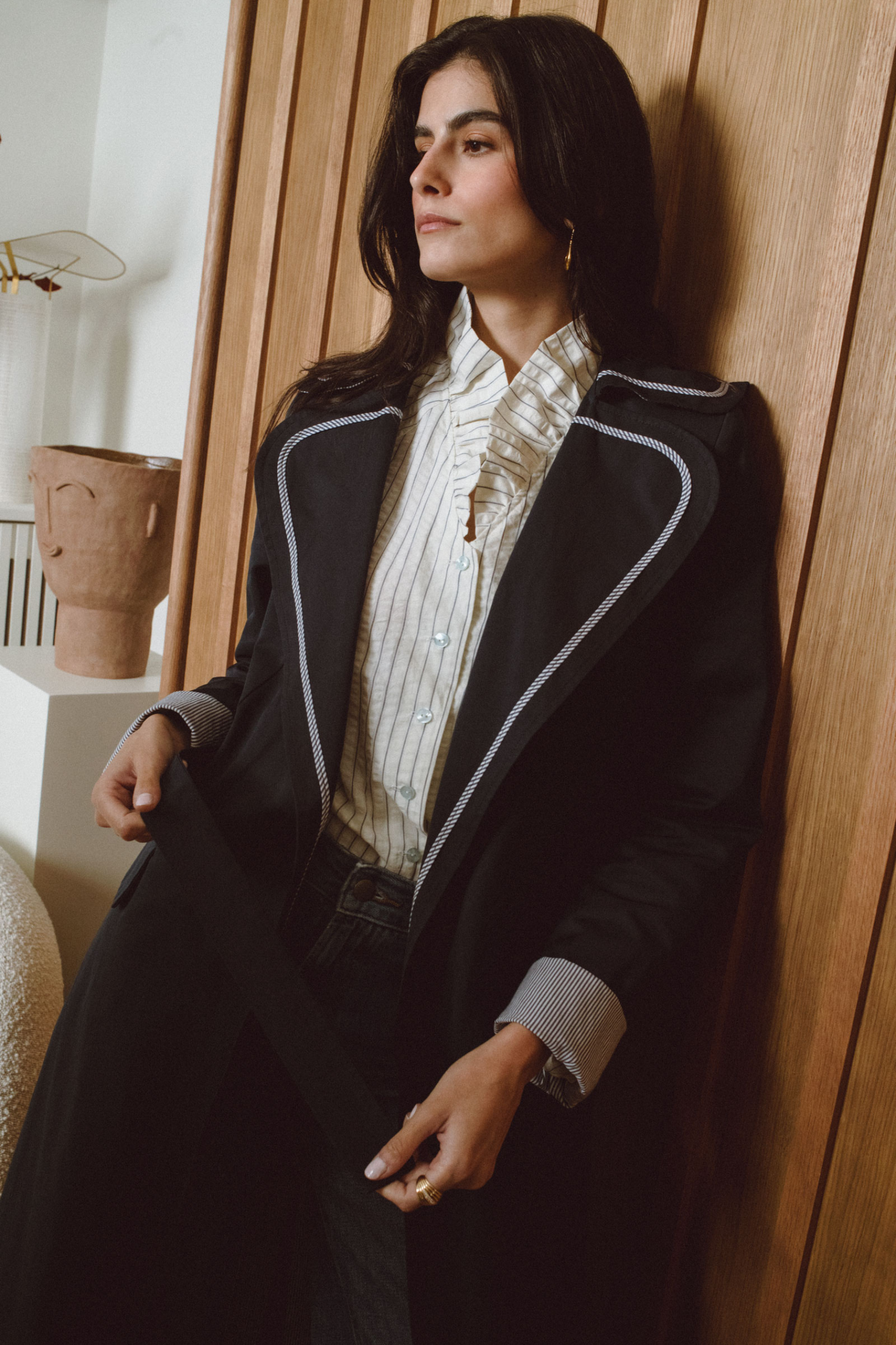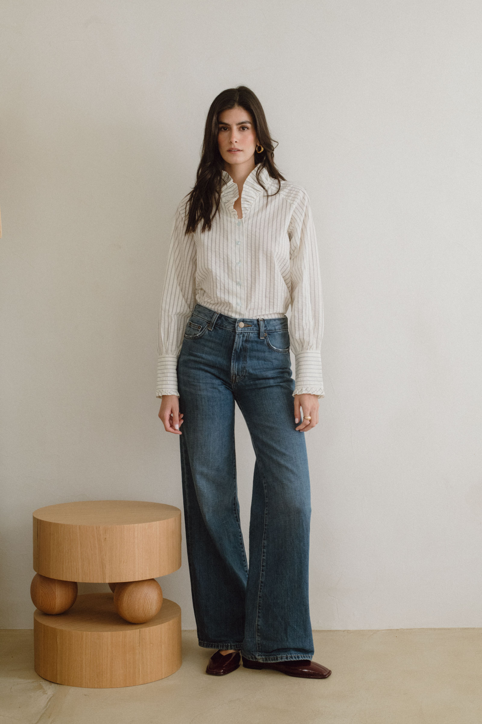 Los detalles minimalistas y el corte impecable aportan un aire sofisticado, mientras que su versatilidad permite llevarla de manera formal o relajada. Aurora es luz y equilibrio, una prenda diseñada para iluminar cada momento con elegancia sin esfuerzo.