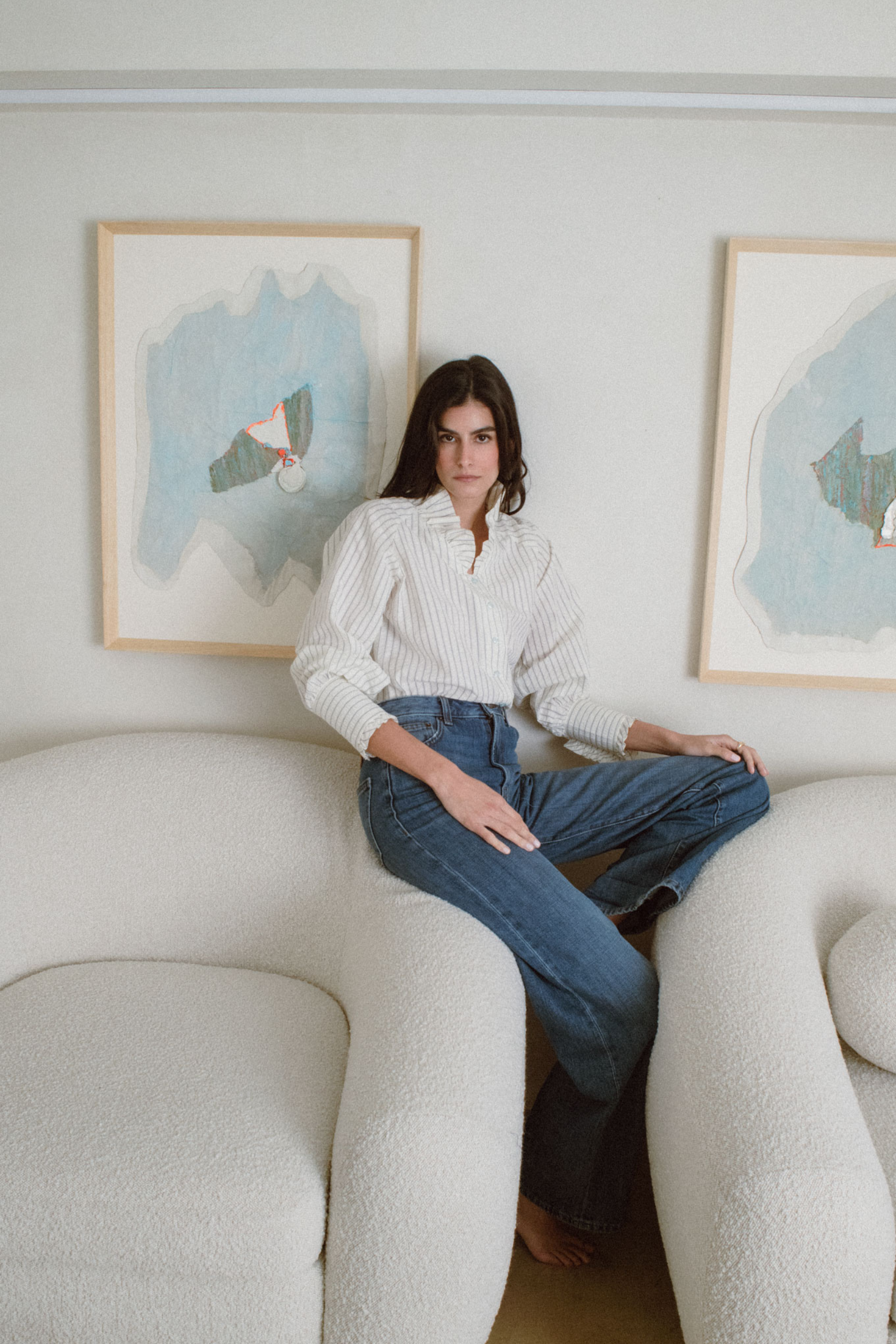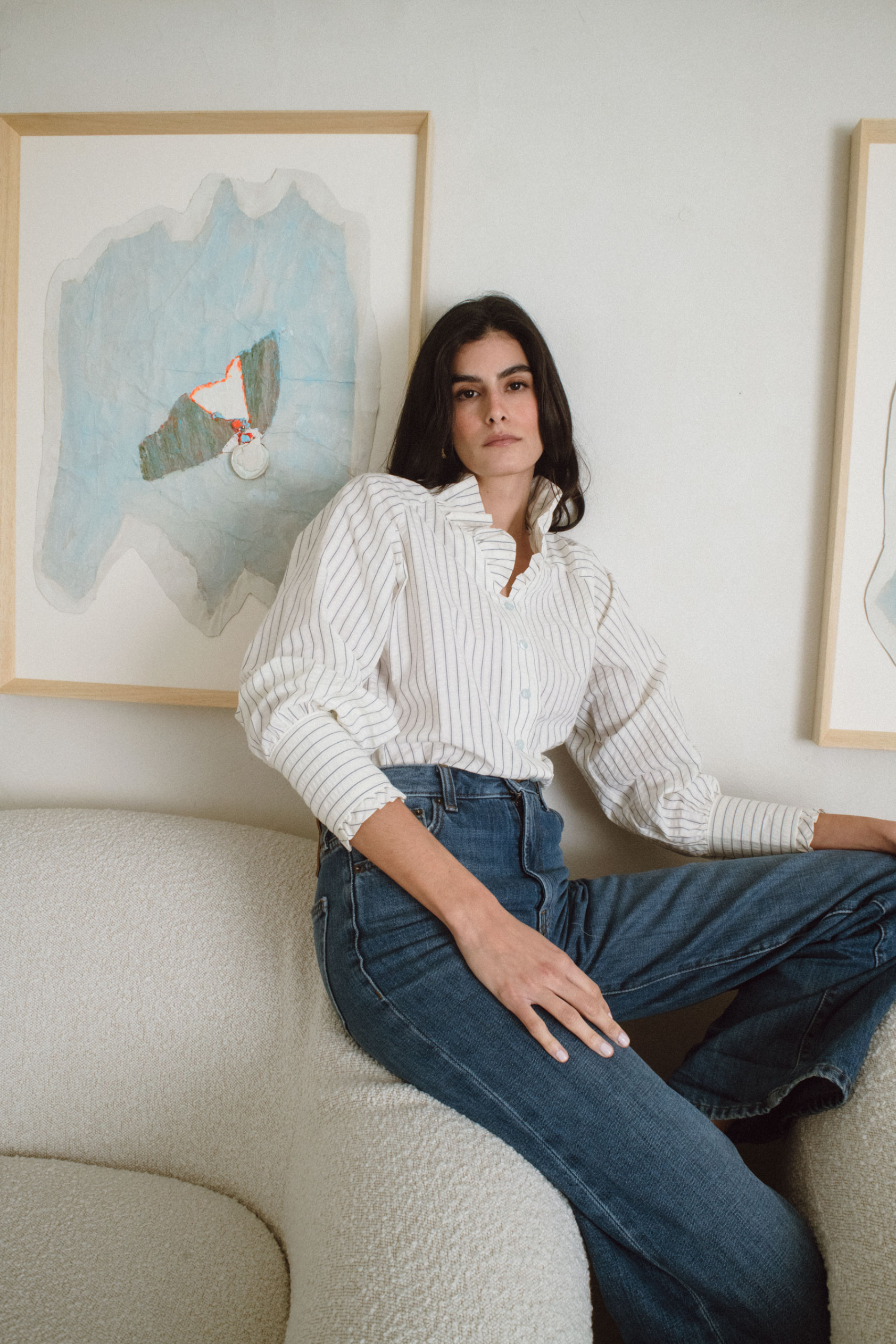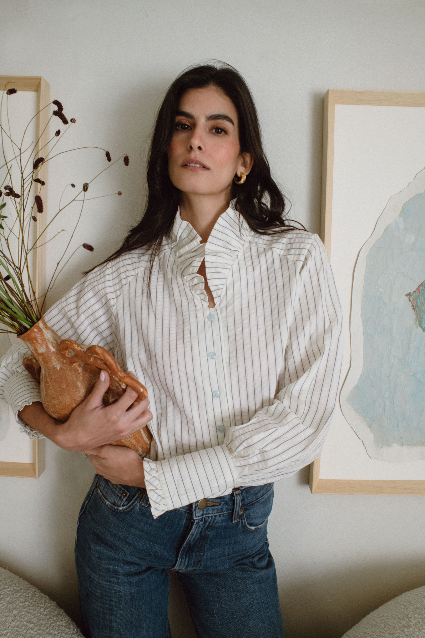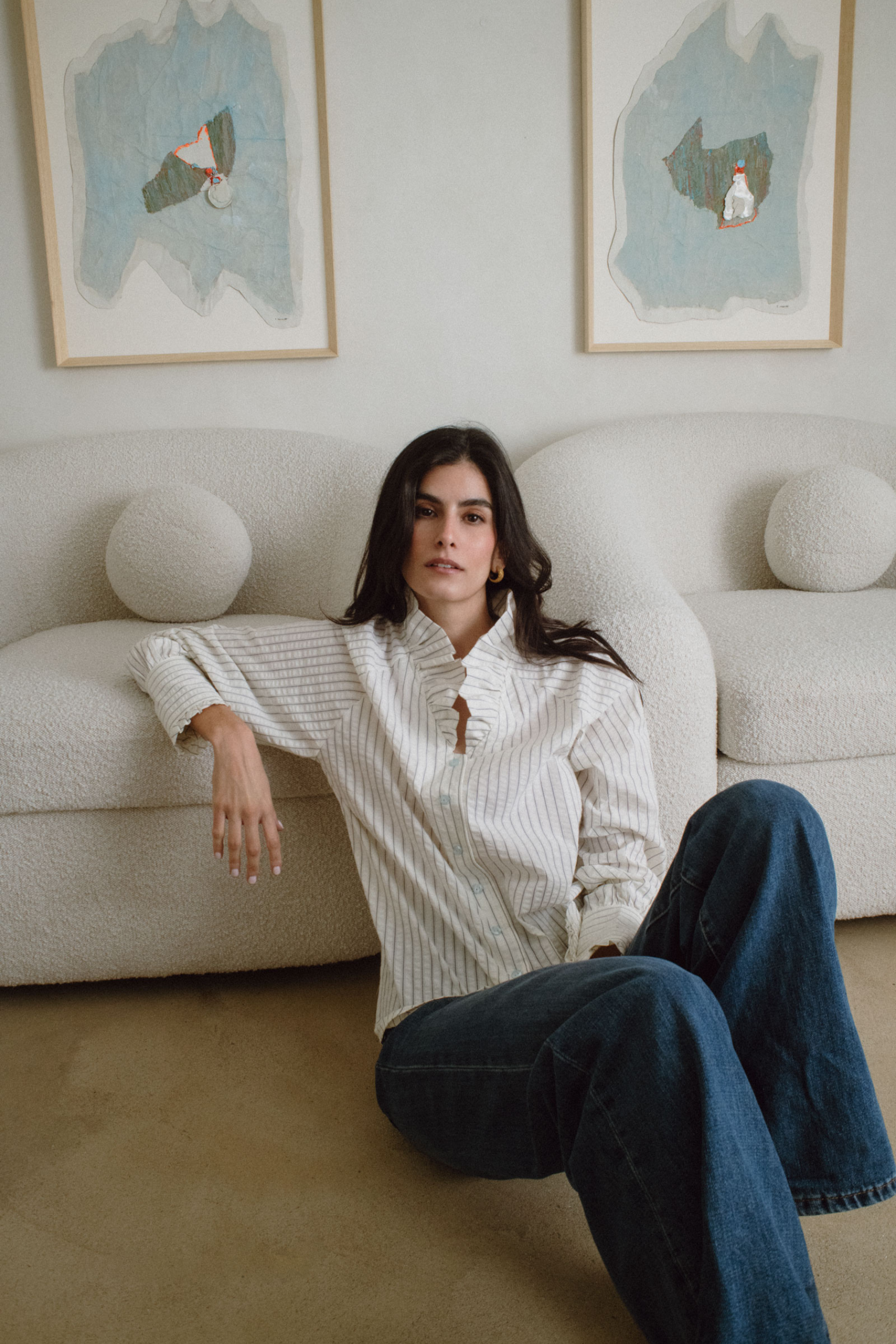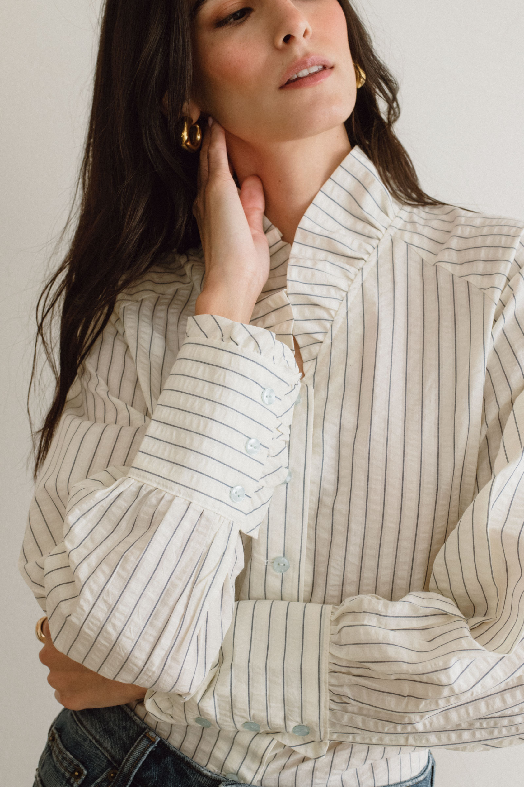 La Blusa Aurora captura la esencia de la feminidad contemporánea. Su tejido de algodón, suave y transpirable, se adapta al cuerpo con una caída natural que realza la silueta.