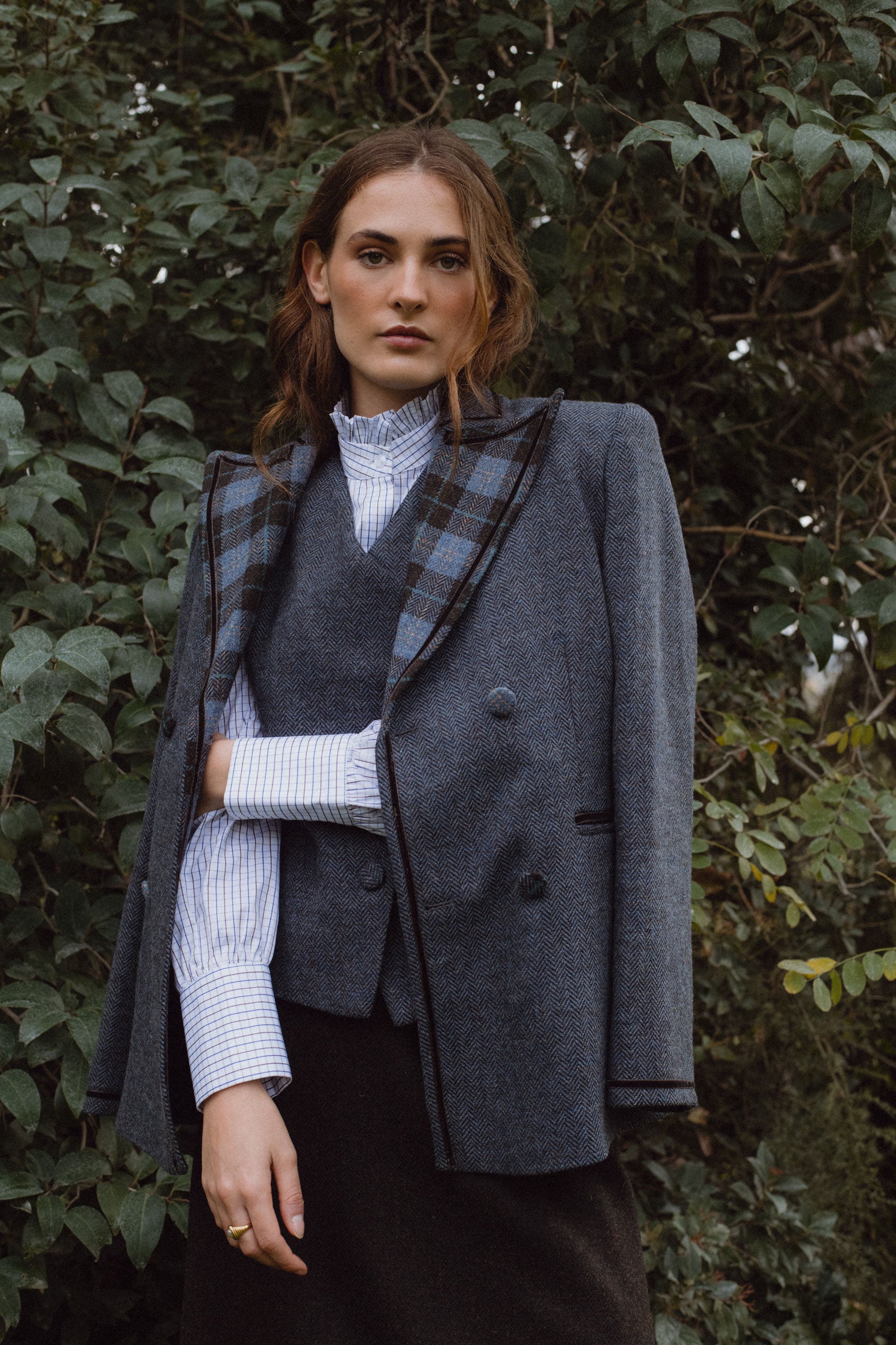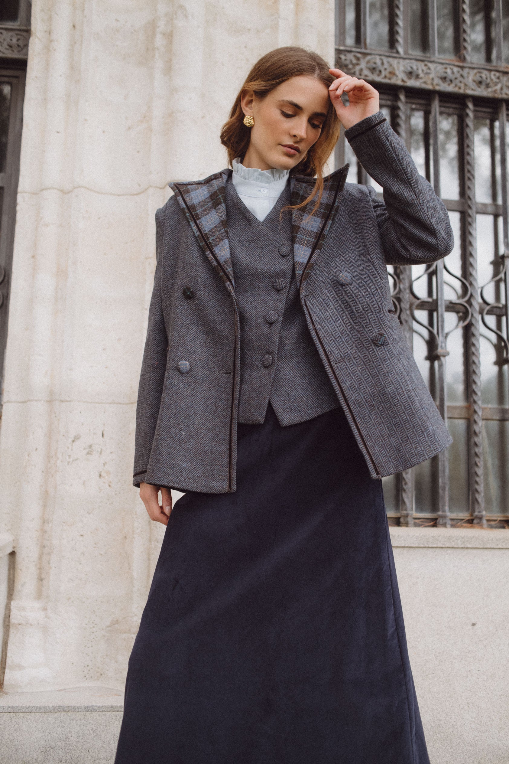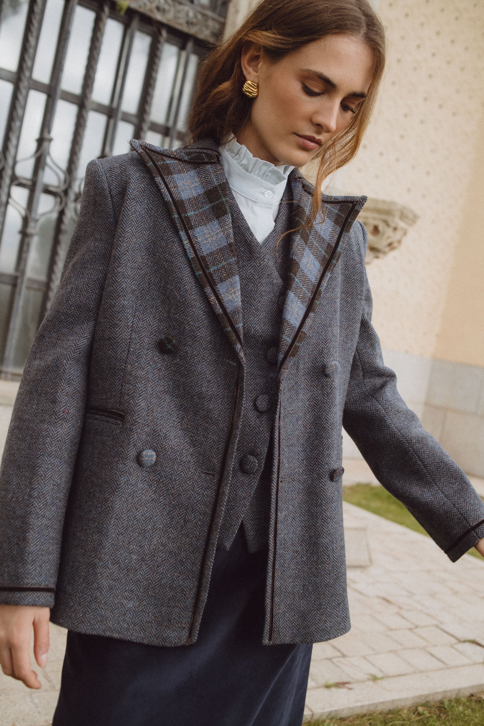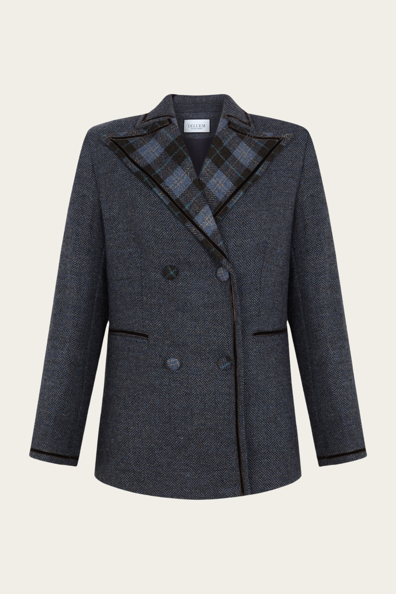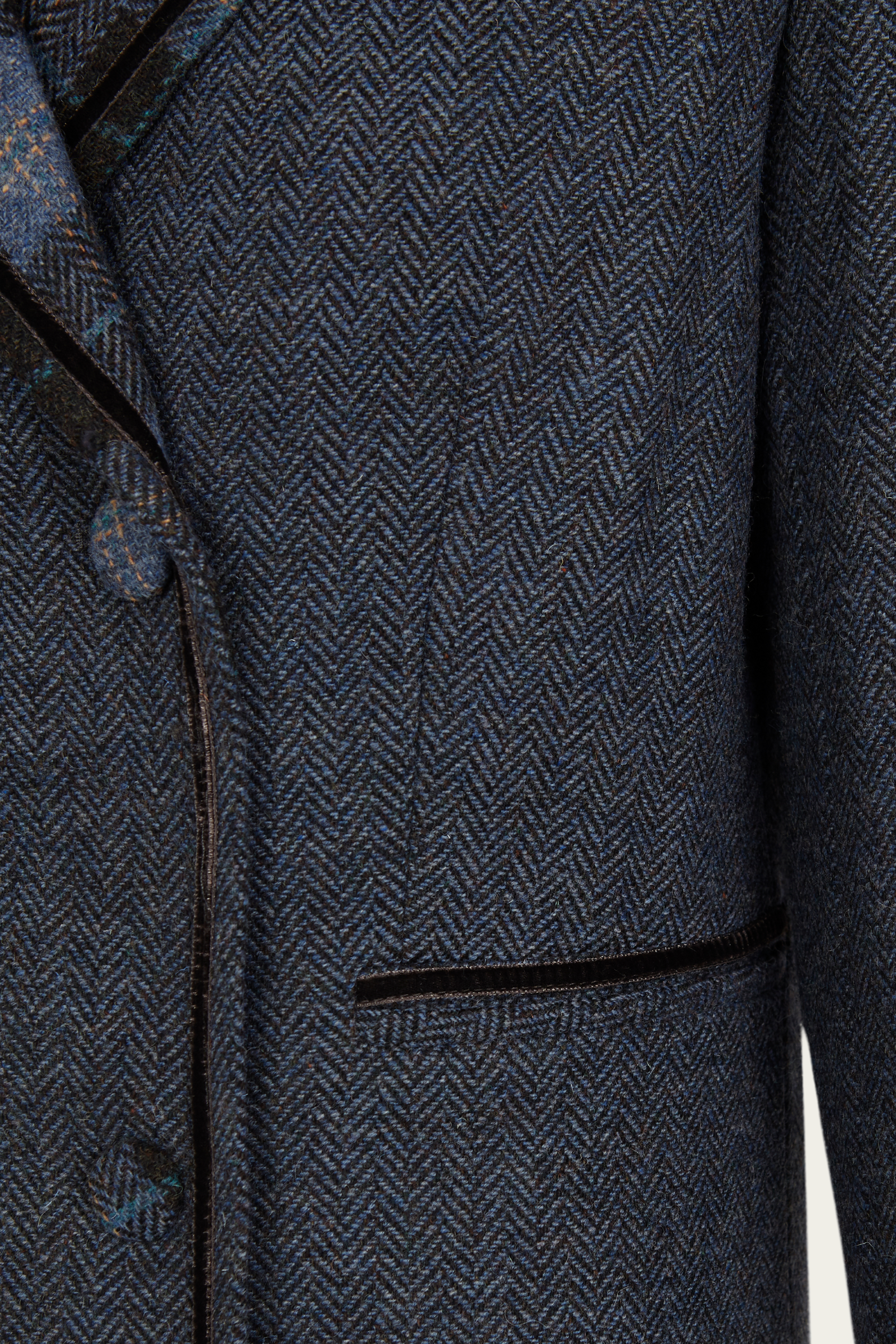 La combinación de estampados que nos transmite nuestra chaqueta Louis aunan lo clásico con lo contemporáneo. El contraste que encontramos en la solapa con la lana en espiga nos aporta ese toque único que buscamos en cada una de nuestras prendas.
