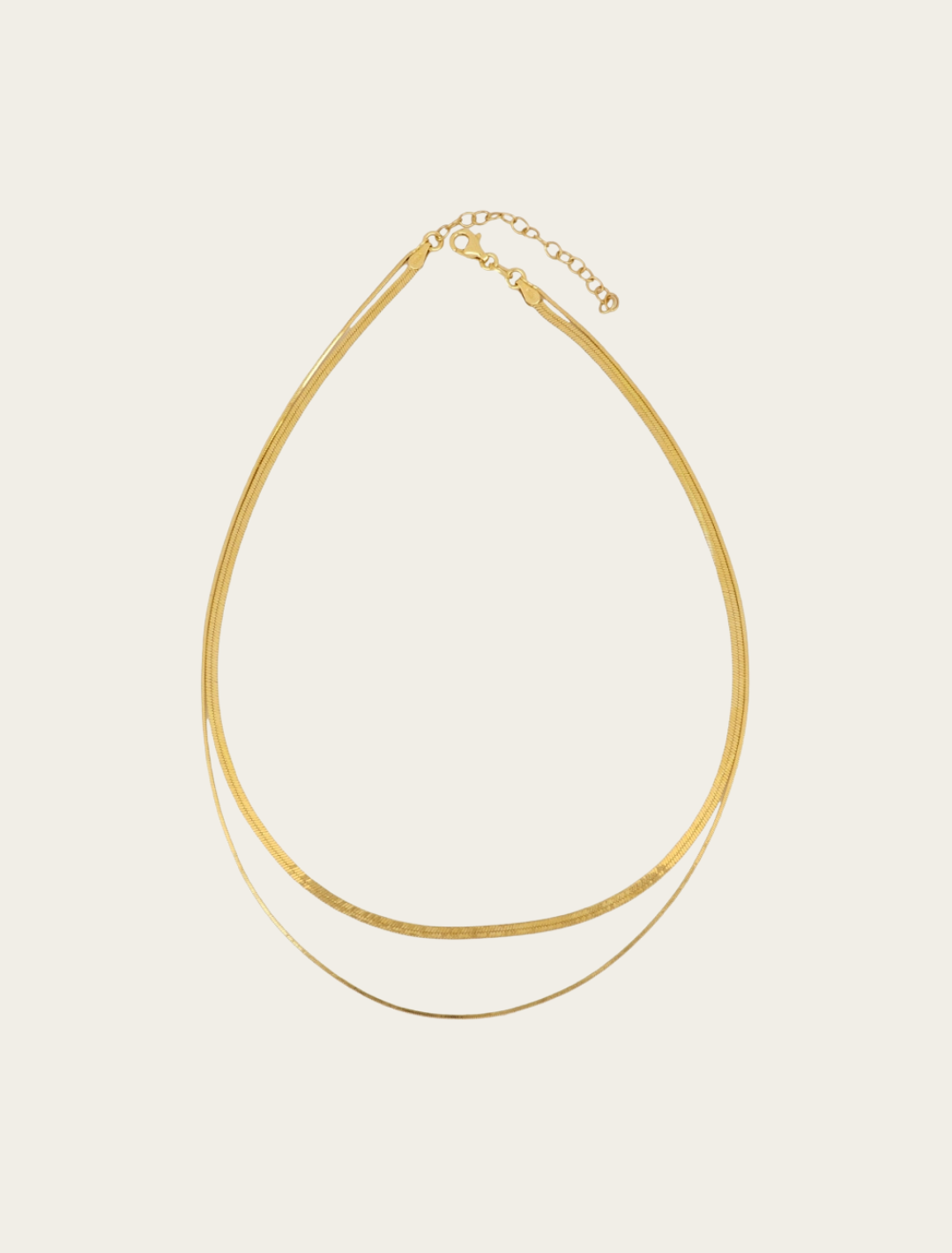 Gargantilla doble de plata de primera ley rodiada y plata 925 bañada en oro.