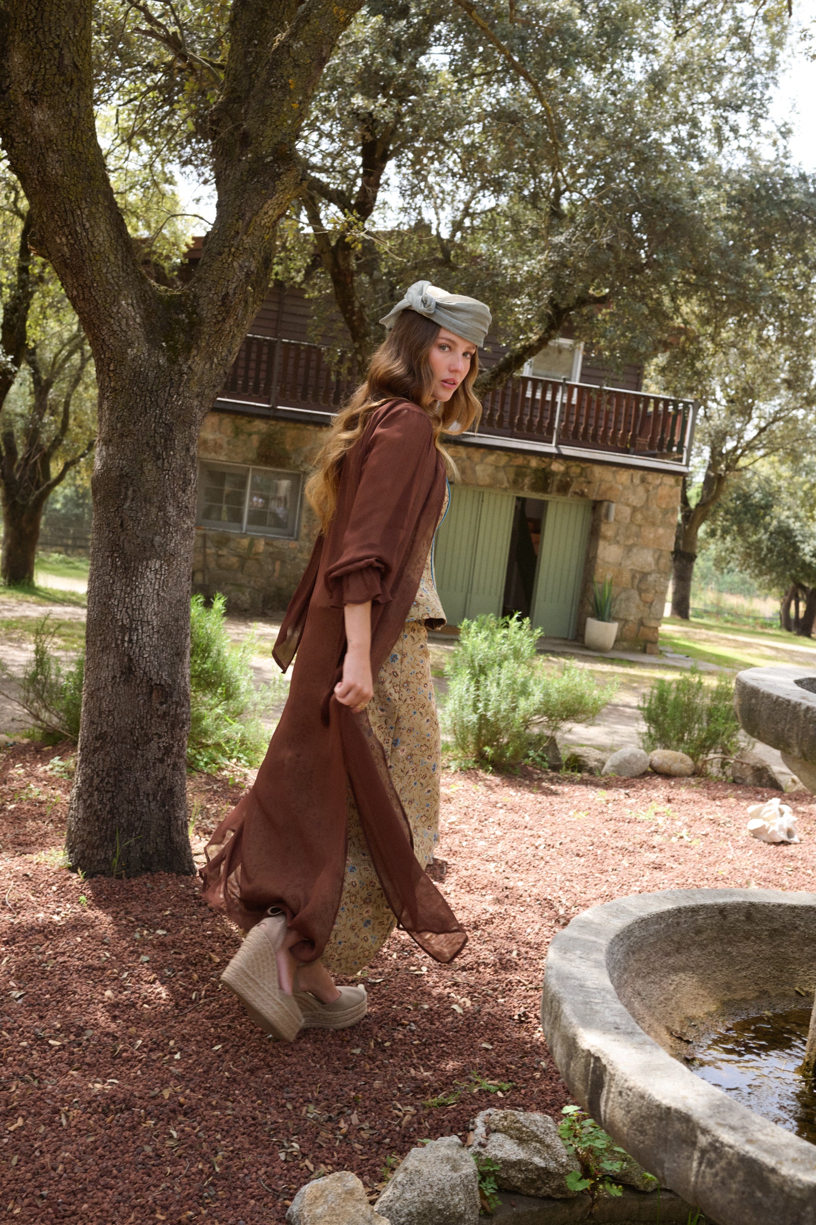 Nuestra falda más icónica ahora en un sofisticado tejido con estampado de inspiración tapicería en tonos dorado, marrón y azul. El patrón favorito de las clientas Deluem, su diseño favorece todas las siluetas y se adapta con facilidad a distintos estilos.