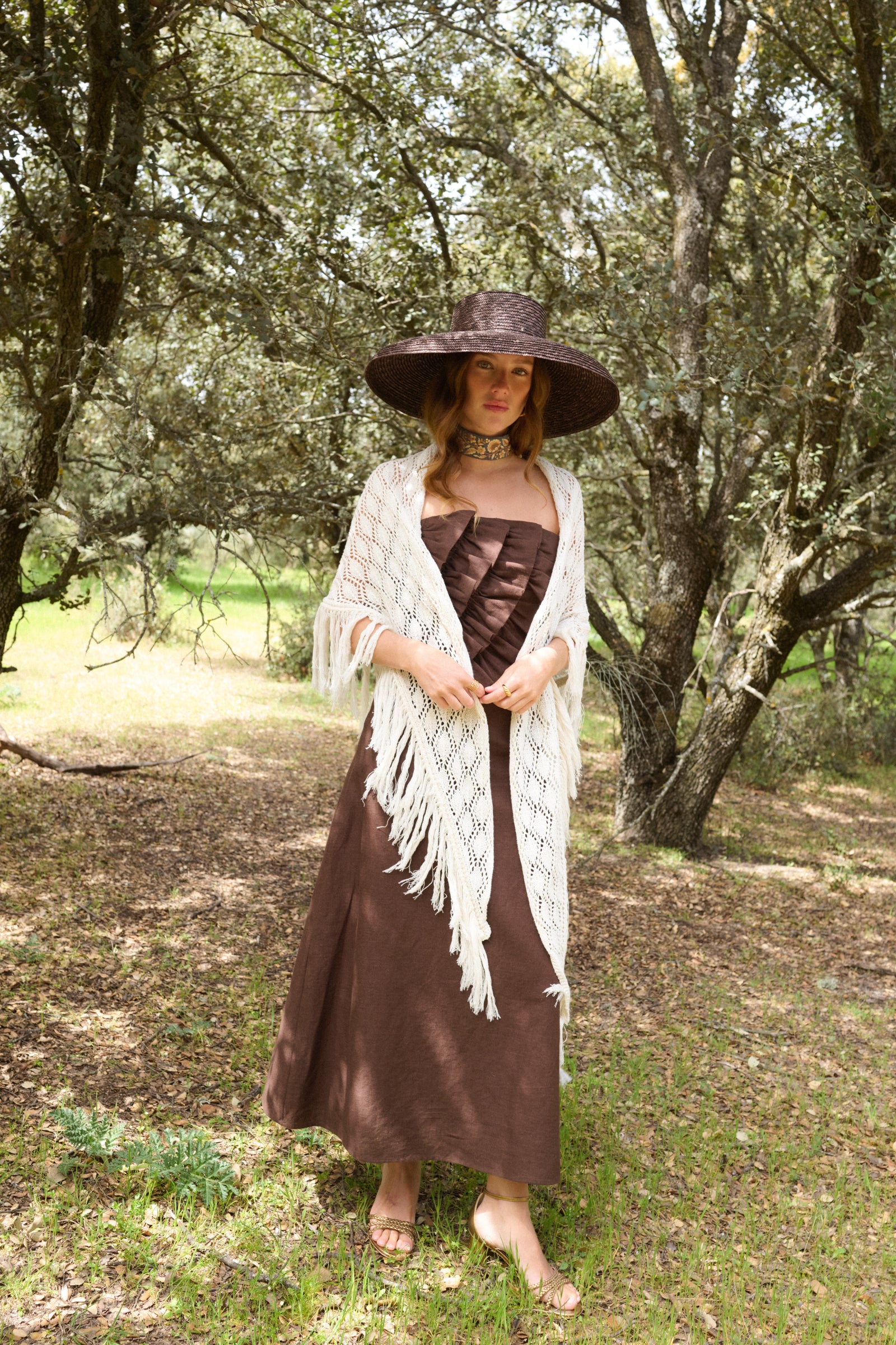 Nuestra falda más icónica ahora en elegante tejido de lino marrón chocolate. El patrón favorito de las clientas Deluem, su diseño favorece todas las siluetas y se adapta con facilidad a distintos estilos.