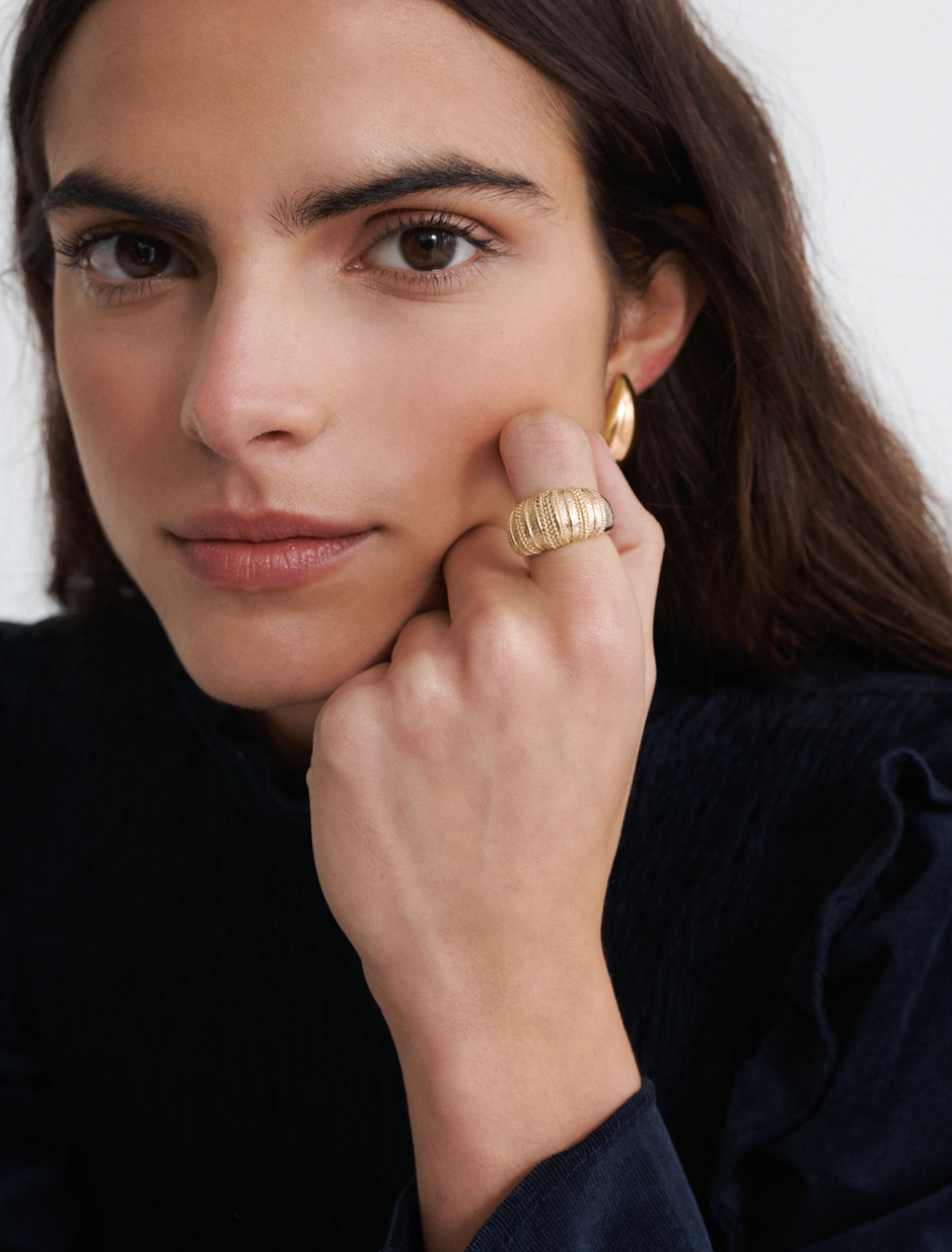 Anillo laminado con cinco micras de oro de 18K sobre base de latón con tallado en forma de espiga