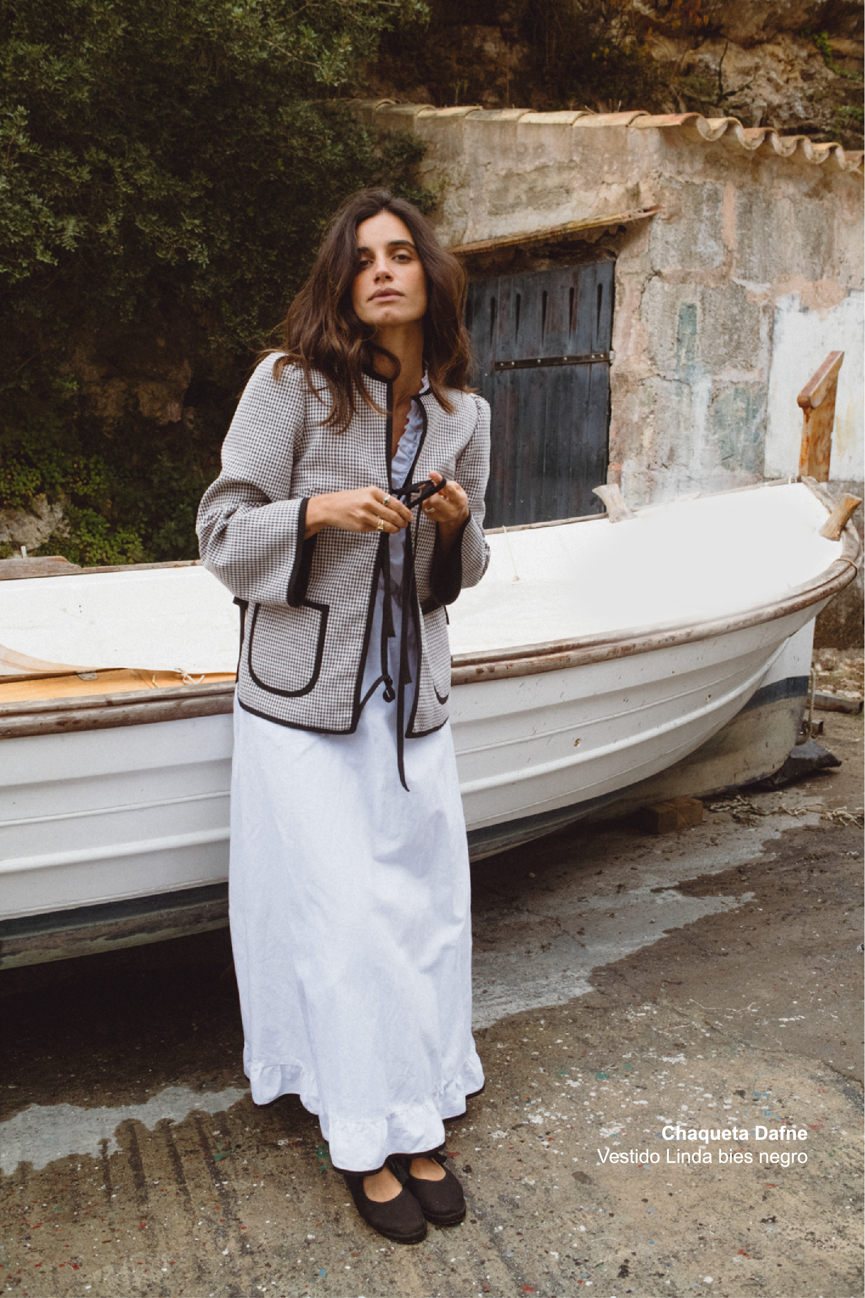 Elegancia atemporal en el vestido Linda, perfecto para las noches de verano. Inspirado en la costa mallorquina, este vestido blanco de lino es una pieza delicada y cuidadosamente confeccionada para ocasiones especiales. Su tejido ligero y suave te envuelve en comodidad mientras te sumerges en los eternos días de verano