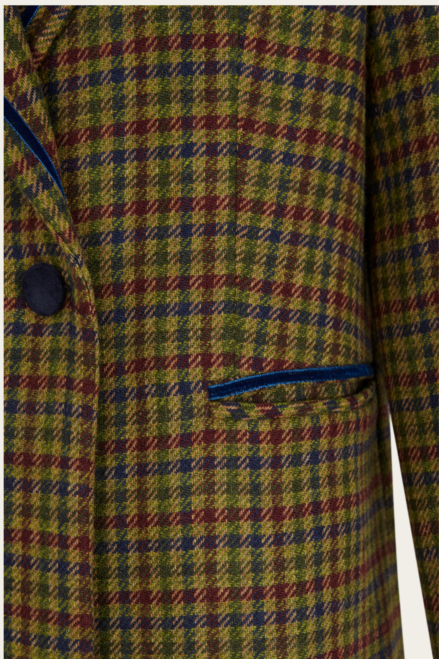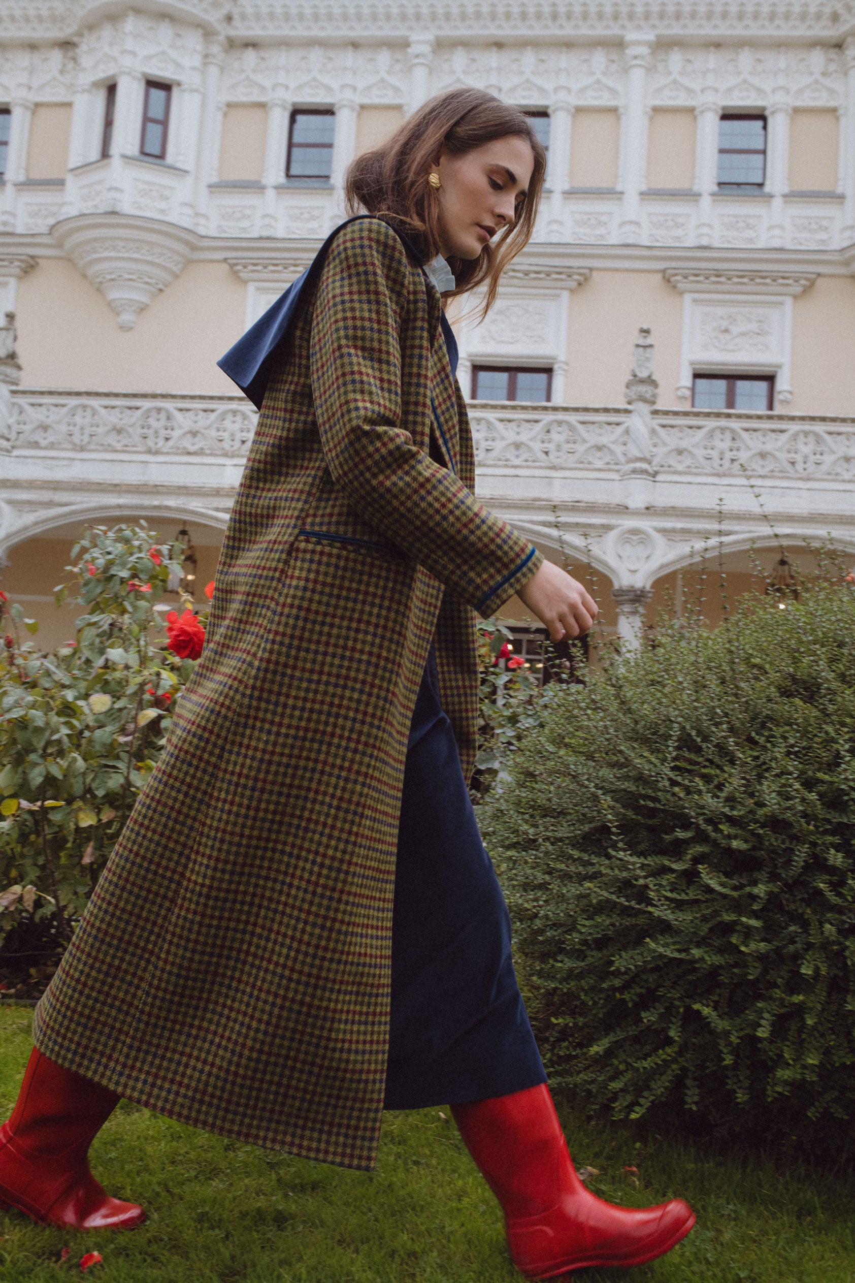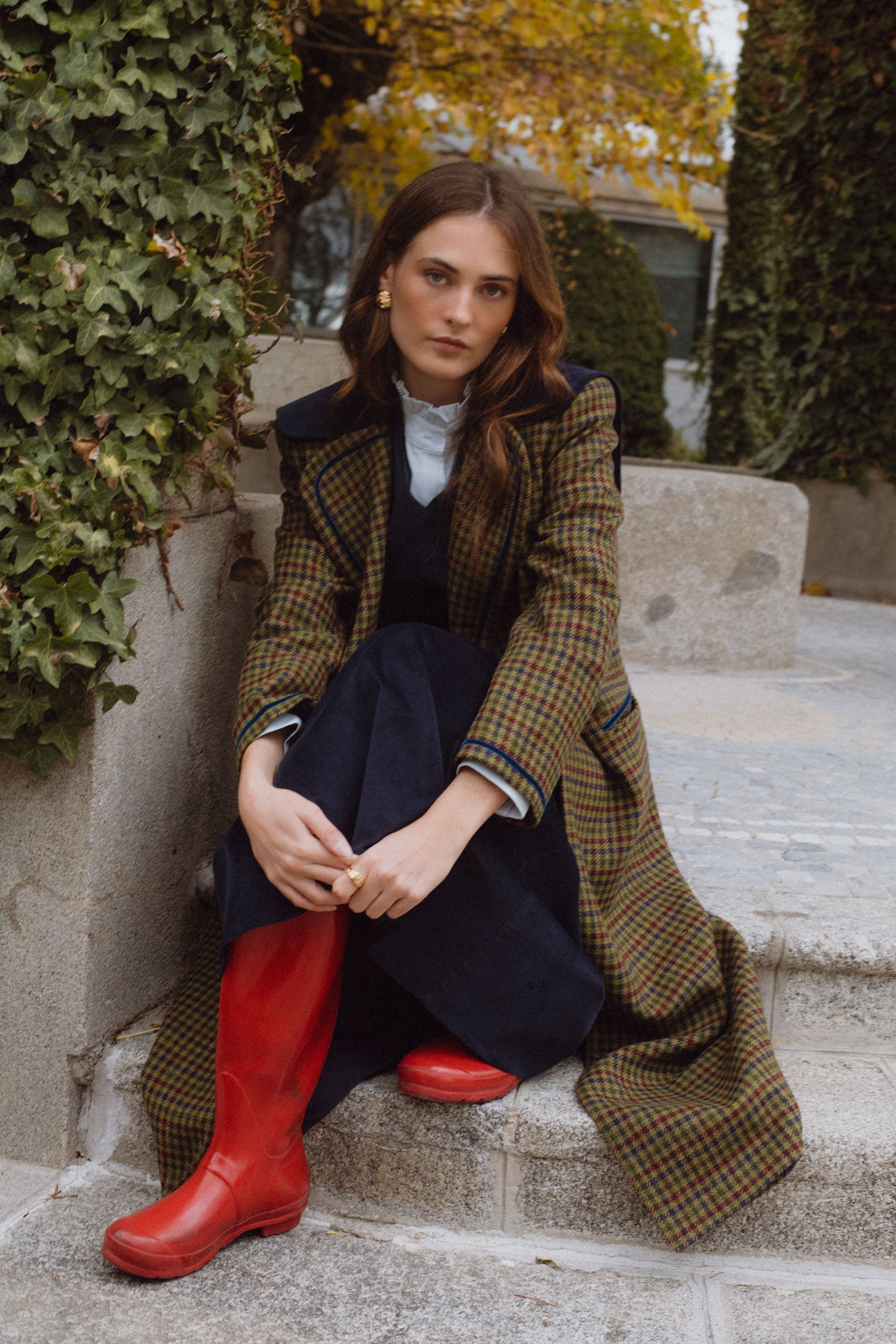 El abrigo Gabriella rinde homenaje a la elegancia de antaño con su icónico tejido de pata de gallo, que evoca sofisticación y una sutil nostalgia. Esta prenda única combina tradición y modernidad, con detalles que cuentan una historia de dedicación artesanal y atención al detalle.