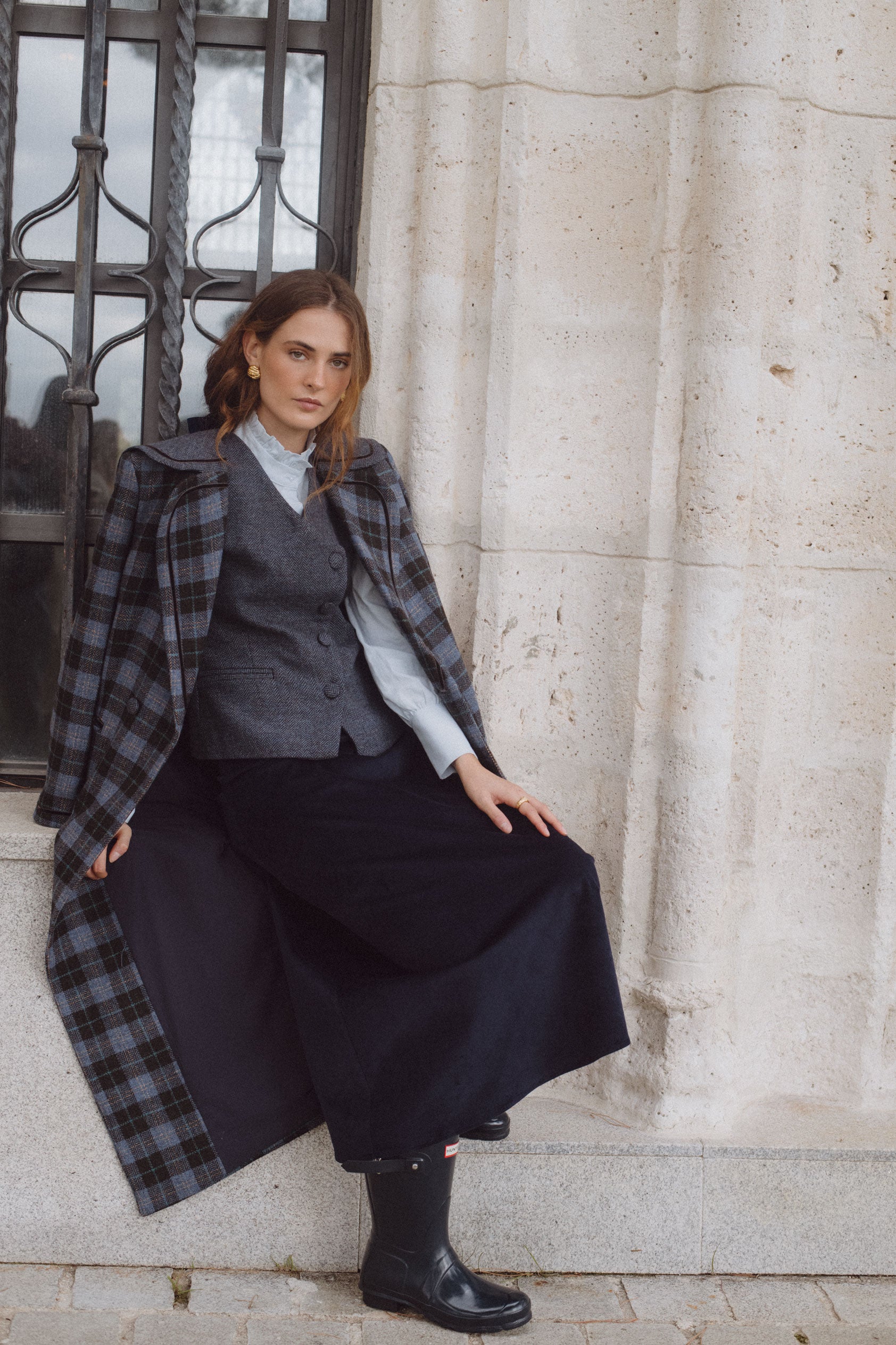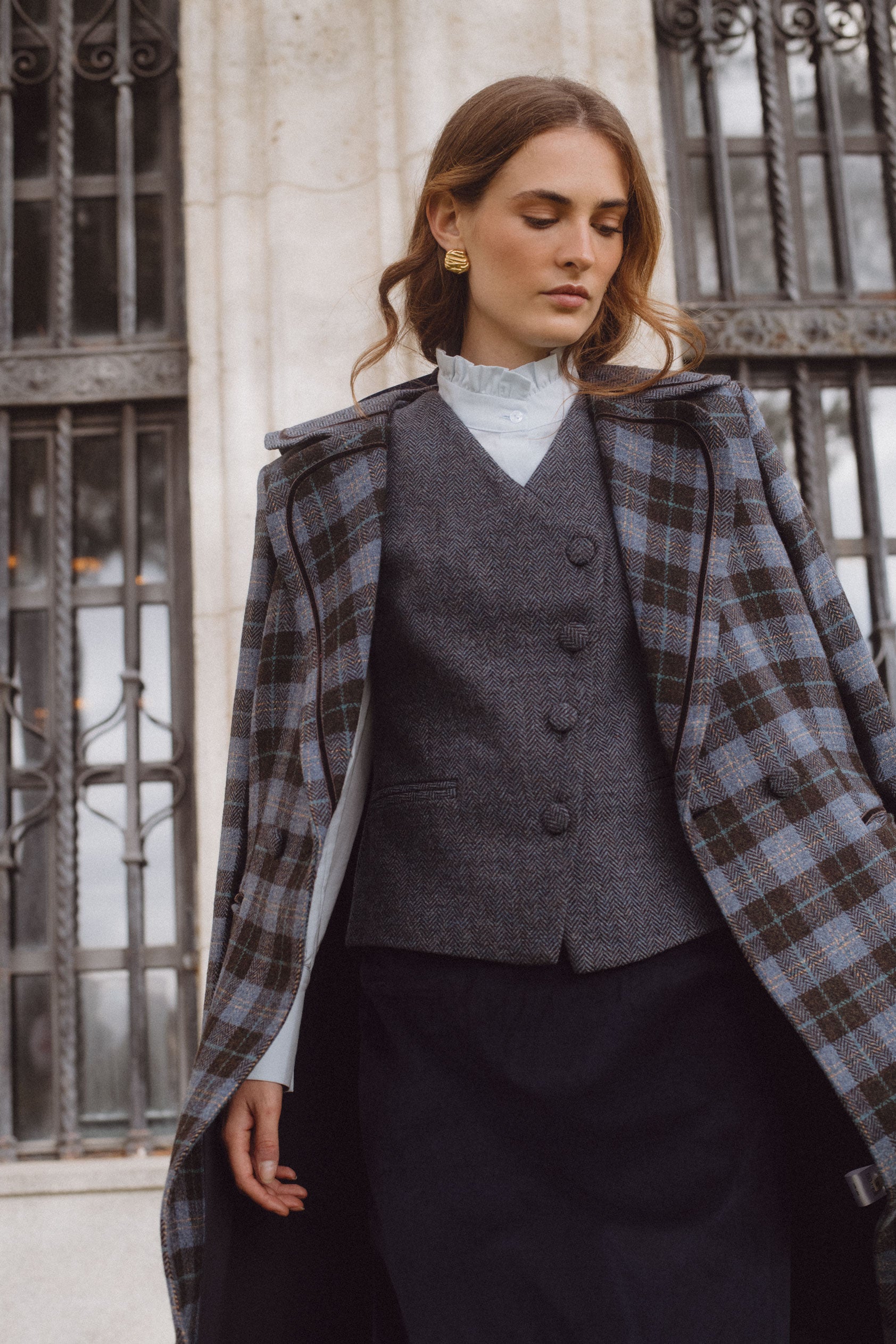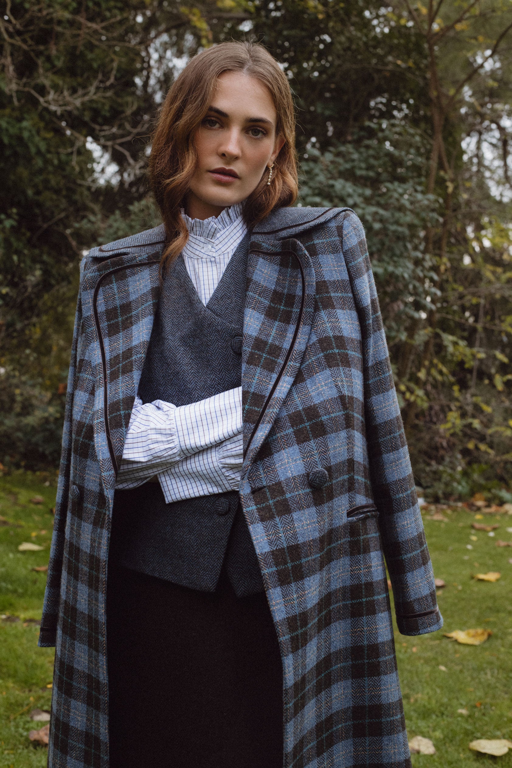 El abrigo Louis combina tradición e innovación en una pieza única que destaca por su diseño excepcional y su calidad incomparable. Inspirado en los paisajes azules y en la calidez natural de la lana.