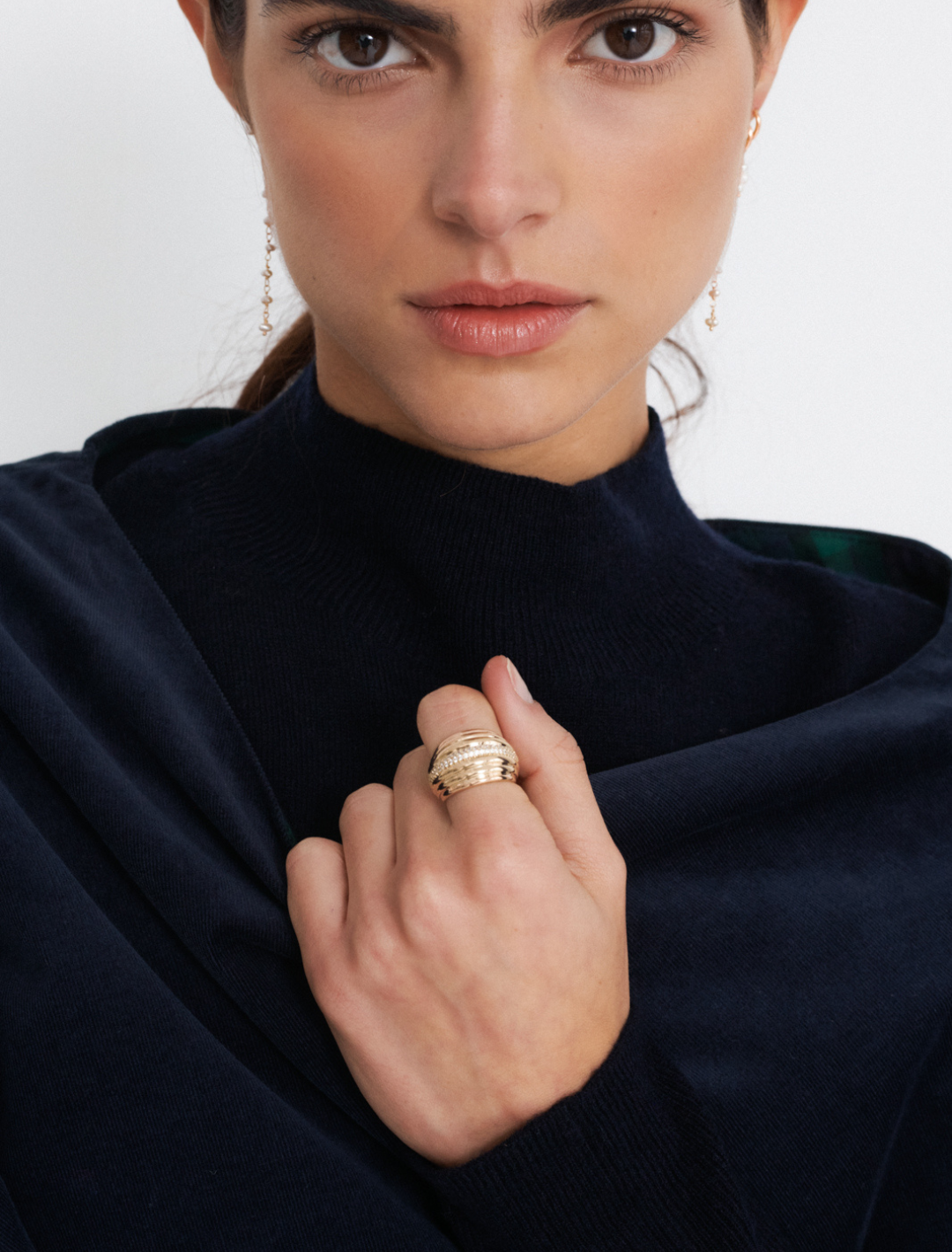 Anillo laminado con cinco micras de oro de 18K sobre base de latón con hilera de circonitas blancas