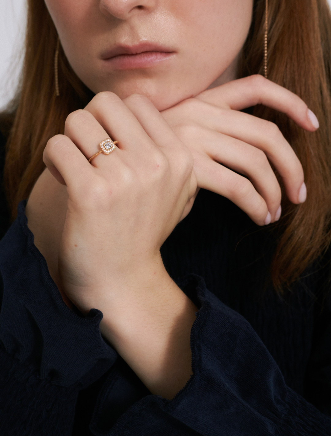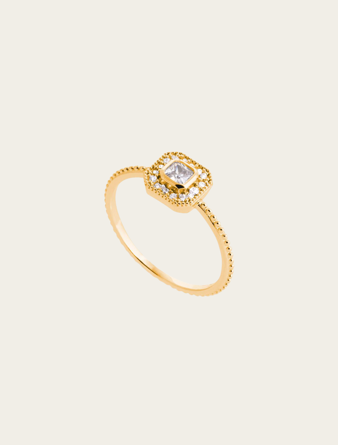 Anillo laminado con cinco micras de oro de 18K sobre base de latón con circonitas blancas
