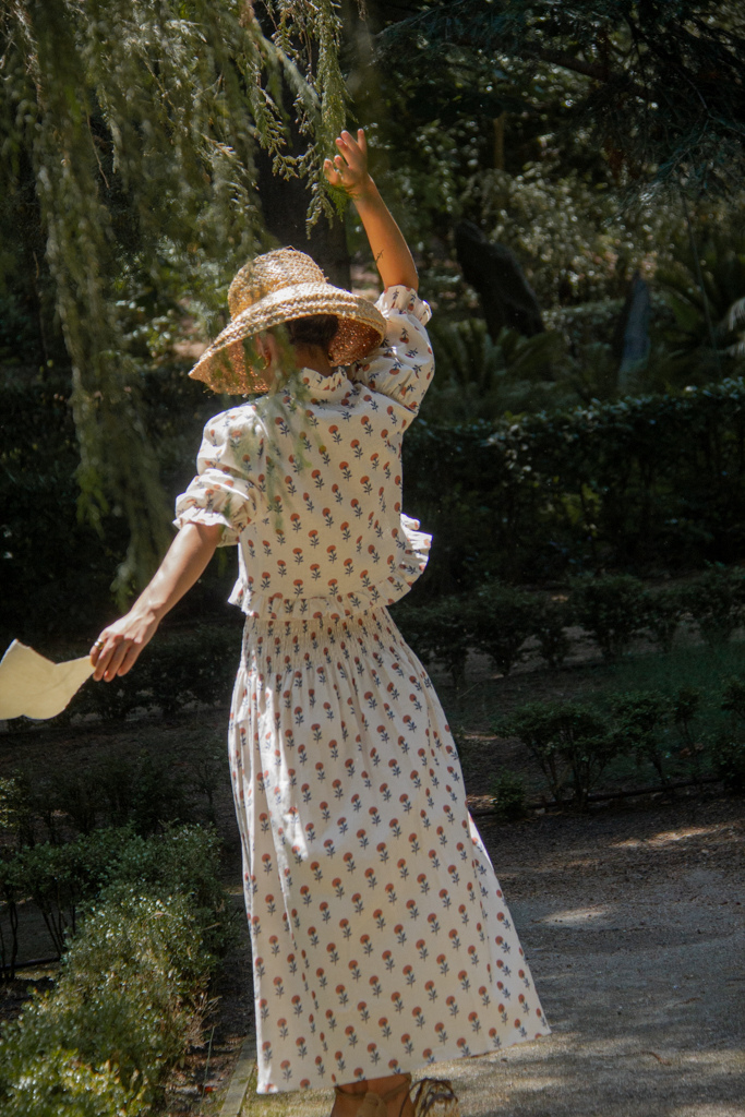 The English Summer es una colección inspirada en los veranos edwardianos, en los paseos por invernaderos olvidados y en vestidos blancos con volantes suaves.