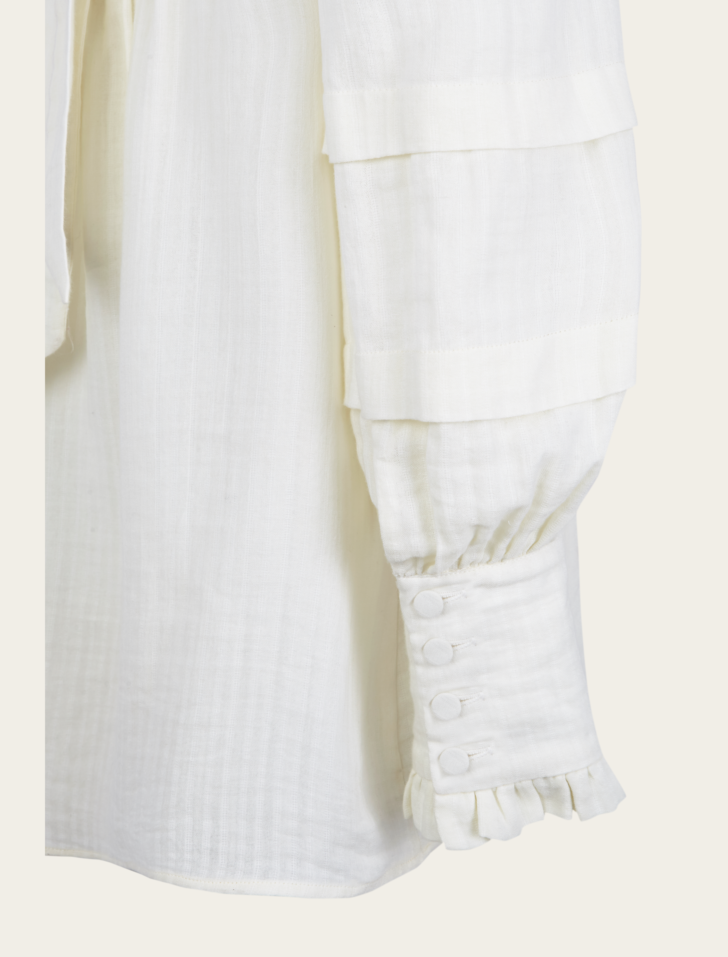 Presenta 4 botones forrados a mano de forma artesanal en sus puños con un pequeño volante en el extremo. Su lazada en la espalda hará que quieras lucir esta prenda todo el verano