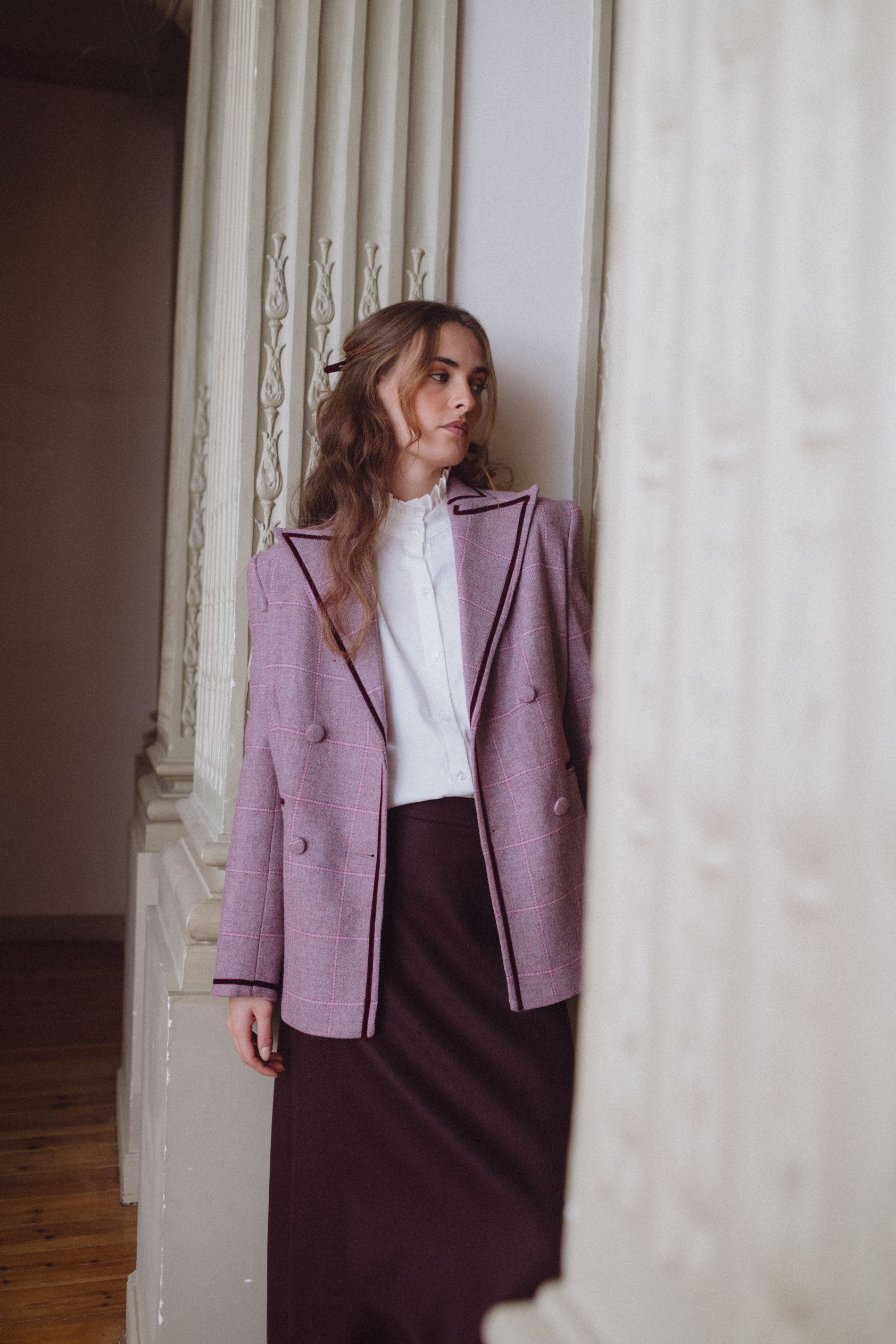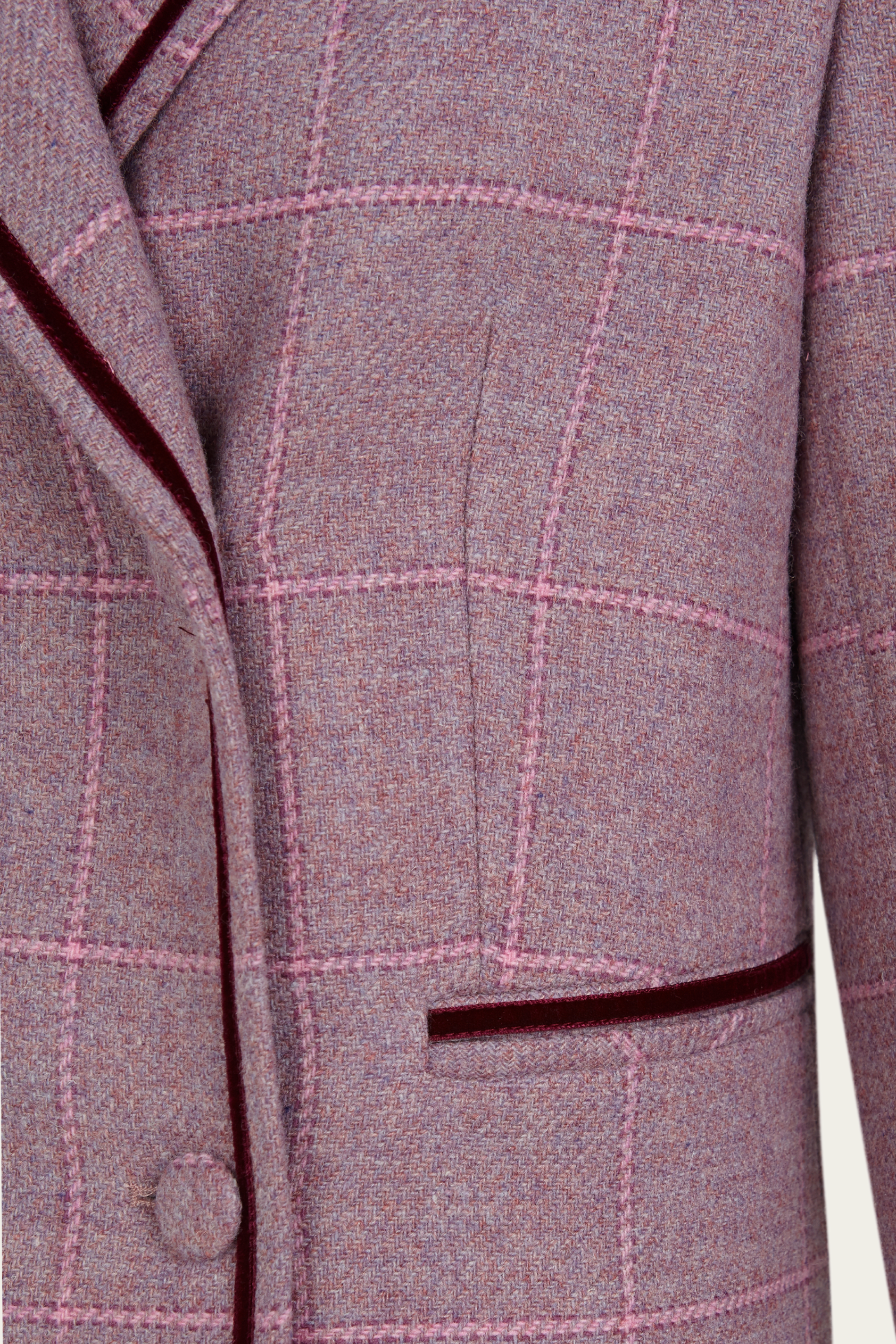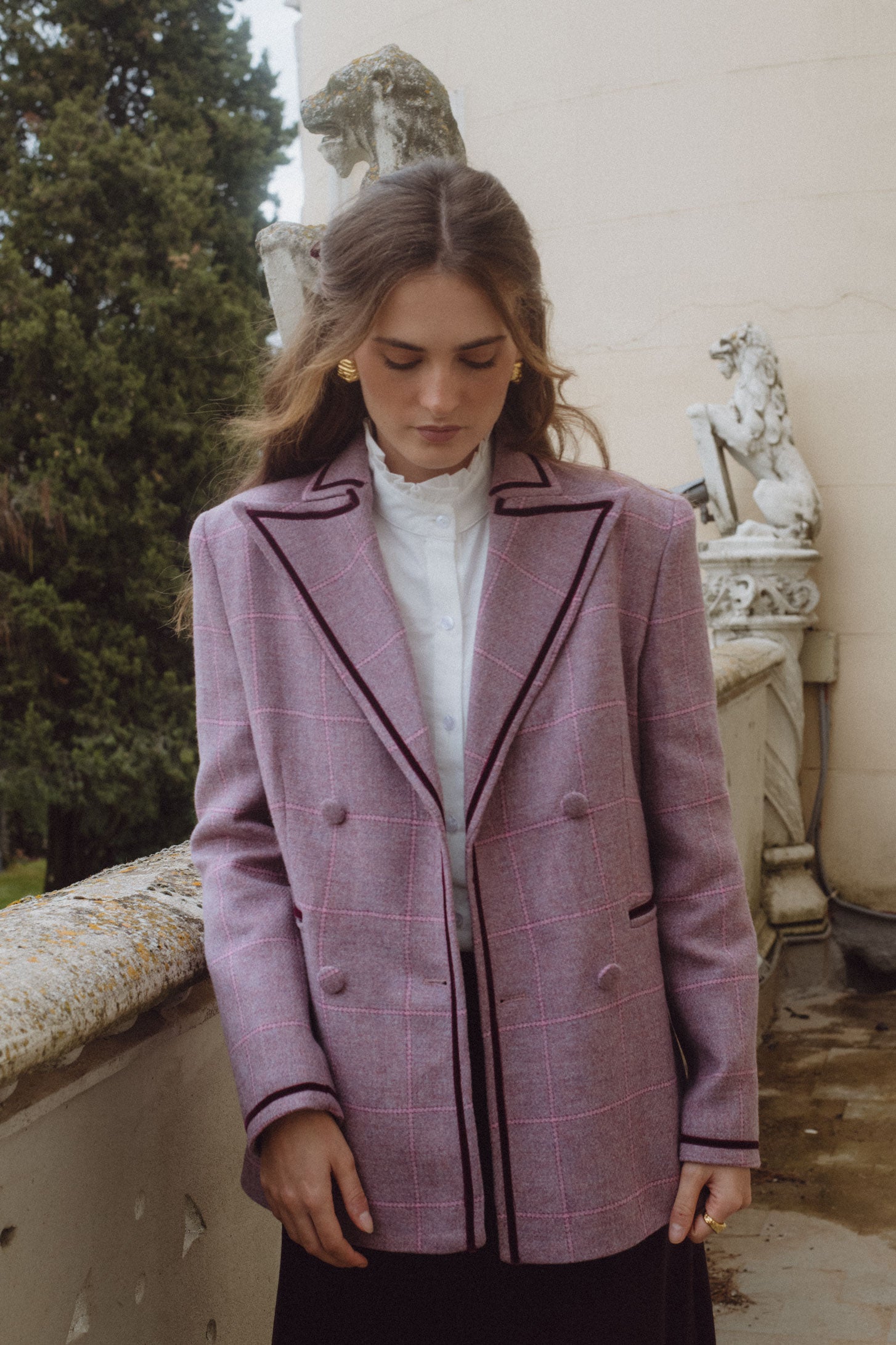Nuestra chaqueta James ribeteada en terciopelo esté diseñada para aquellas que buscan un toque atrevido sin perder la elegancia. Su estampado de cuadros combinado con el toque de terciopelo en cuello , manga y puños hacen el balance perfecto entre elegancia y originalidad.
