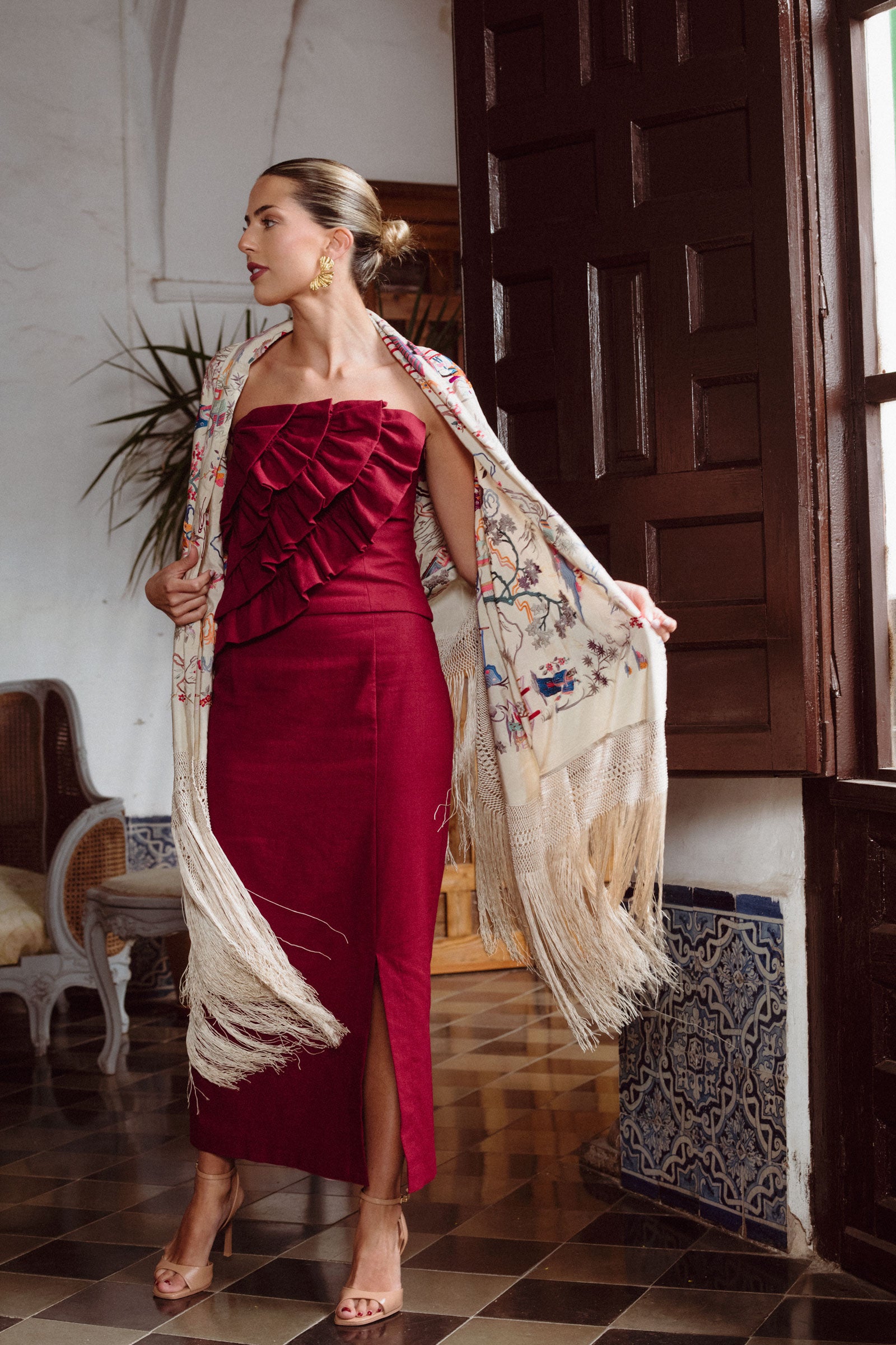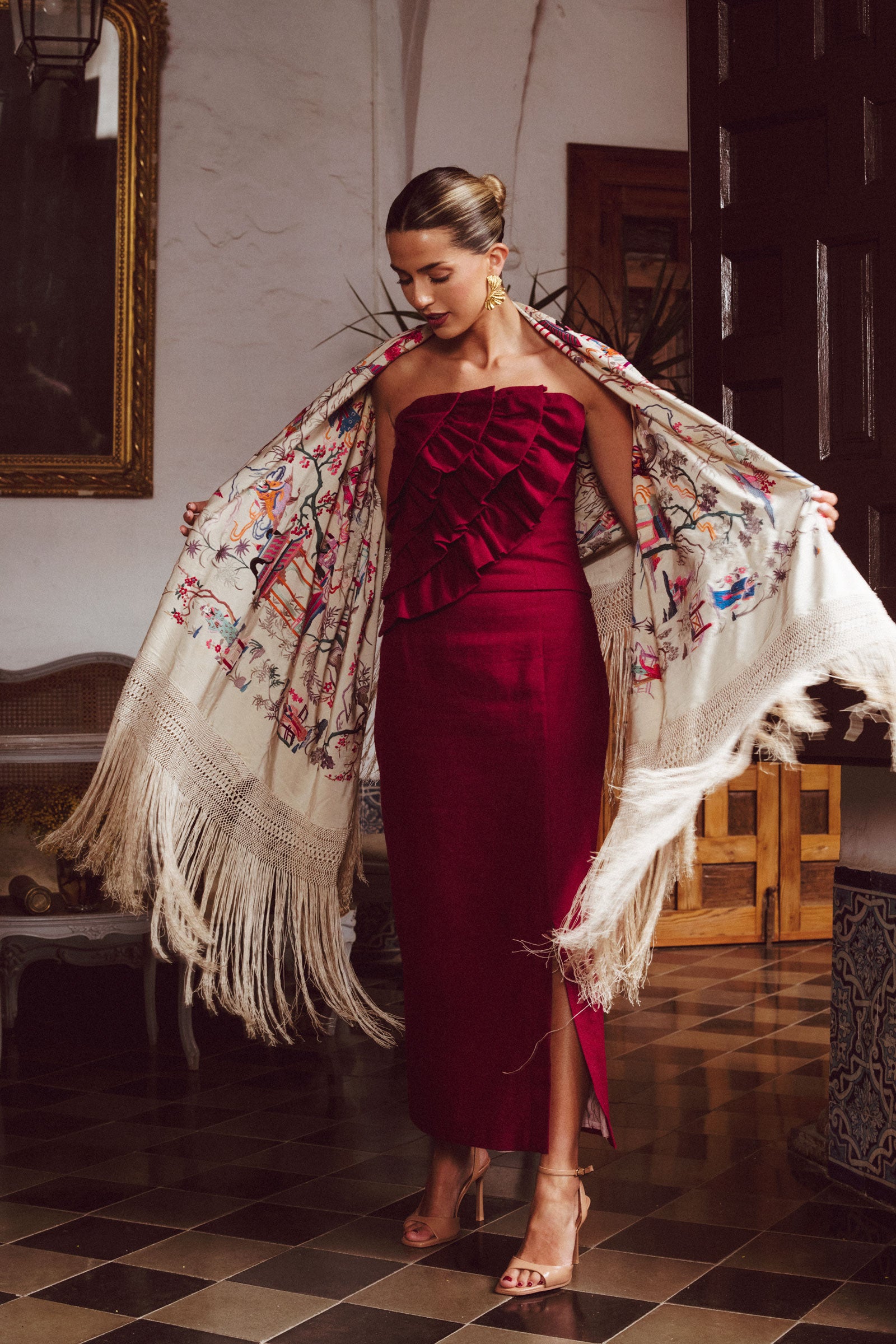 Esta colección nace entre sus muros, entre columnas salomónicas y zócalos de cerámica, entre los ecos de historias familiares que aún resuenan en cada estancia. Diseñadas y confeccionadas con mucho detalle.