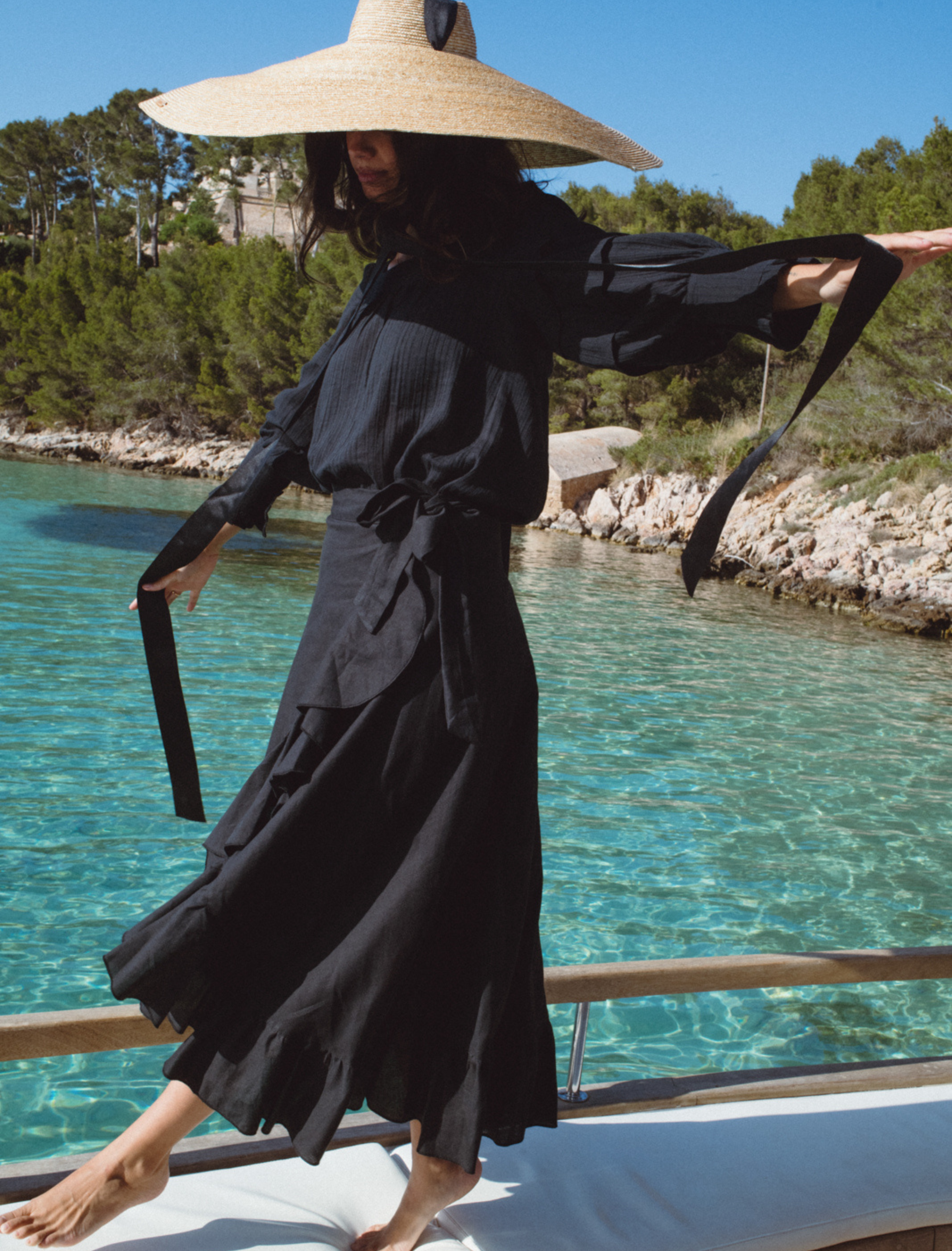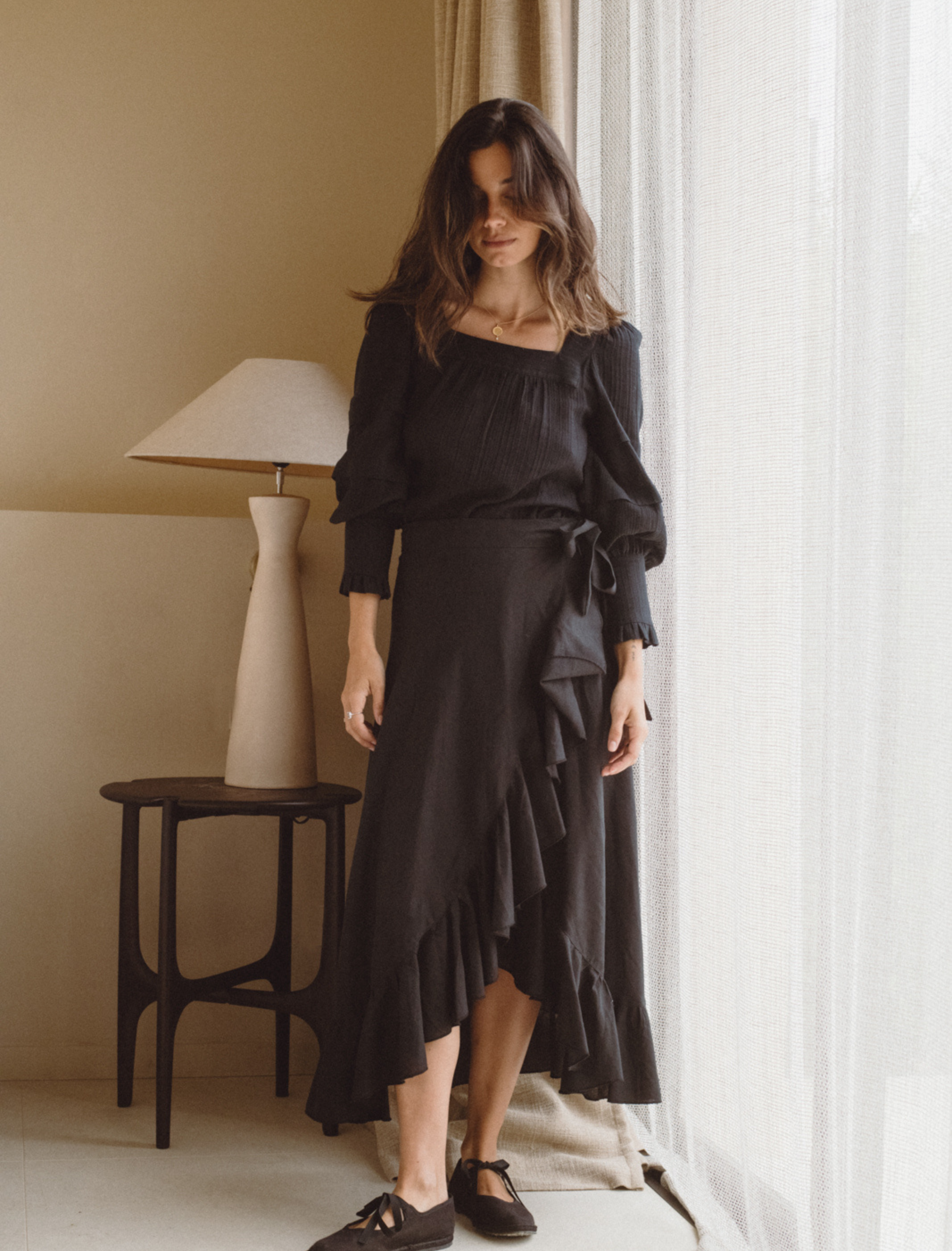 La Falda Voyager es una prenda de estilo fluido y femenino. Confeccionada en un suave tejido, se convertirá en un fondo de armario para cualquier look. La falda cuenta con un diseño favorecedor que se ajusta a la cintura con lazada. Presenta dos ojales para poder adaptarse bien a cada figura.