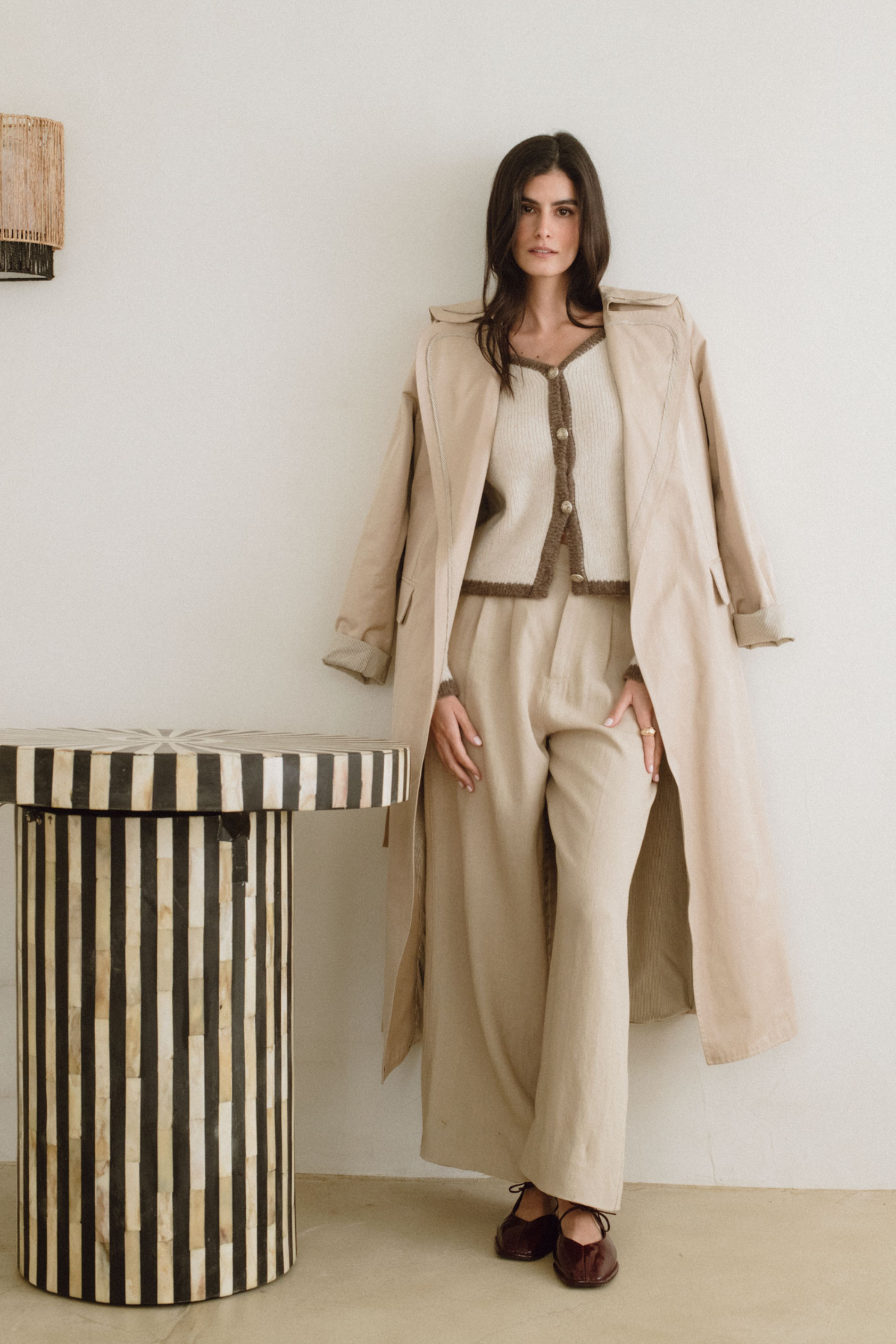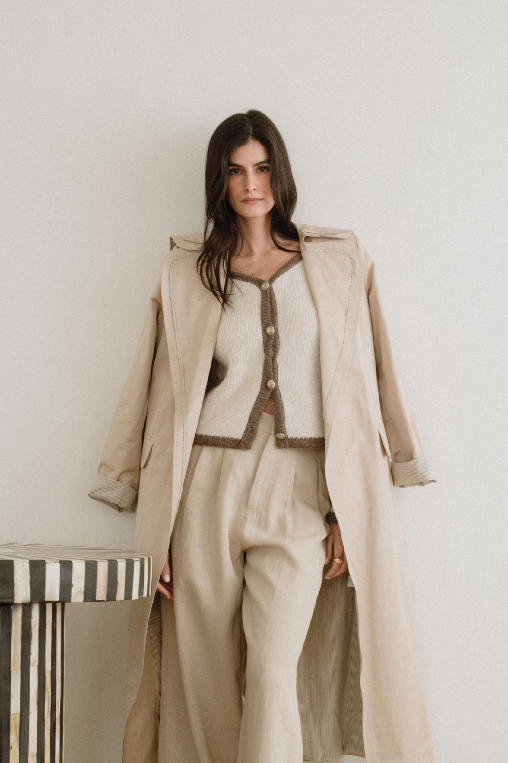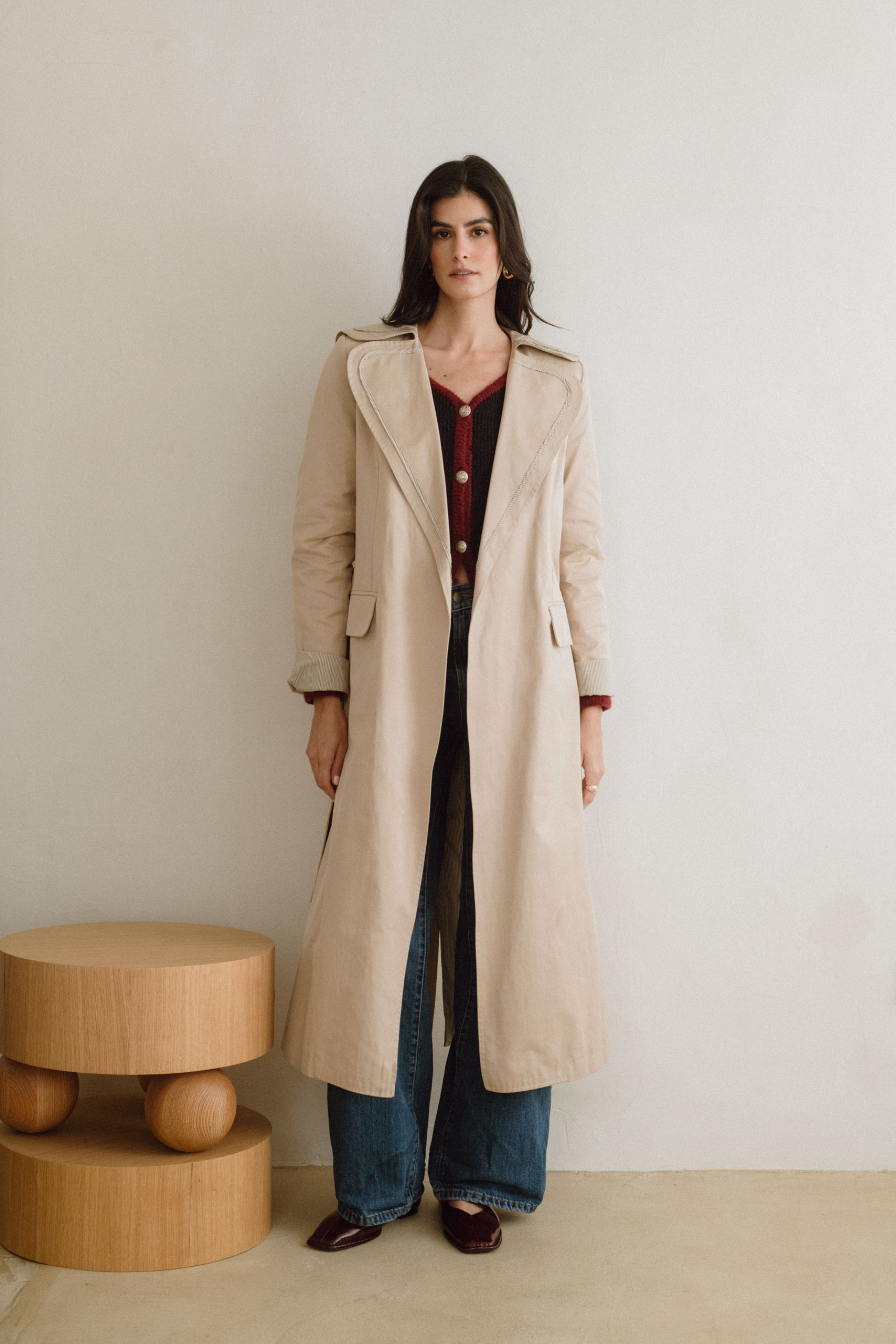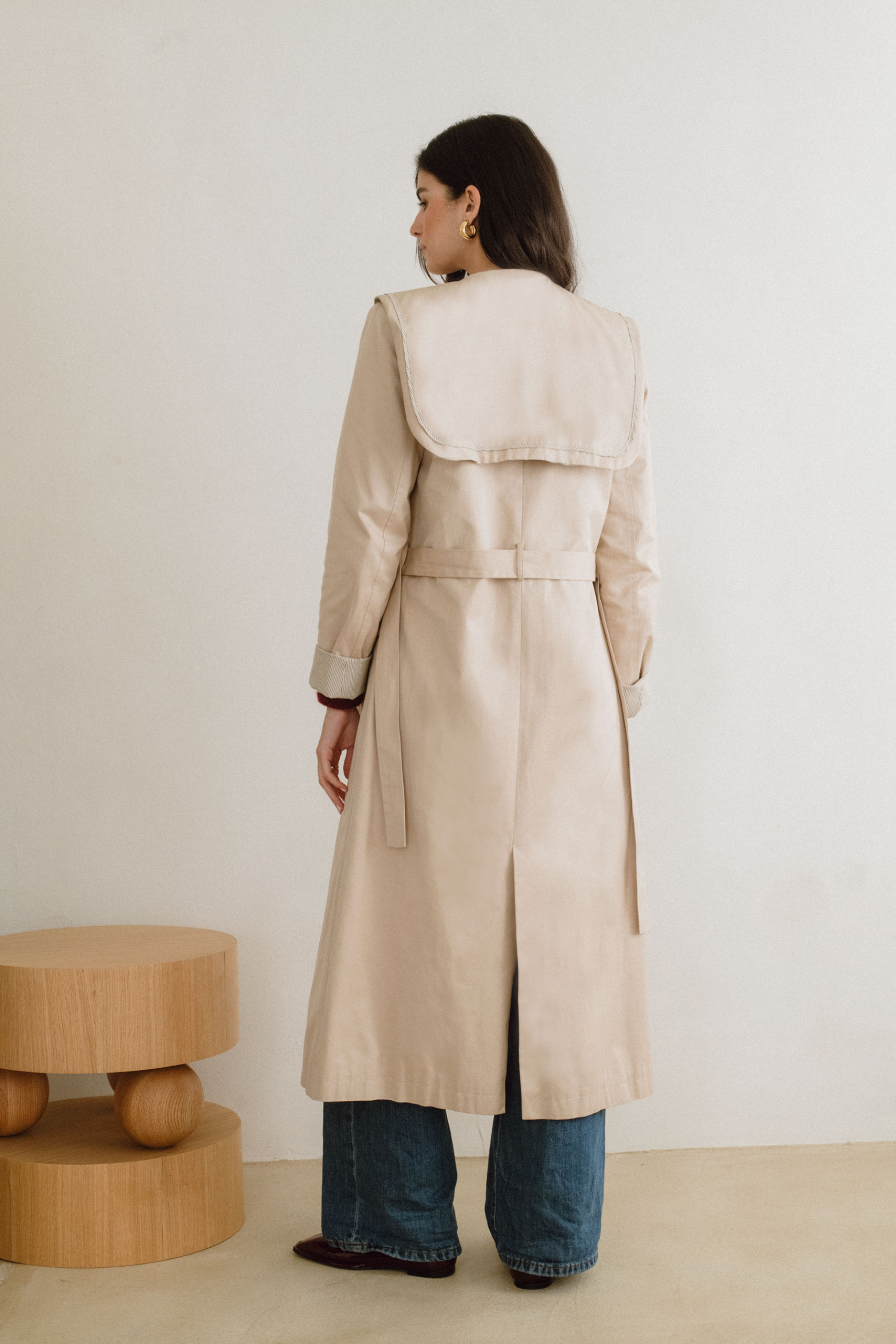 La Gabardina Scott, preparada para formar parte de tu armario generacional. Su tono crudo, cálido y versátil, es un homenaje a la sencillez sofisticada. El forro interior y el vivo de la prenda en una raya marrón elegante aporta un detalle sutil exclusivo.