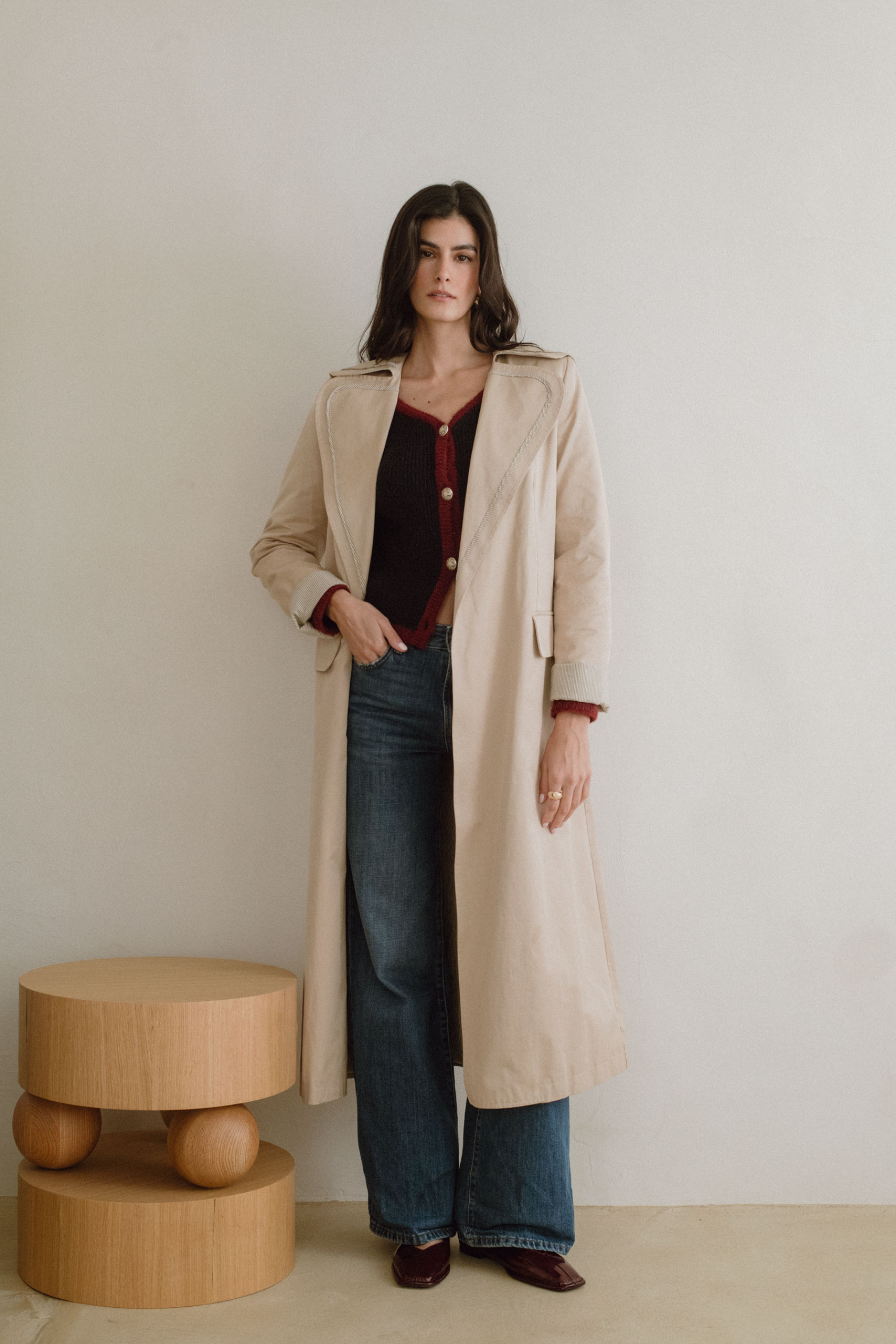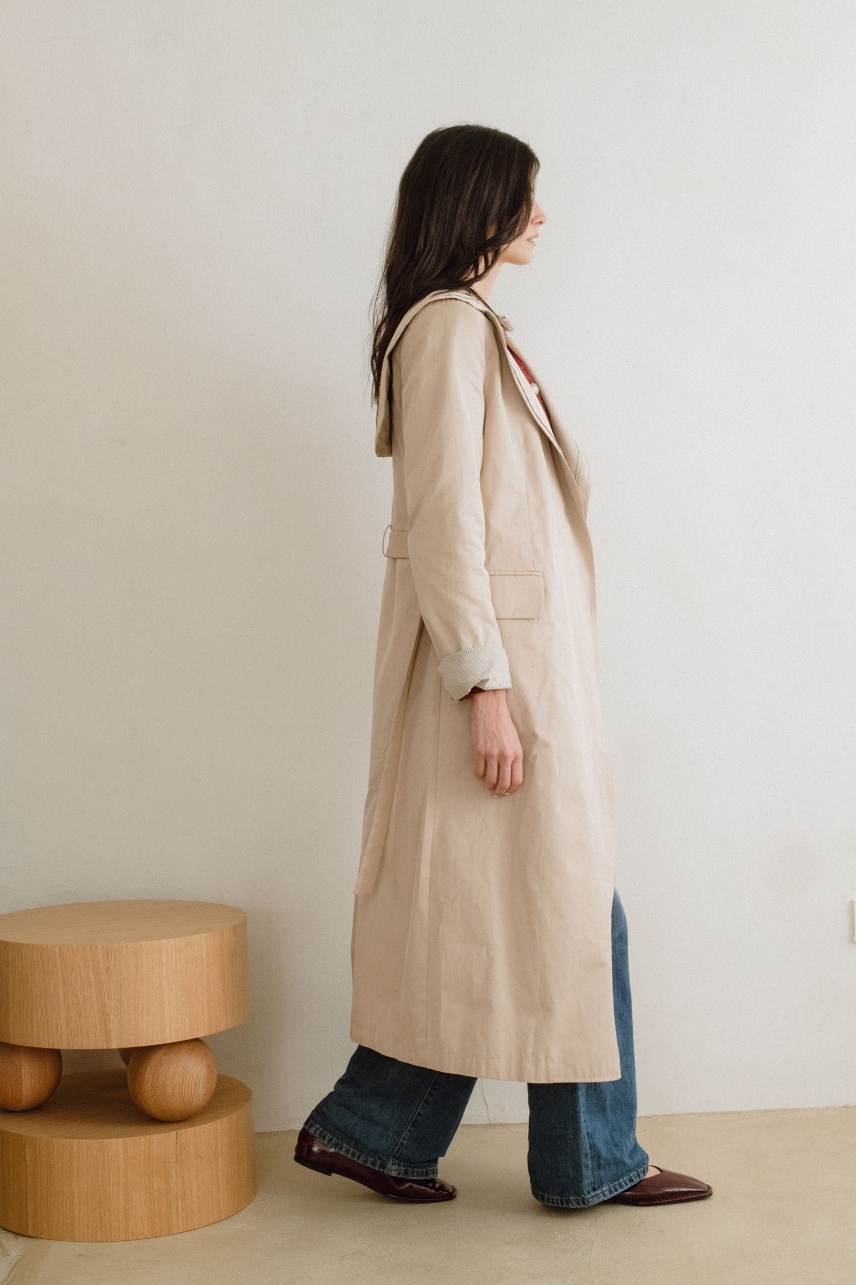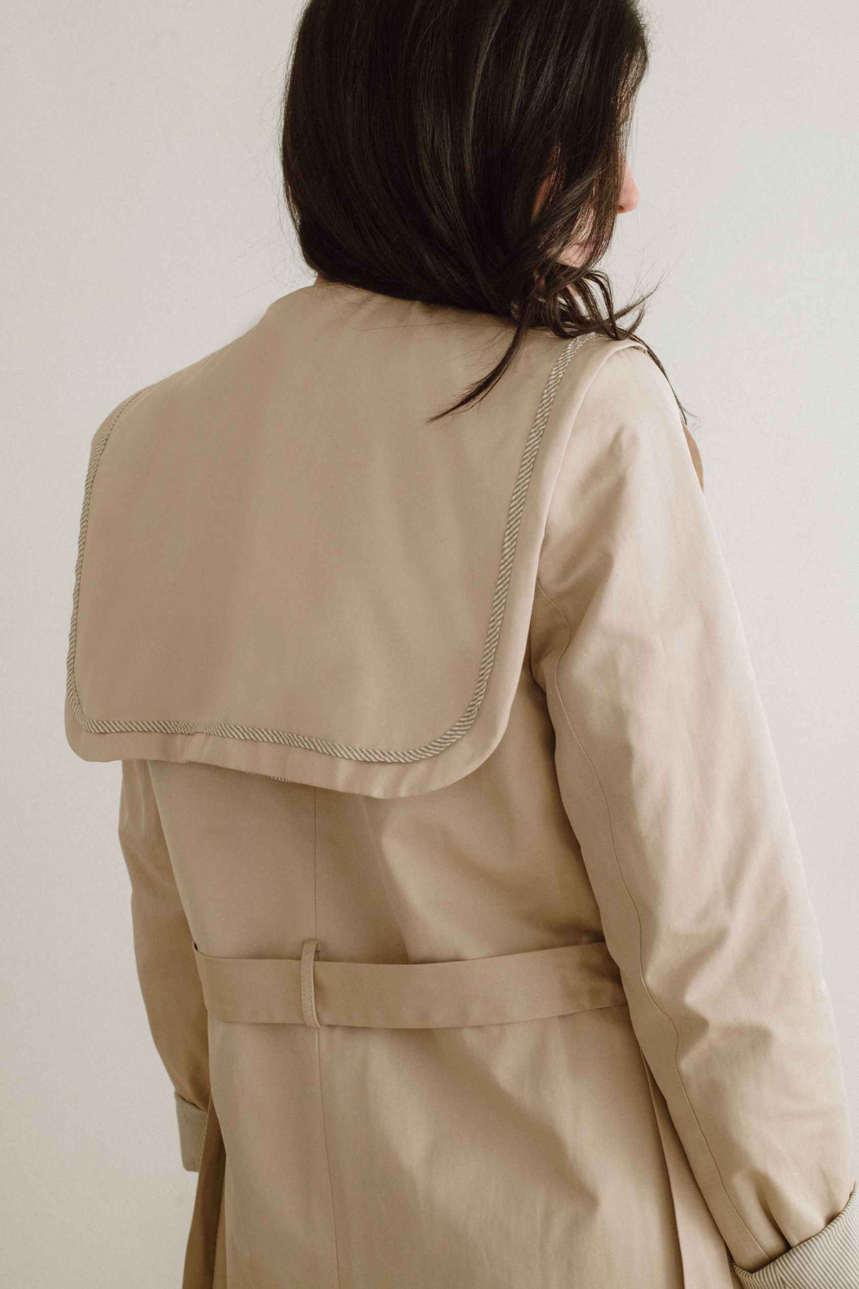 La Gabardina Scott, preparada para formar parte de tu armario generacional. Su tono crudo, cálido y versátil, es un homenaje a la sencillez sofisticada. El forro interior y el vivo de la prenda en una raya marrón elegante aporta un detalle sutil exclusivo.