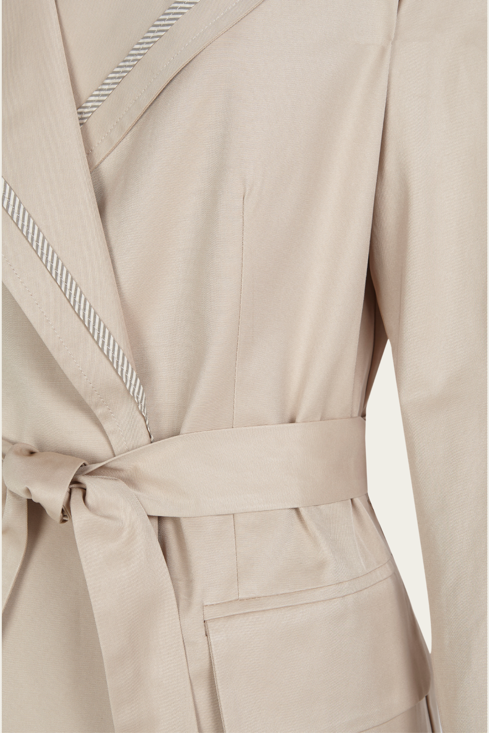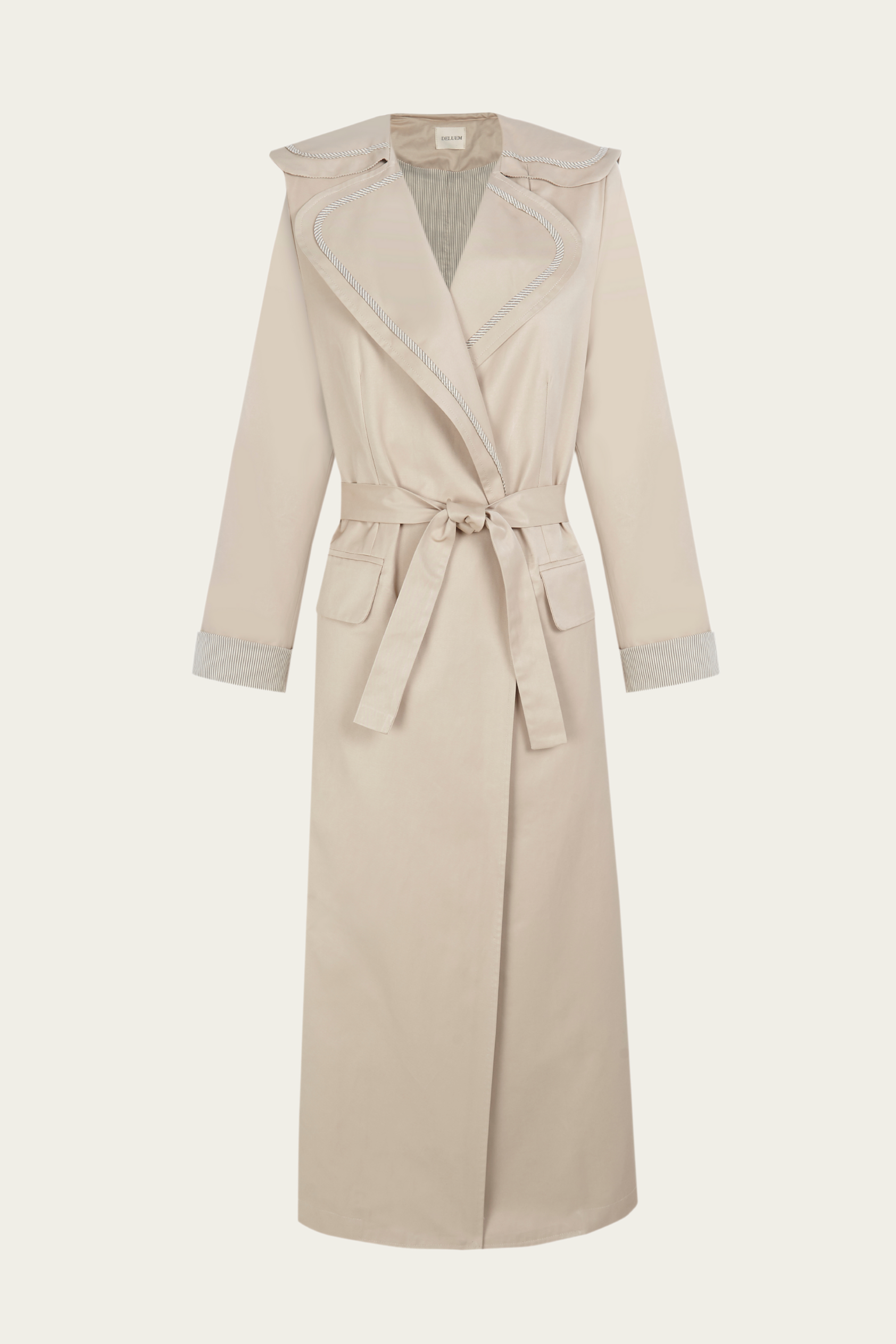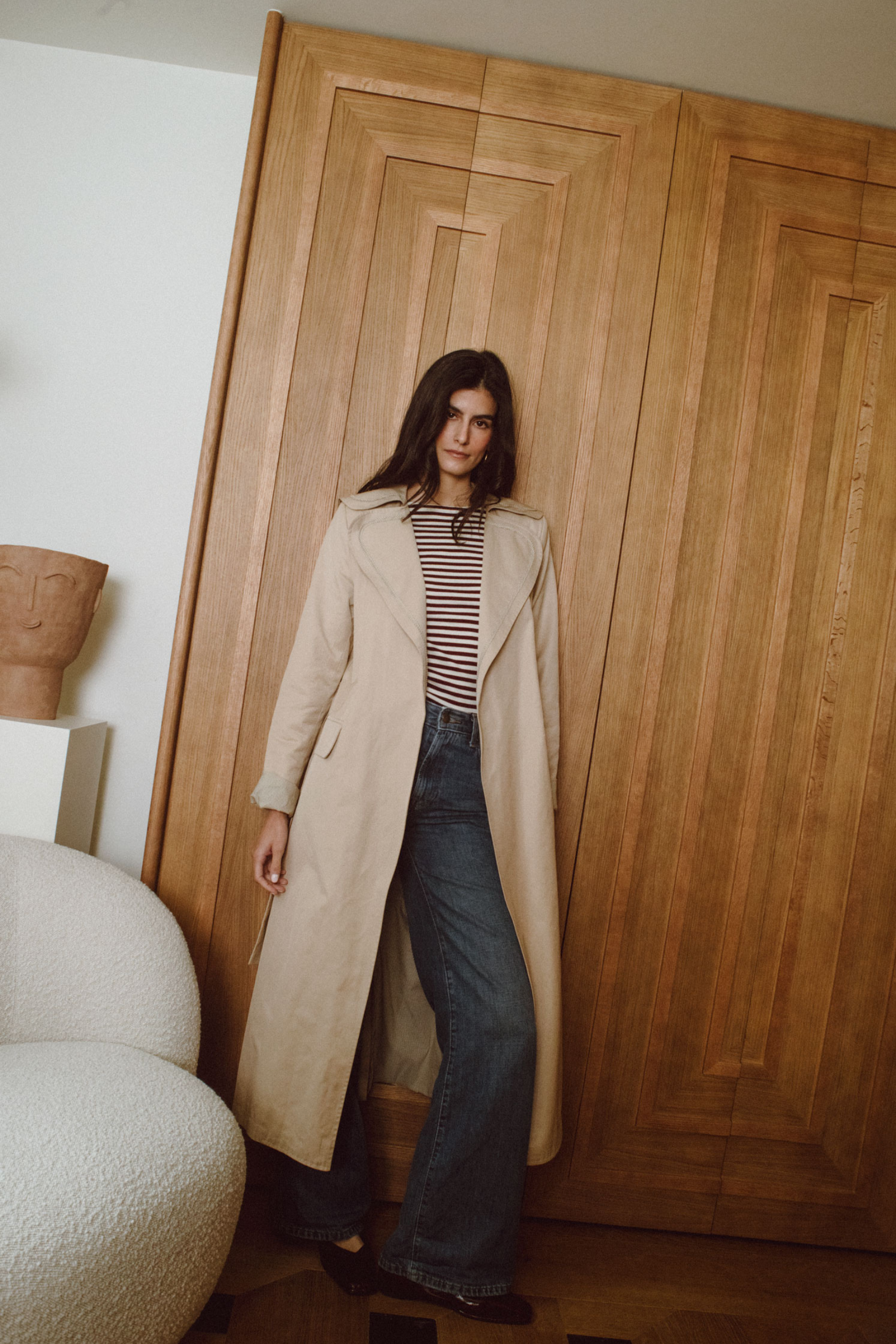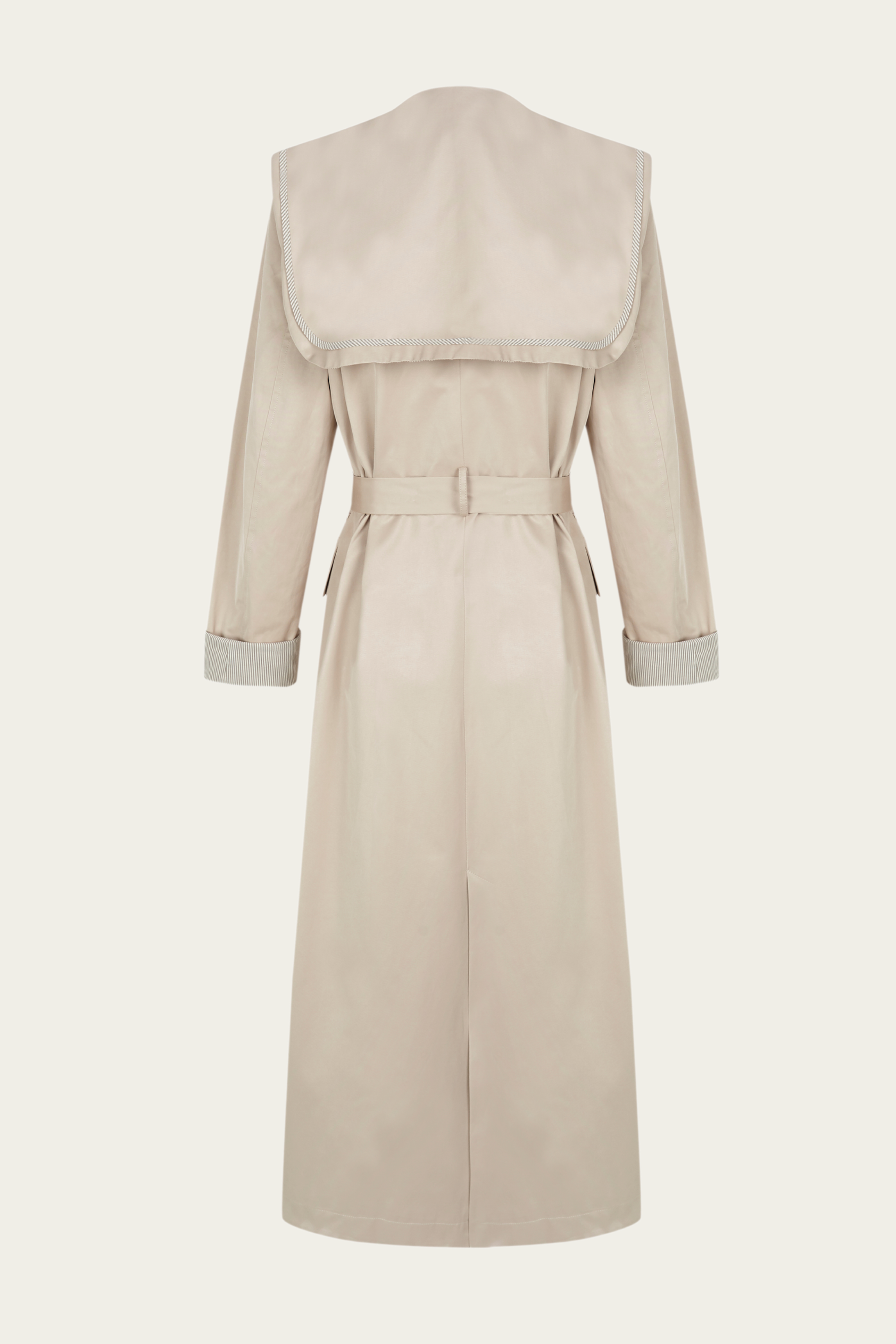 La Gabardina Scott, preparada para formar parte de tu armario generacional. Su tono crudo, cálido y versátil, es un homenaje a la sencillez sofisticada. El forro interior y el vivo de la prenda en una raya marrón elegante aporta un detalle sutil exclusivo.