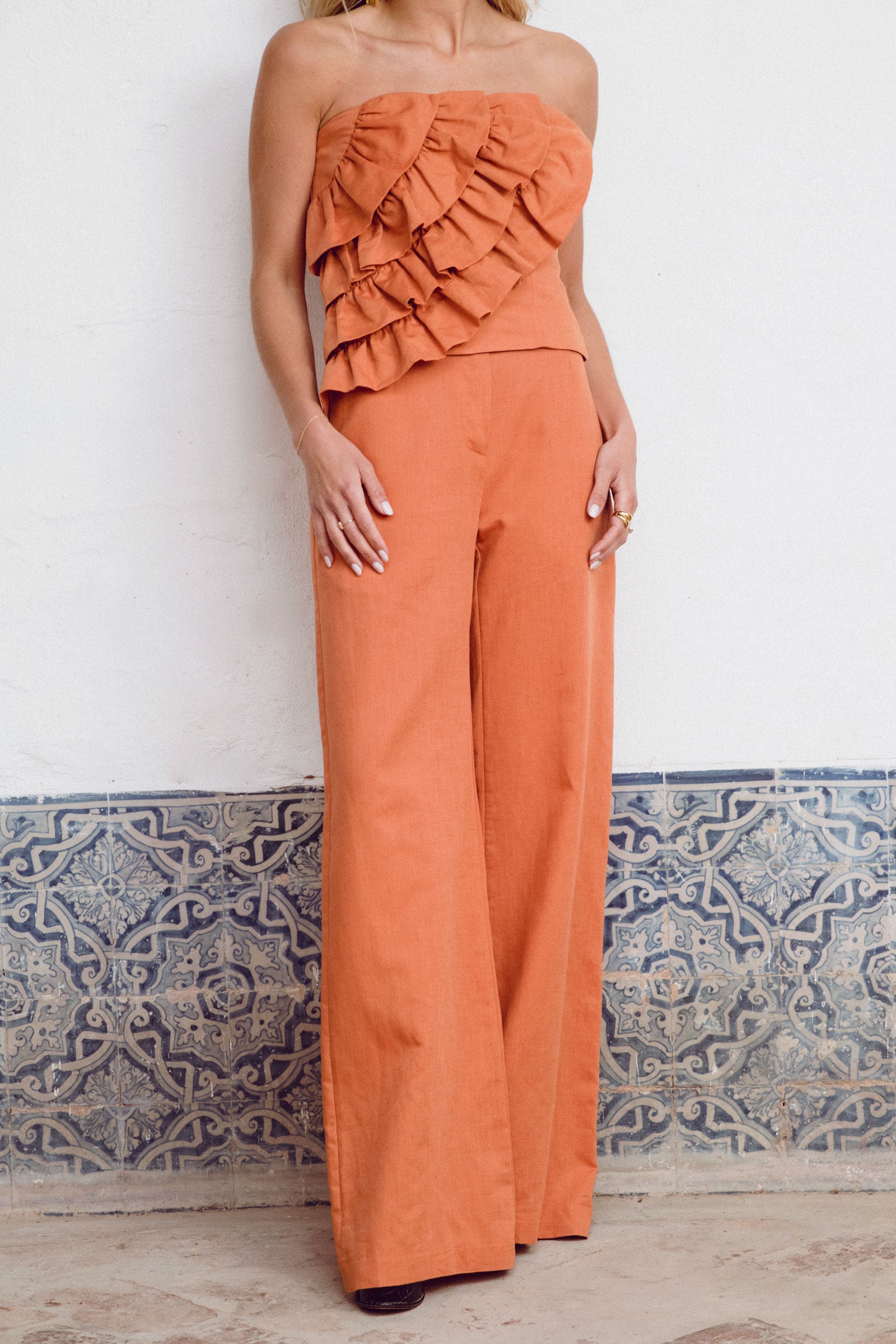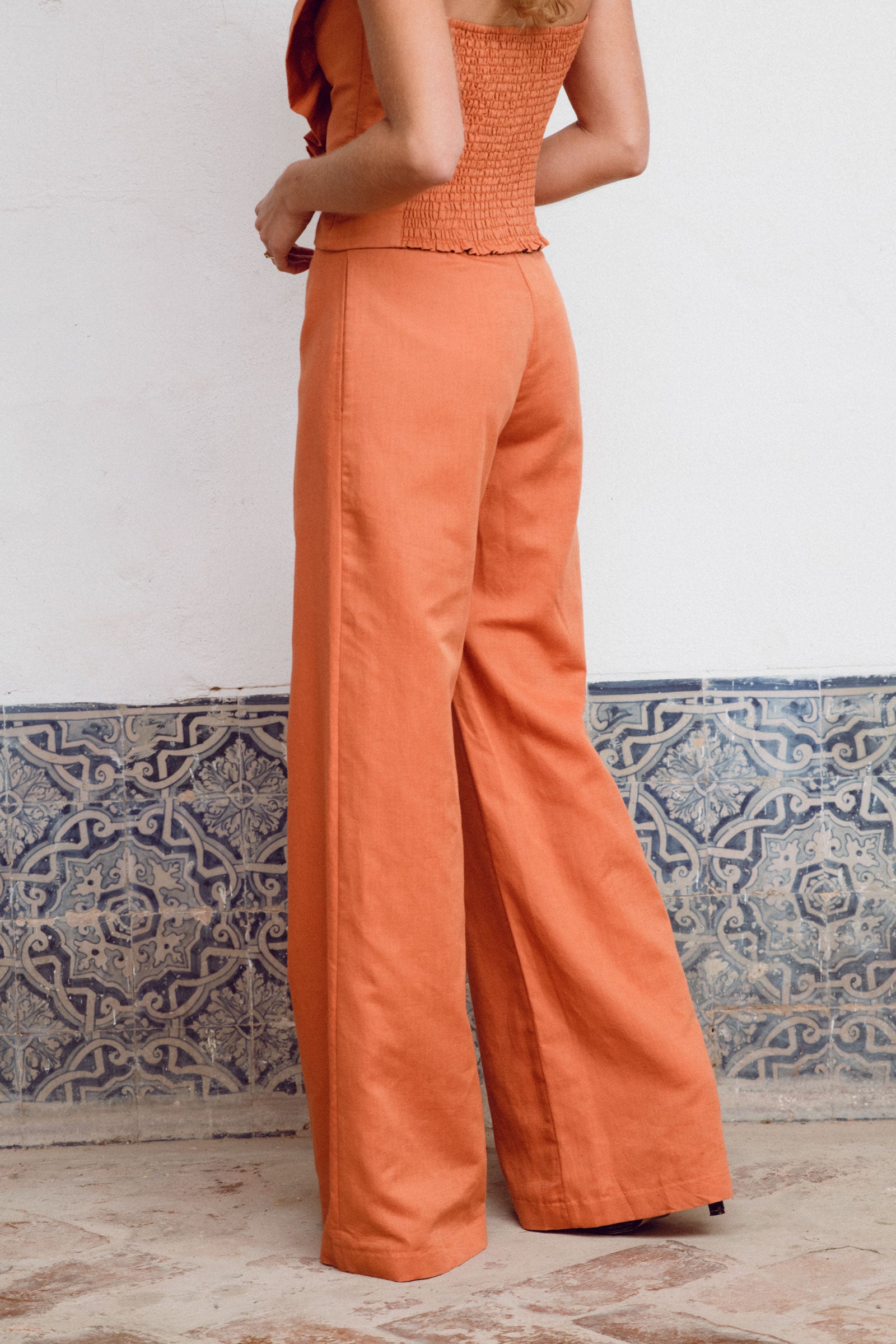 Un tono cálido y actual que estiliza al instante. Su corte recto ancho y su caída fluida lo convierten en una opción moderna y sofisticada para cualquier ocasión. Cremallera lateral.