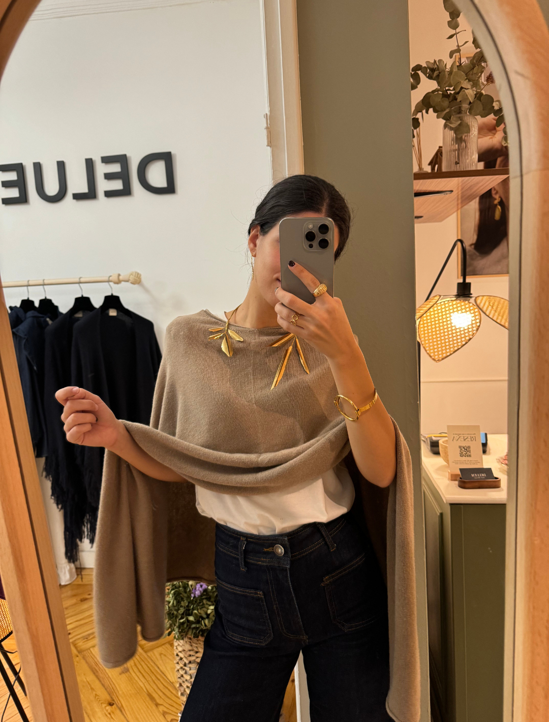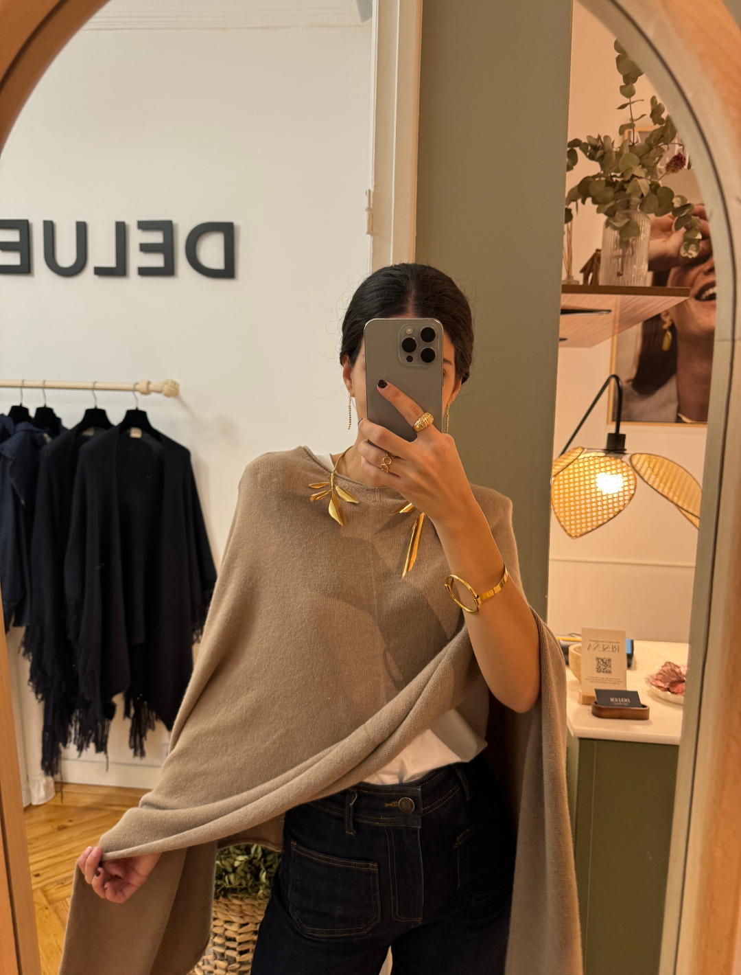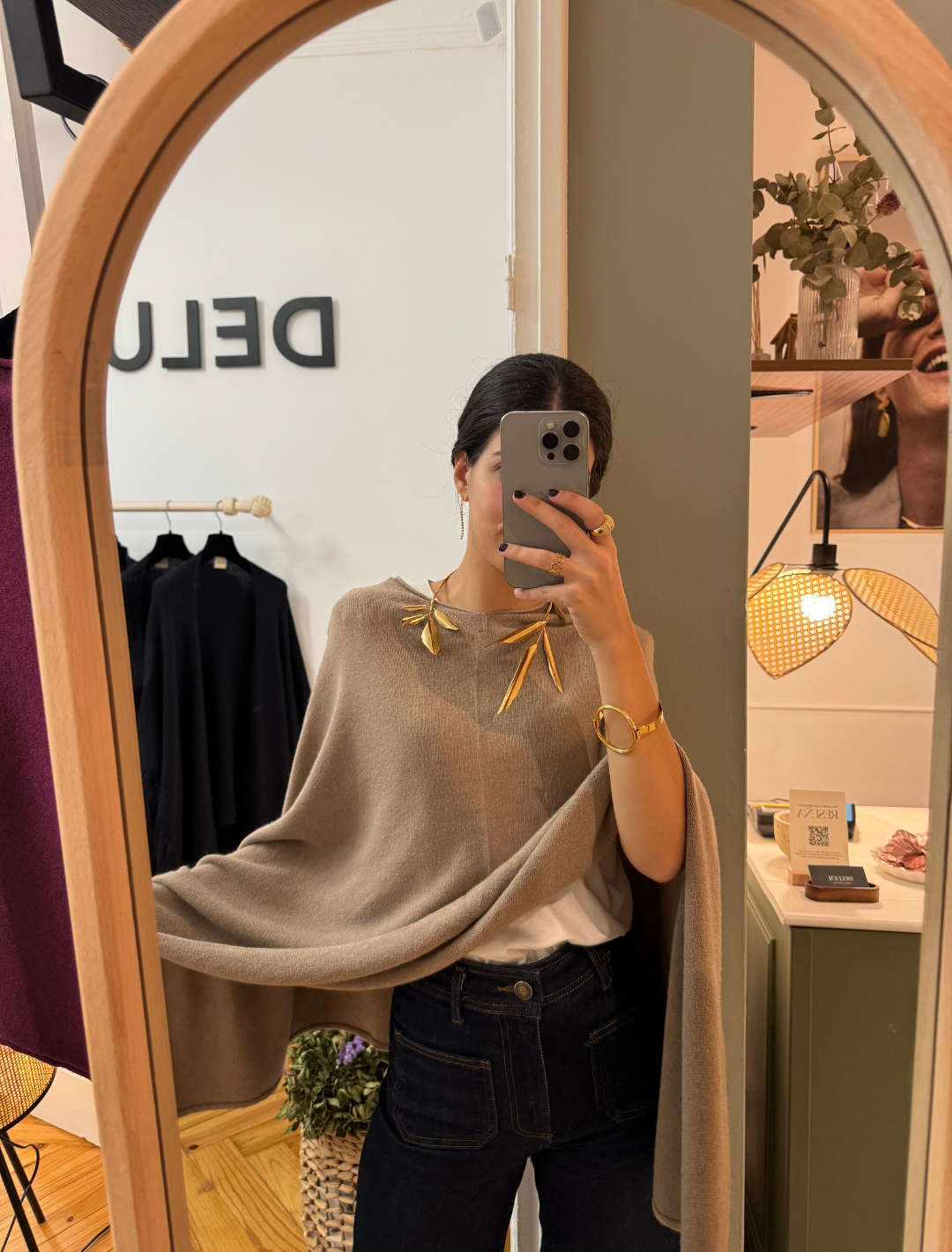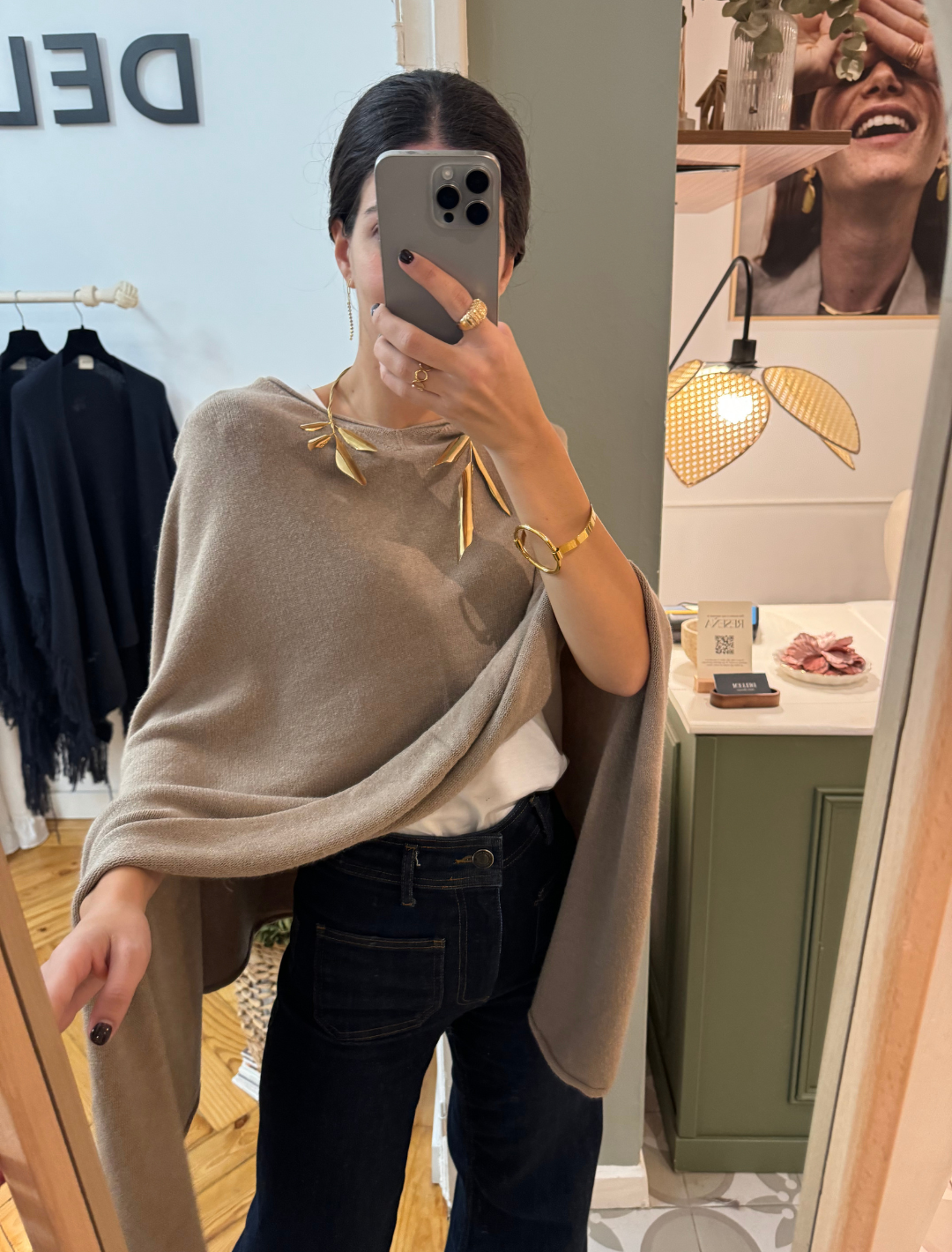 Poncho Laine beige tostado