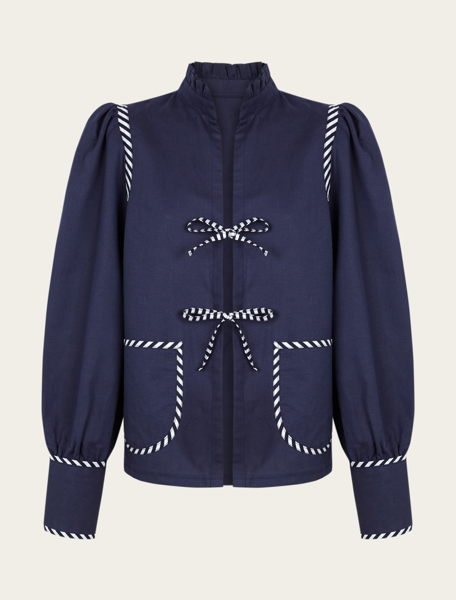Al ponértela, revives la esencia de nuestras madres, en los años 80, en el entorno laboral. Su diseño permite atar la prenda a tu gusto. Confeccionada en España, esta sobrecamisa no solo resalta por su calidad, sino que también se convierte en un legado que puedes compartir.