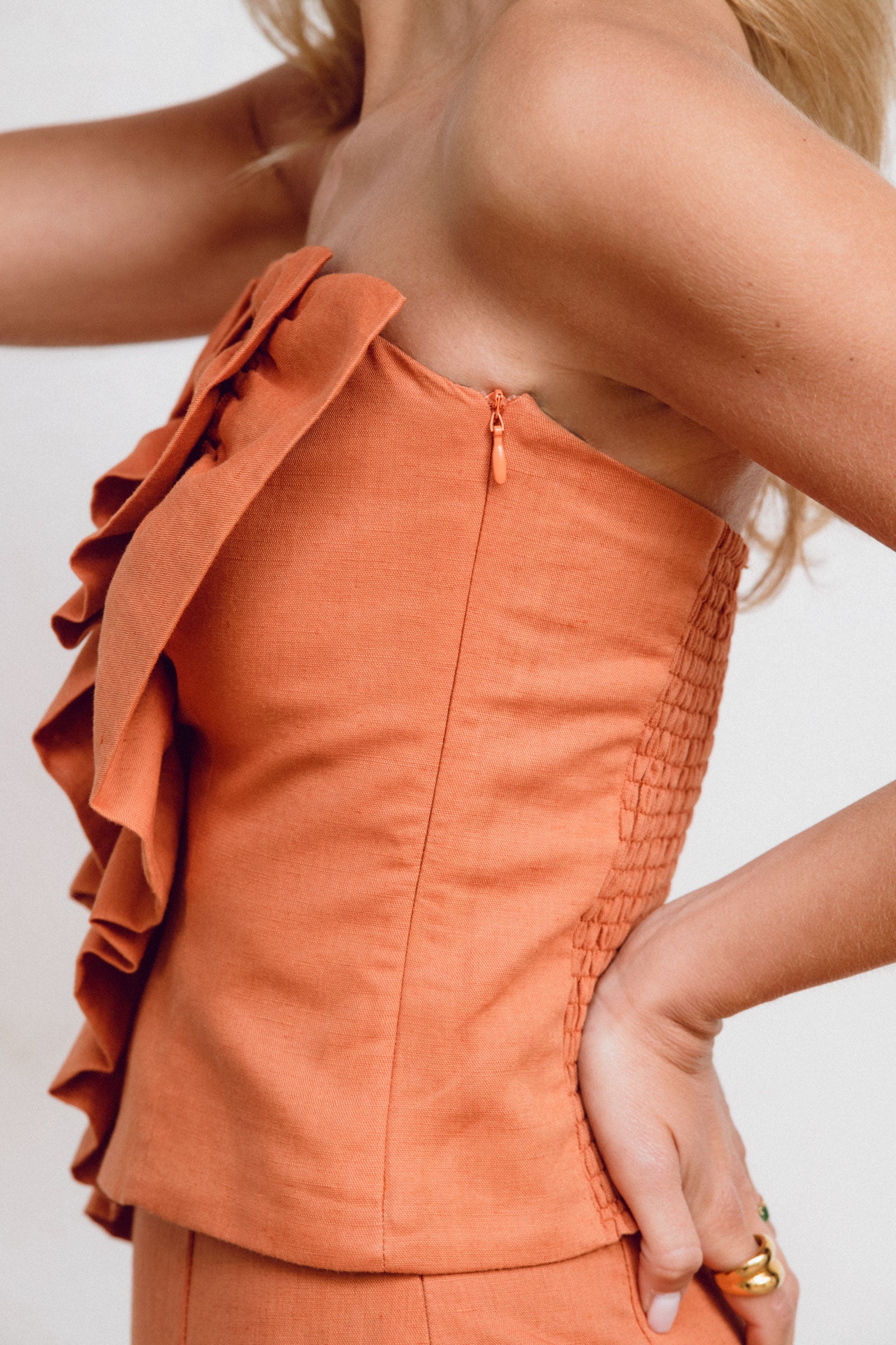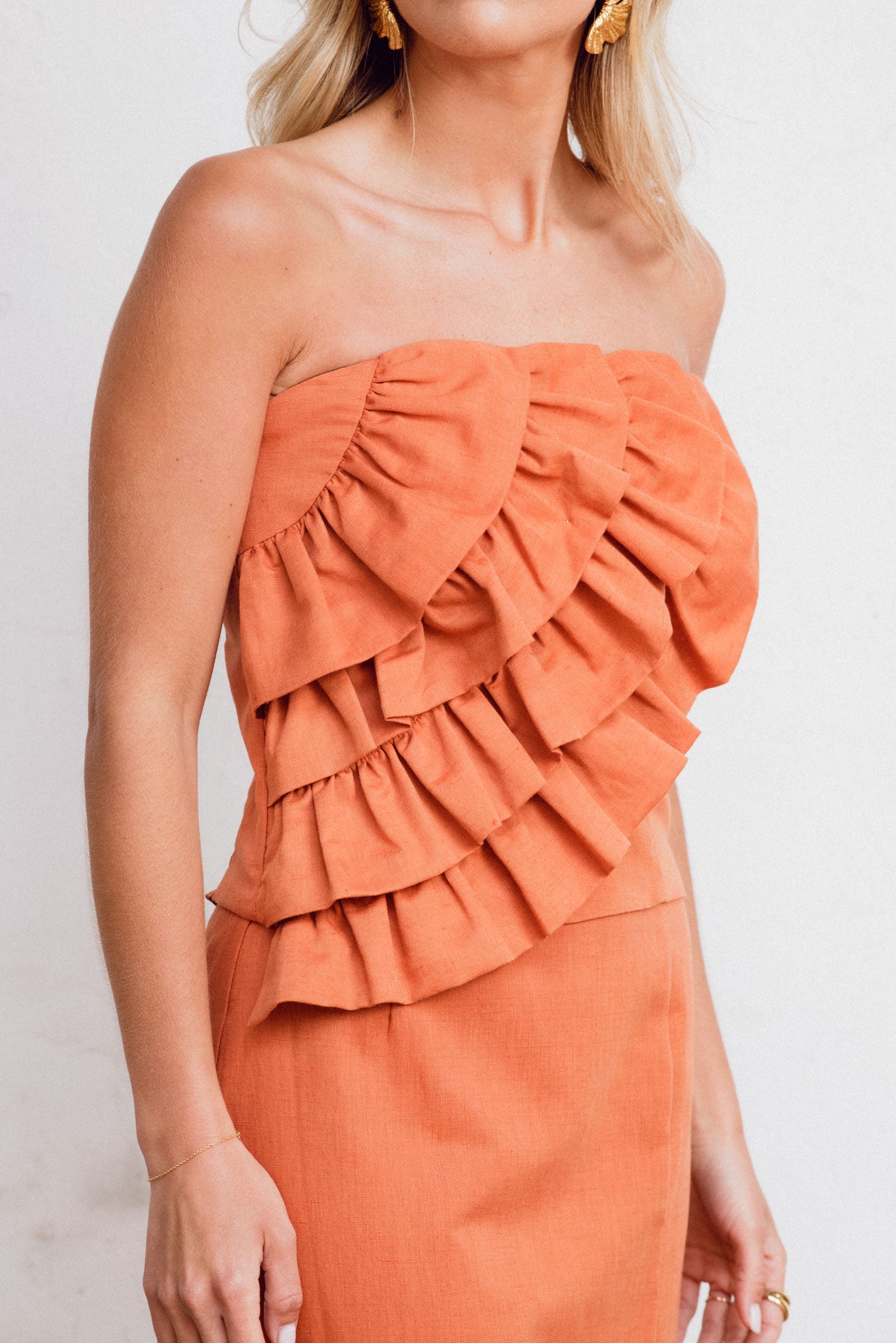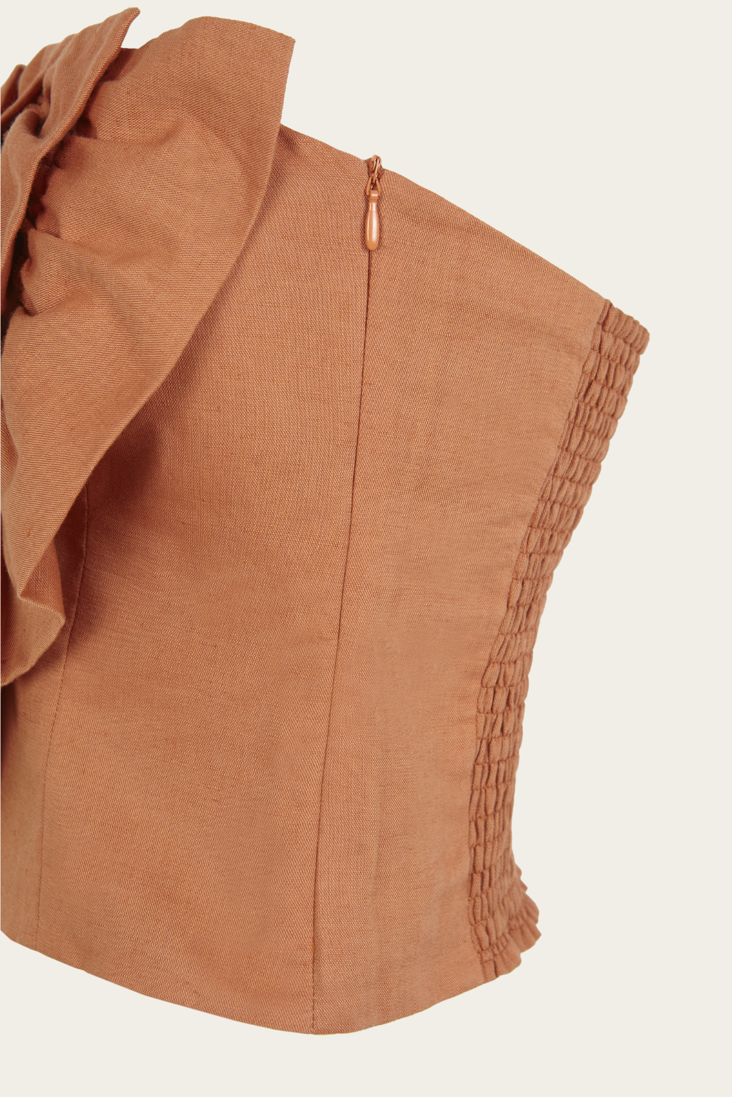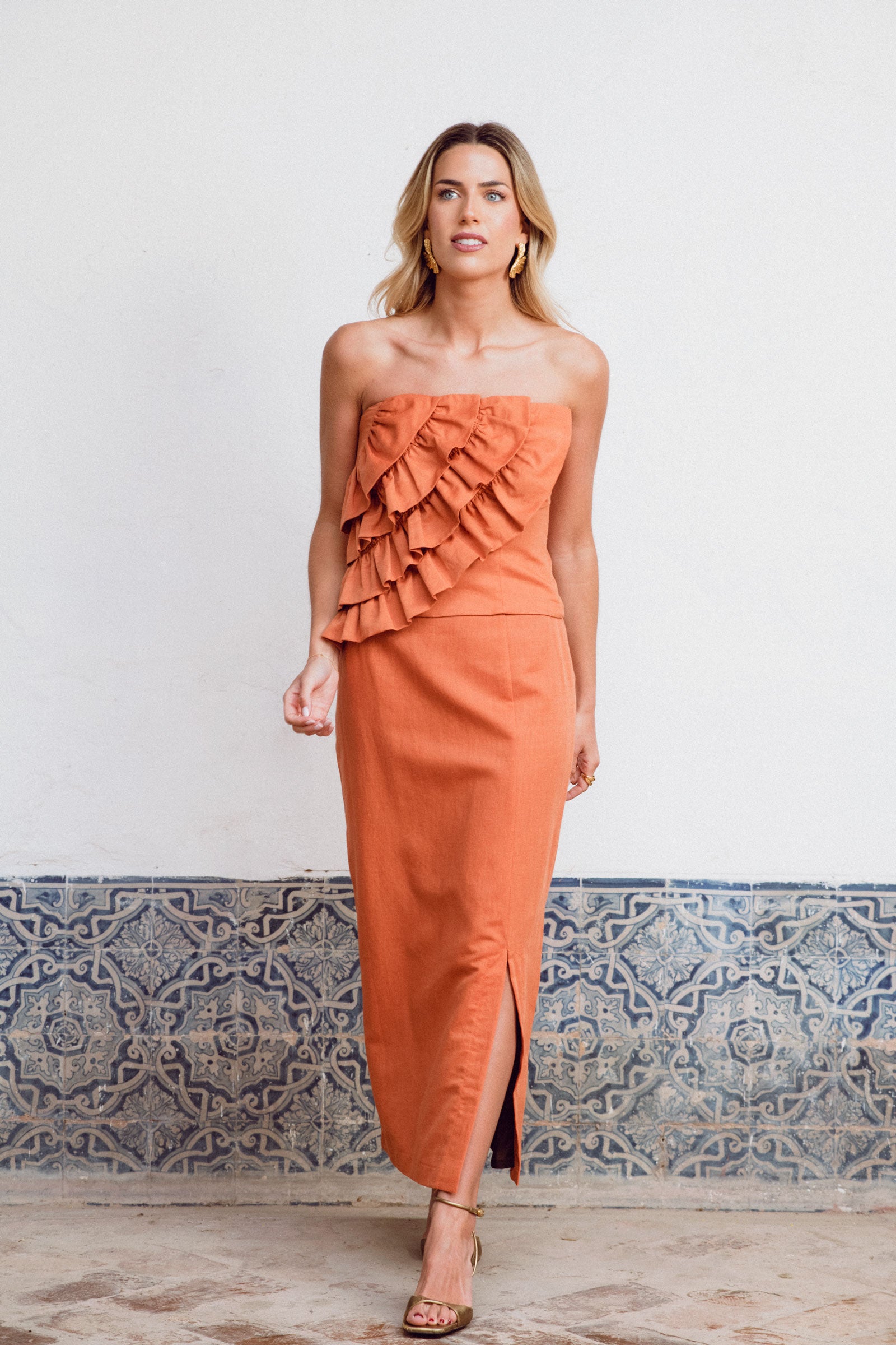 El toque cálido y original que tu look necesita. Los volantes dan movimiento y elegancia, mientras el diseño entallado resalta la figura con un aire sofisticado y actual. Nido de abeja en la espalda y cremallera lateral para mayor comodidad.
