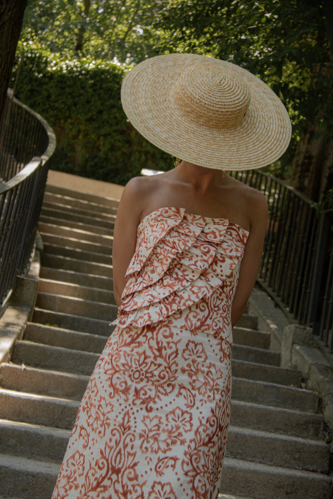 The English Summer es una colección inspirada en los veranos edwardianos, en los paseos por invernaderos olvidados y en vestidos blancos con volantes suaves.