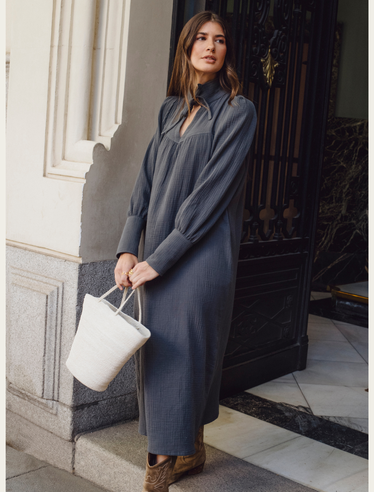 El vestido bambula es la perfecta fusión de elegancia y comodidad, diseñado para acompañar a la mujer moderna en cada paso de su día a día.