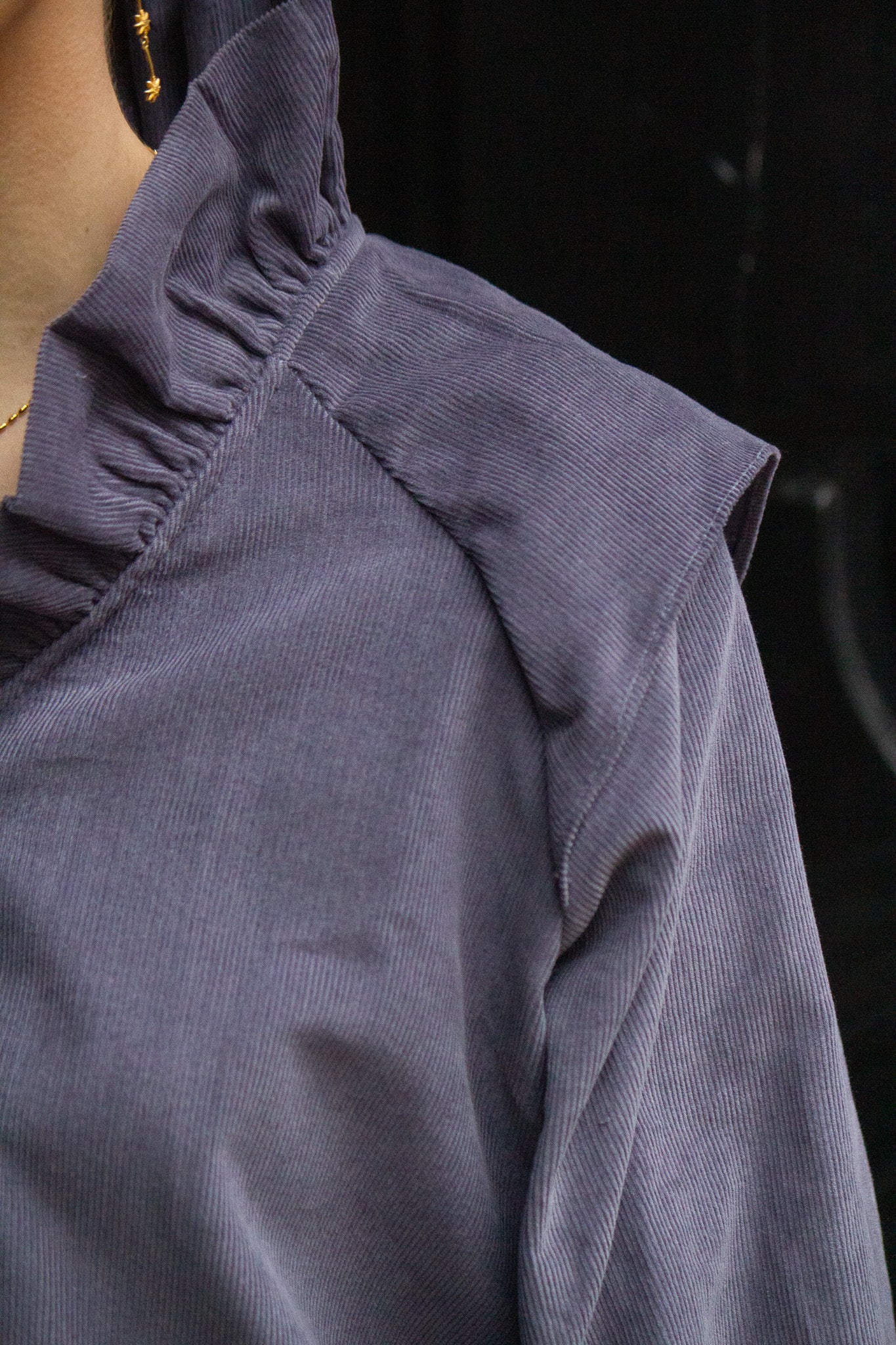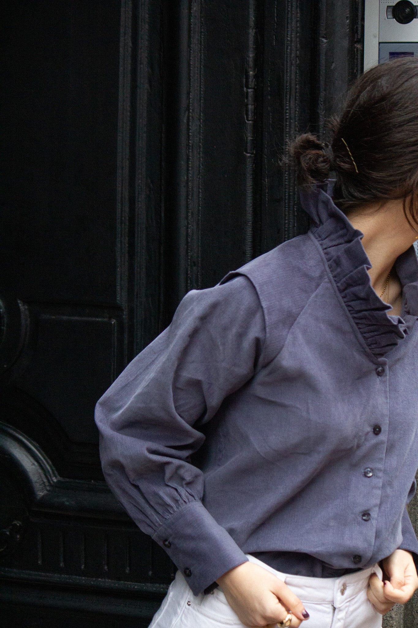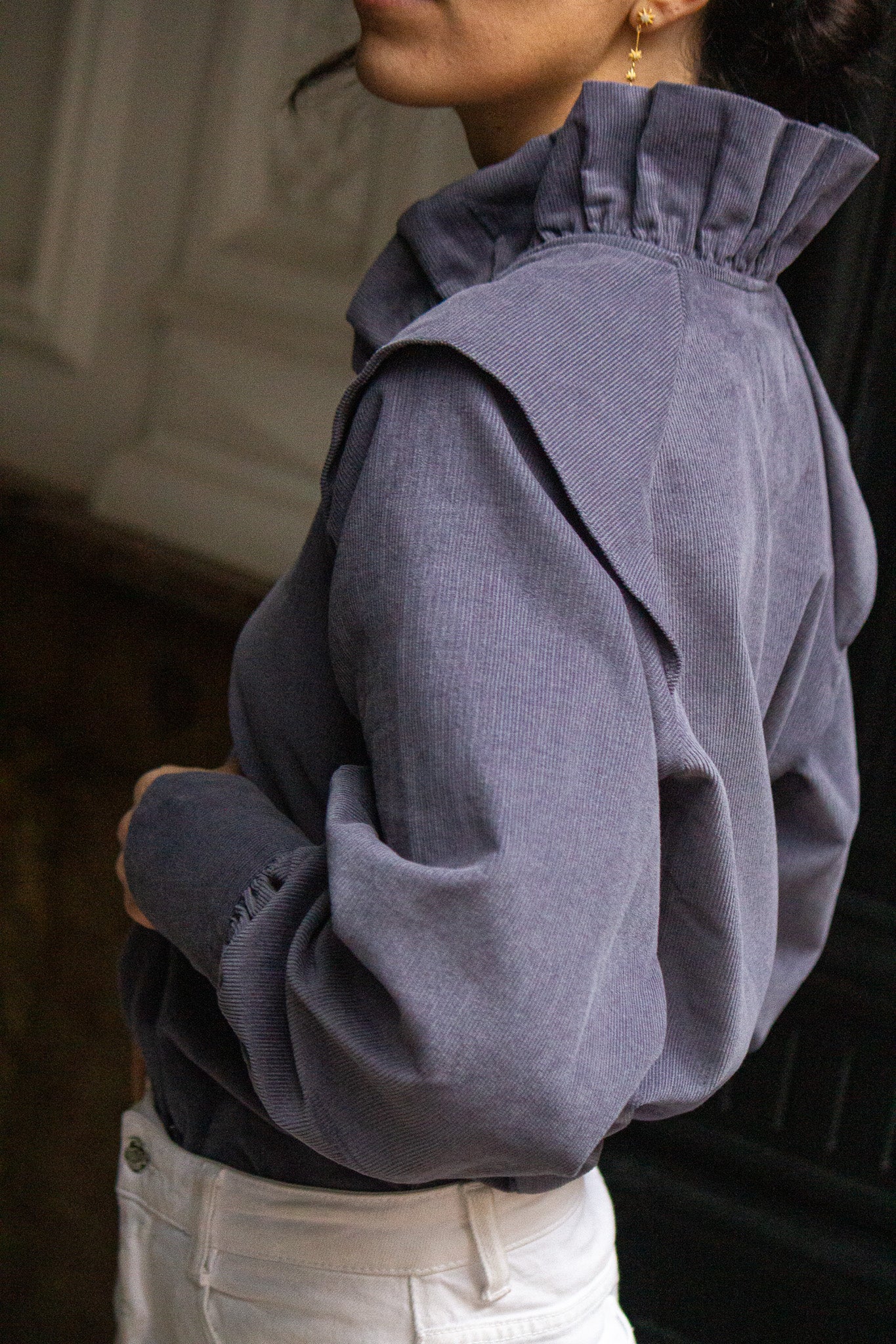 Confeccionada artesanalmente en nuestros talleres de Madrid, esta prenda de fina micropana de algodón sirve tanto de blusa como de sobrecamisa. Perfecta para tus looks de entretiempo. Diseñada con cuello de volante que aportan un toque femenino y romántico de forma versátil.