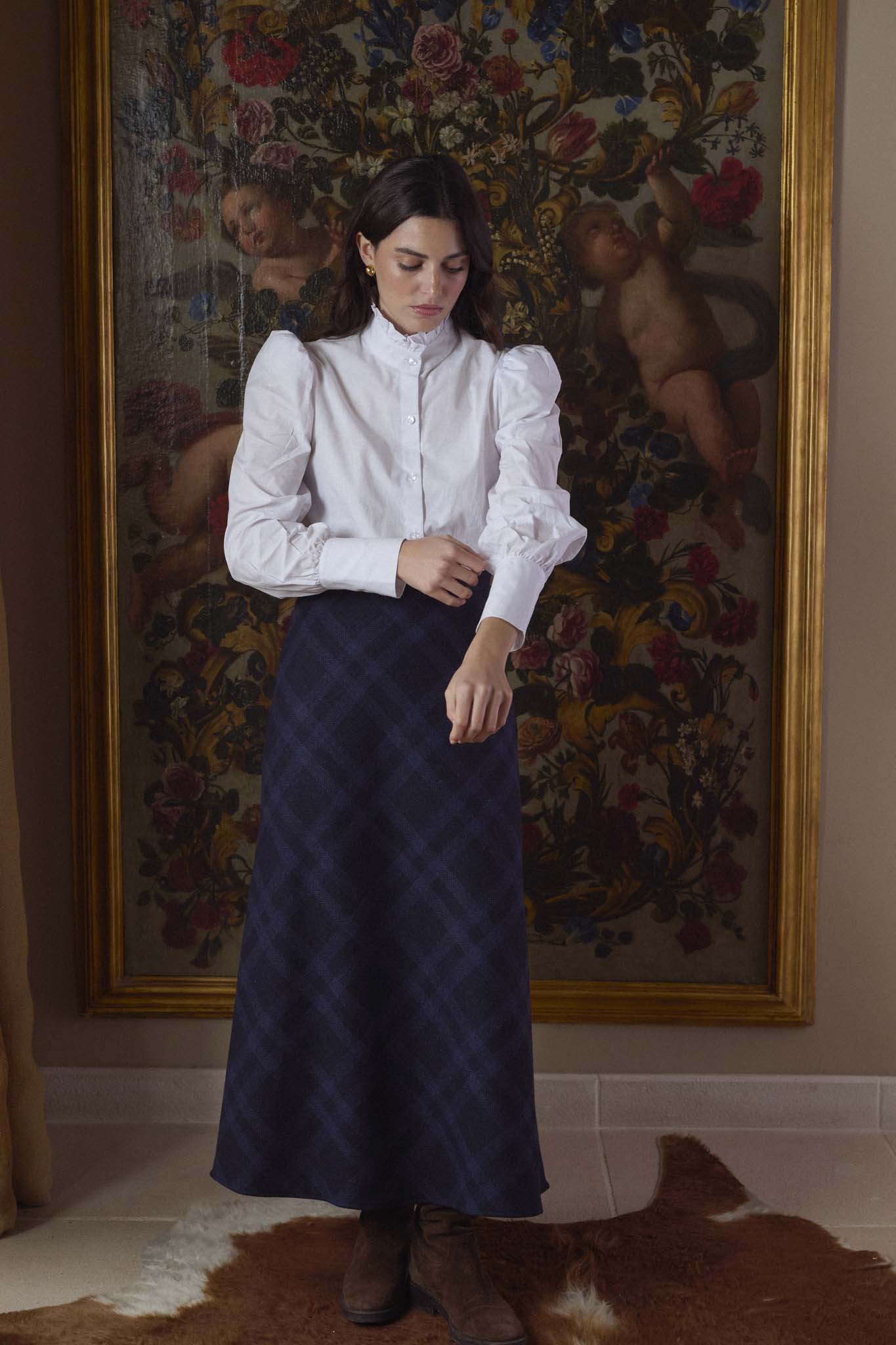 Falda de corte clásico que combina la suavidad y la calidad de la lana 100%, tejida en Salamanca, con un diseño que fluye naturalmente. Confeccionada en nuestros talleres de Madrid, el corte al bies ofrece un diseño único, especialmente favorecedor y de caida impecable. Se adapta al cuerpo con elegancia y comodidad. Su cinturilla y cremallera lateral aseguran un ajuste impecable, ideal para quienes buscan una pieza que brille tanto en eventos especiales como en momentos cotidianos cargados de estilo. Al tratarse de productos fabricados a mano pueden presentar pequeñas diferencias respecto a las fotografías.